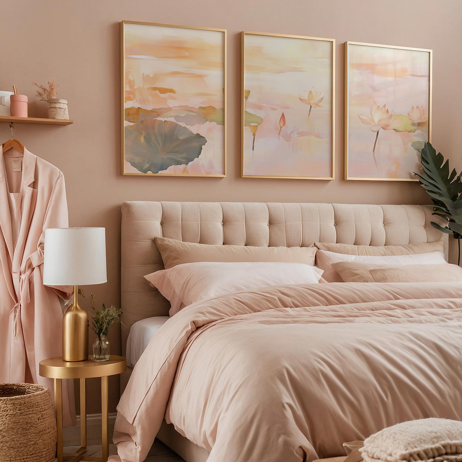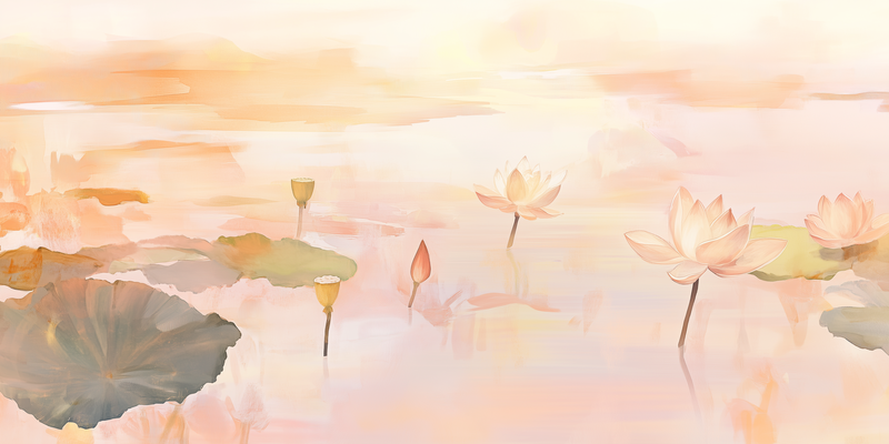 Tranquille Lotusvijver – Dromerig Watercolor Wanddecoratie