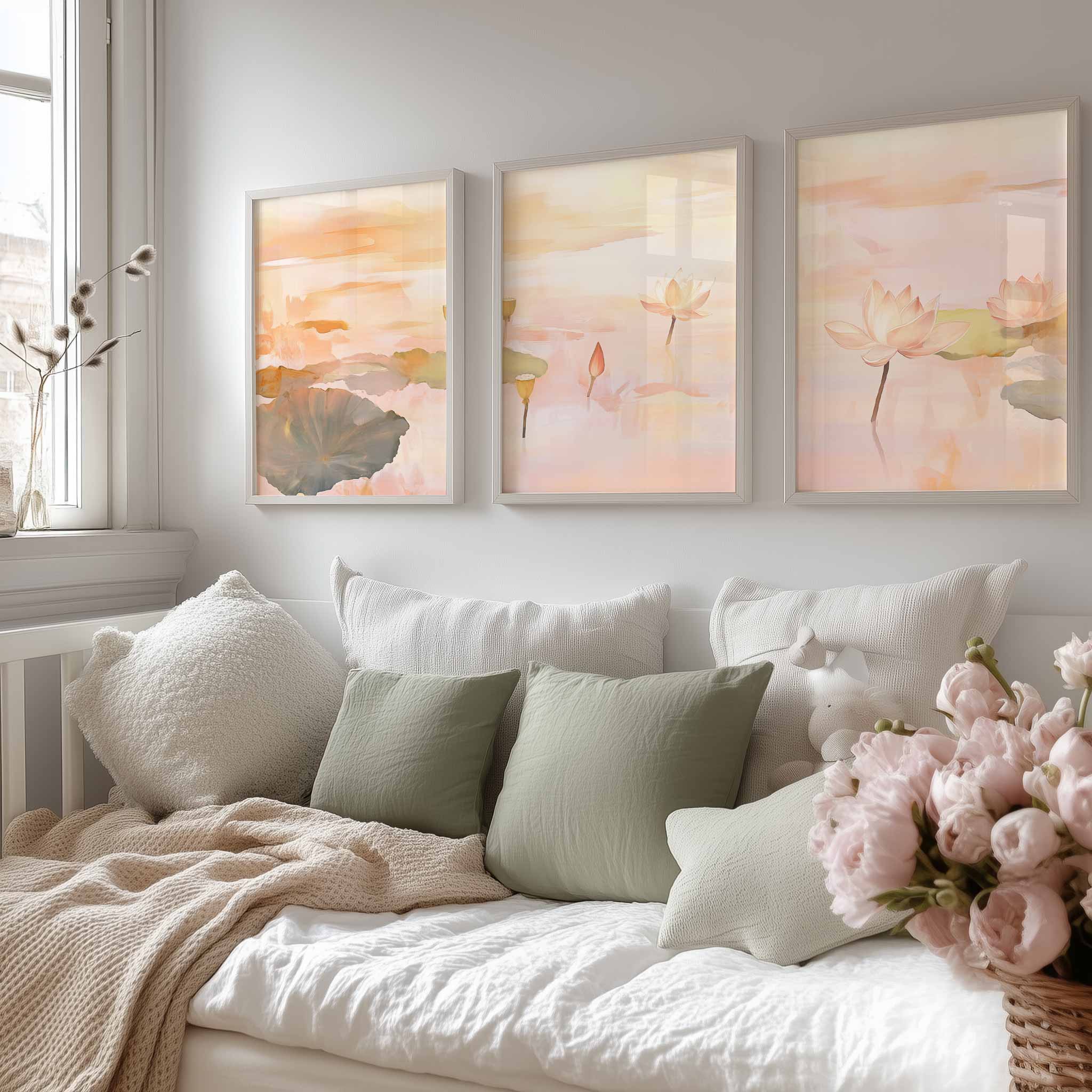 Terug naar collectie Posters Tranquille Lotusvijver – Dromerig Watercolor Wanddecoratie