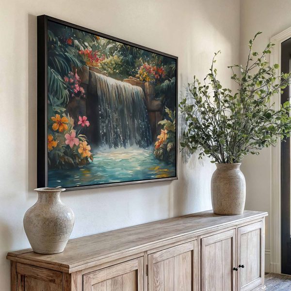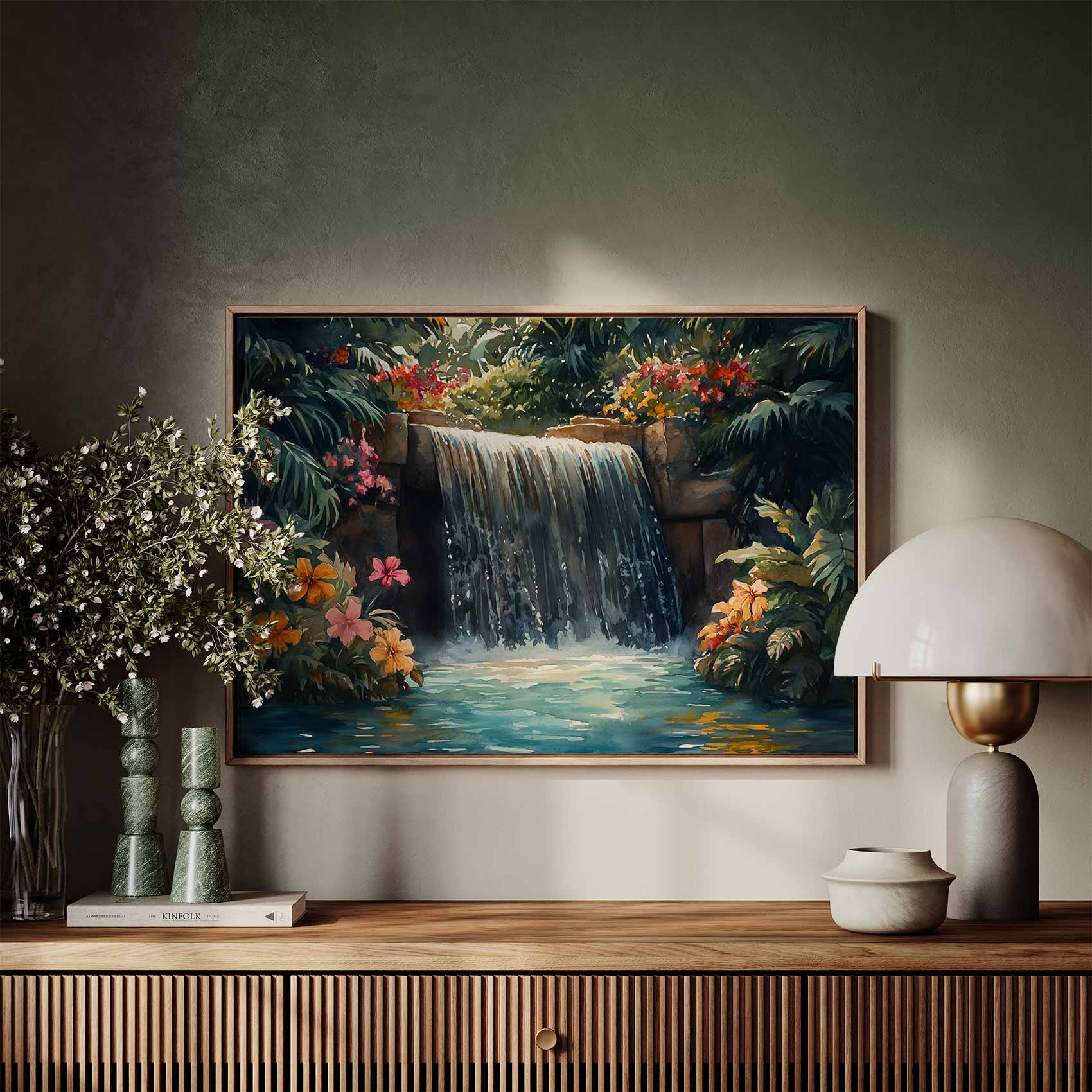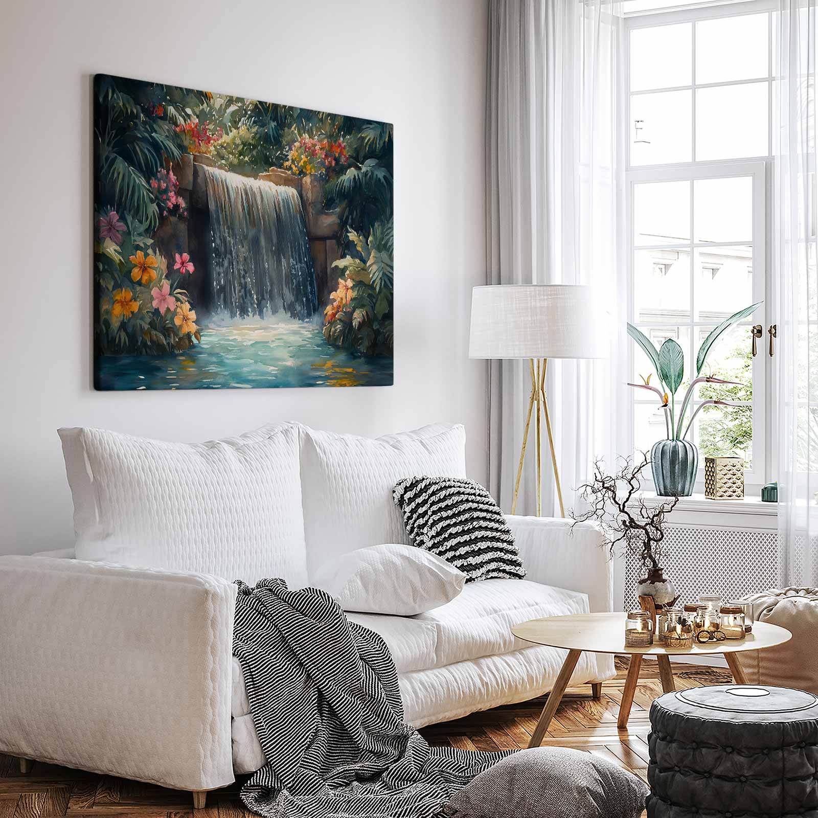 Terug naar collectie Canvas Tropische Waterval Waterverfschilderij