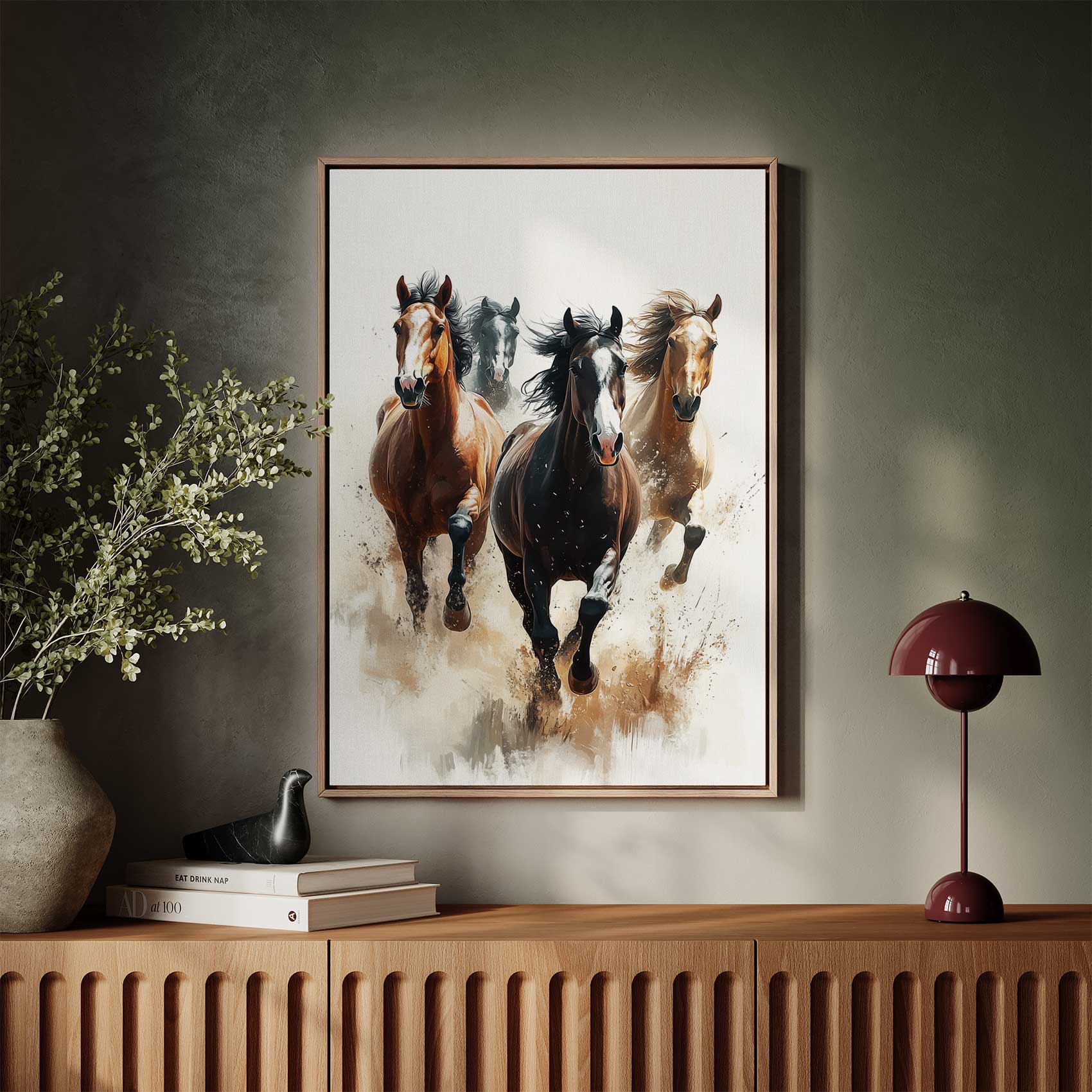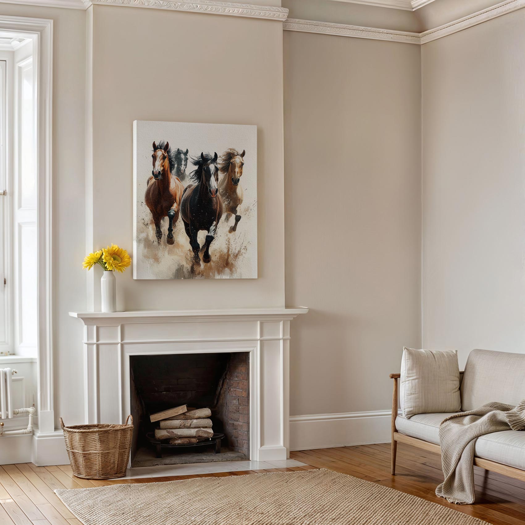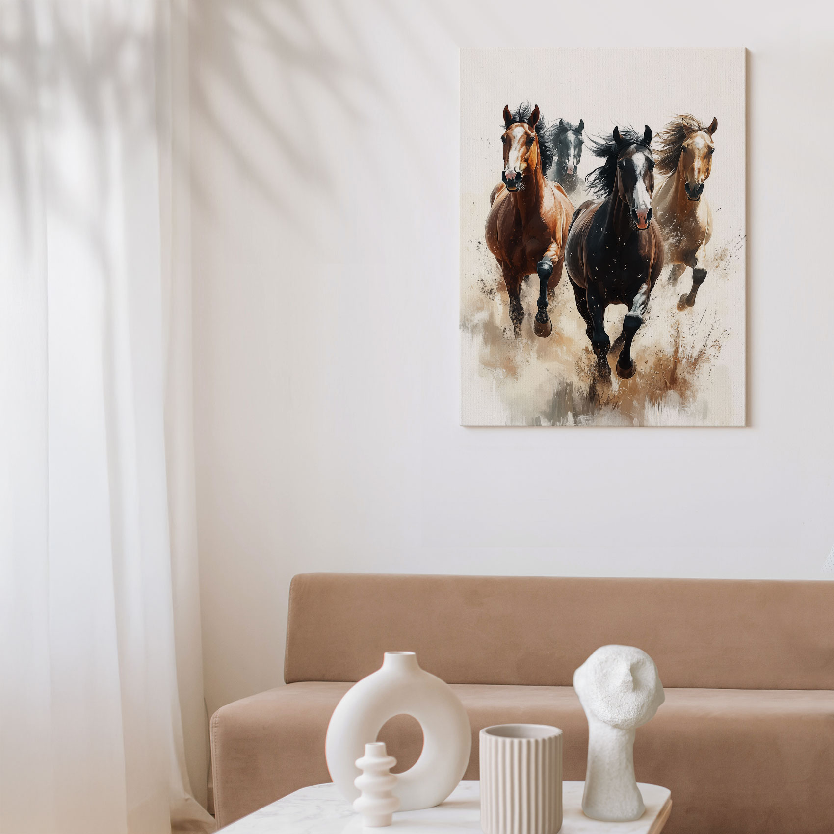 Vier galopperende paarden