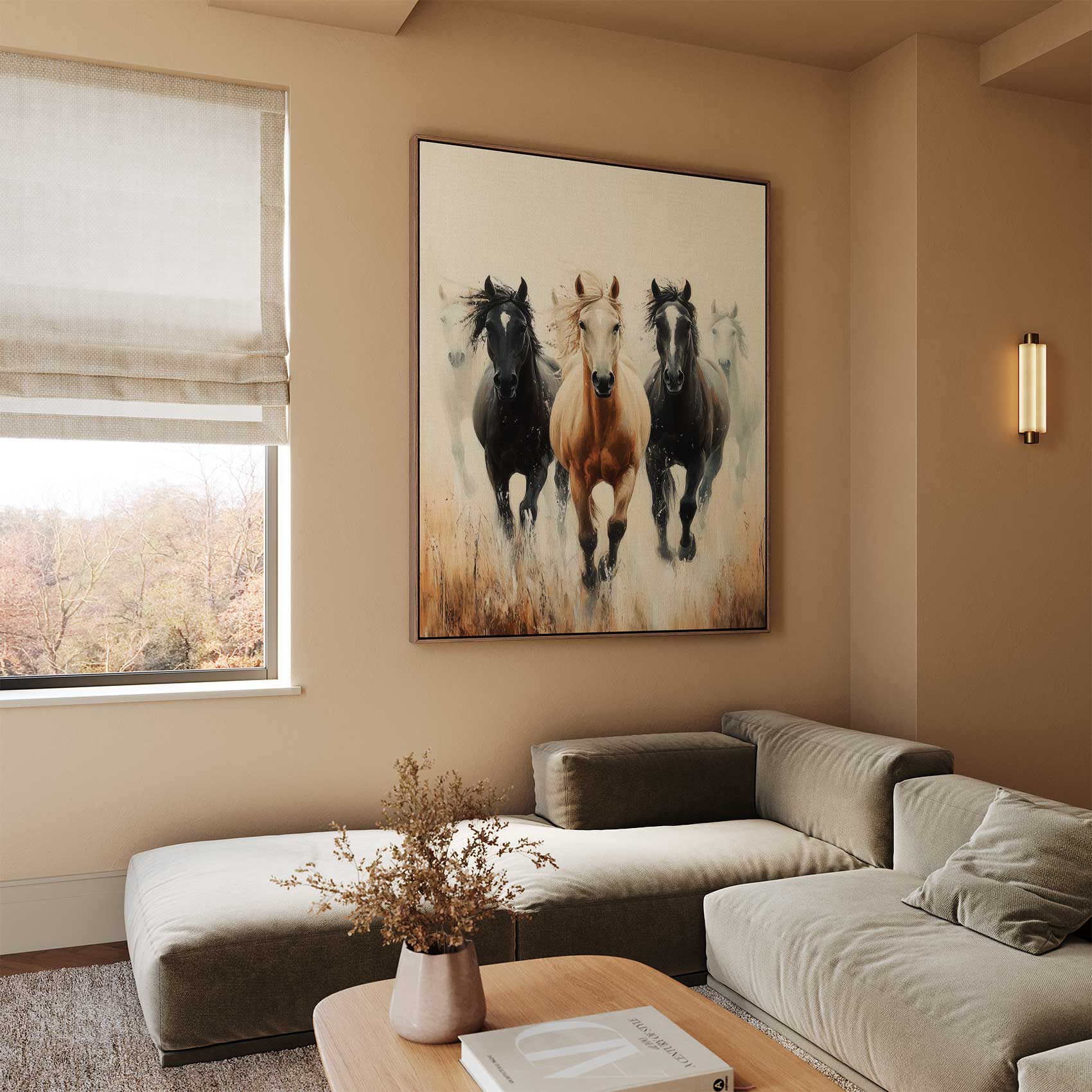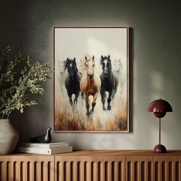 Vier galopperende paarden in vrijheid