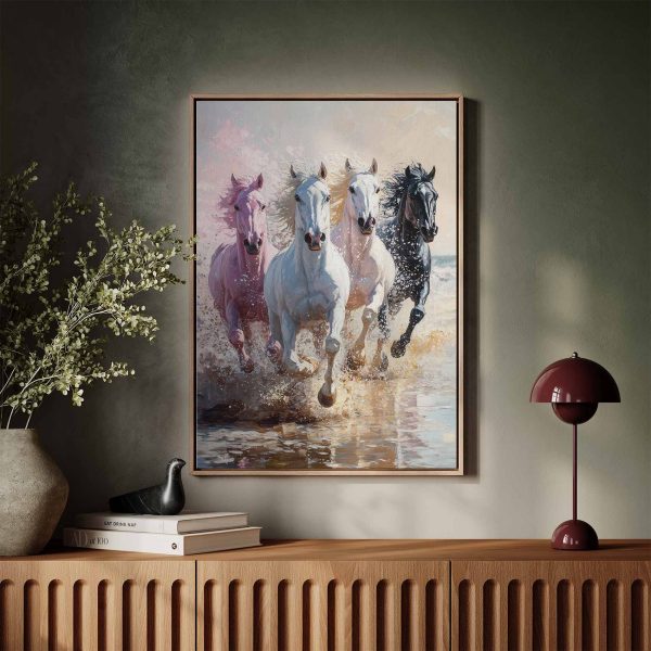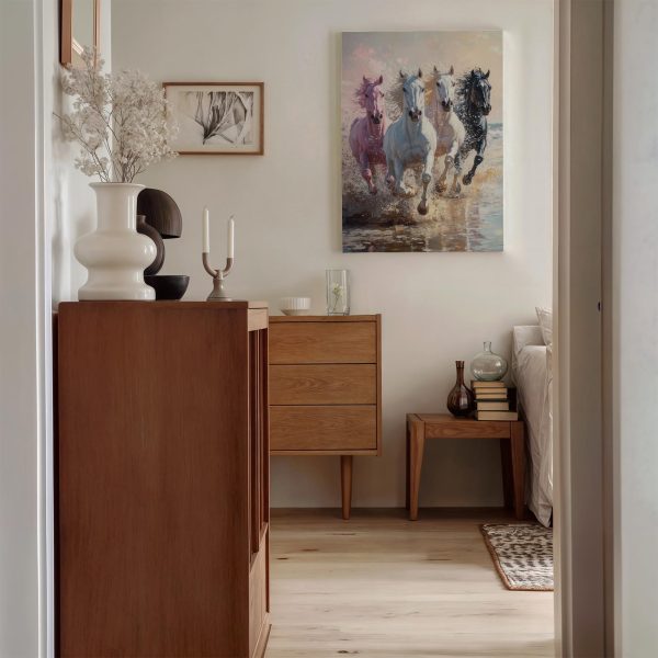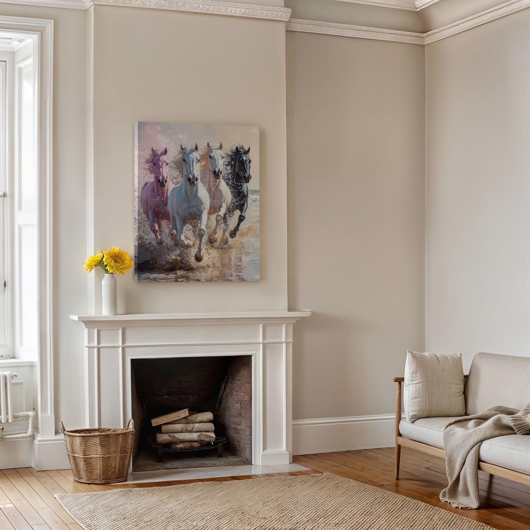 Terug naar collectie Canvas Vier paarden galopperend over water