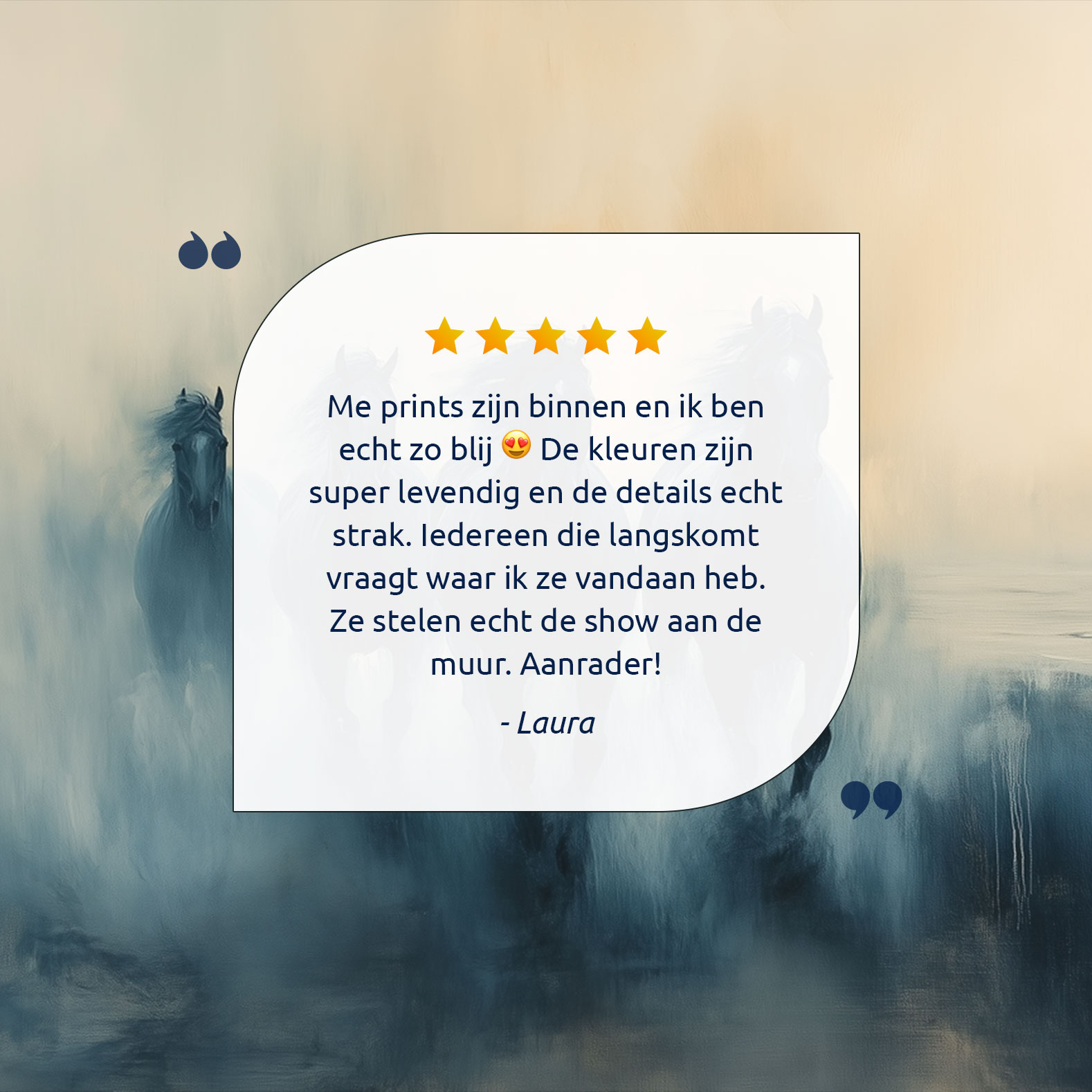 Vier zwarte paarden in mist
