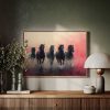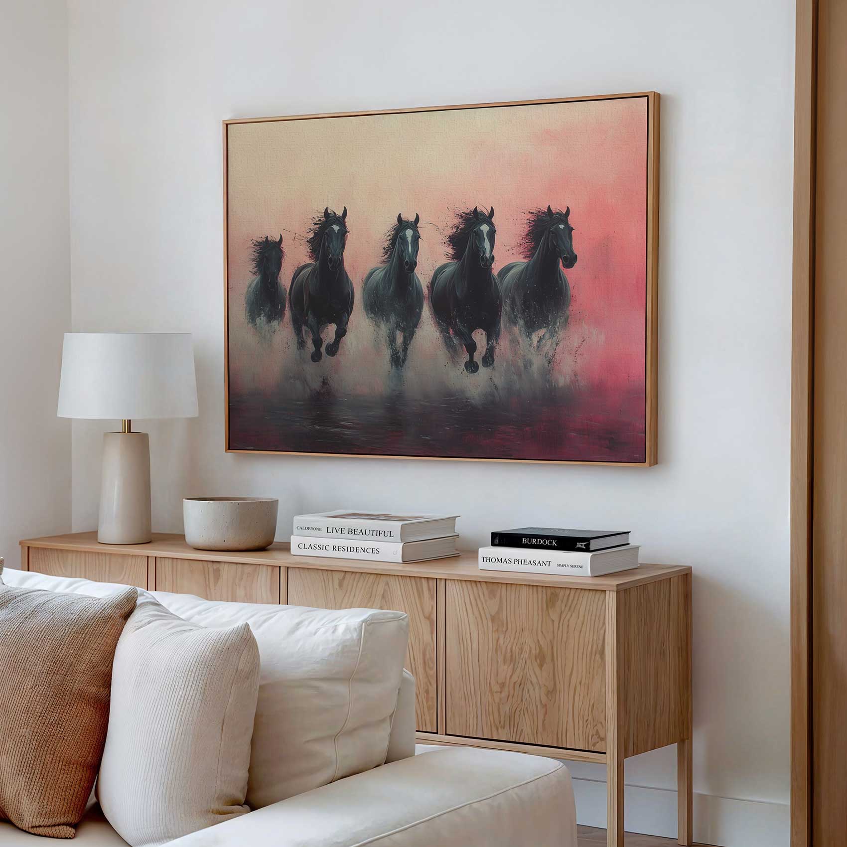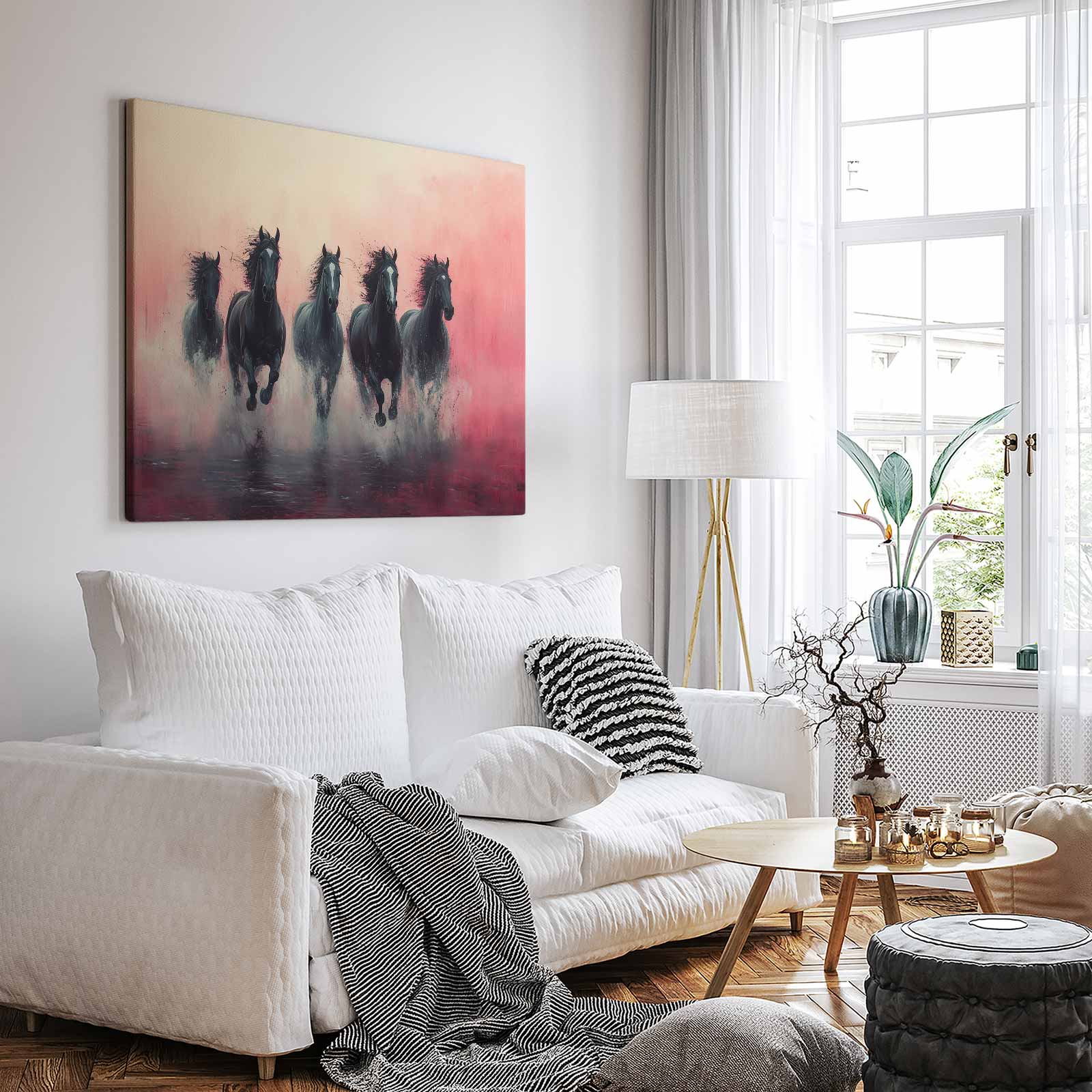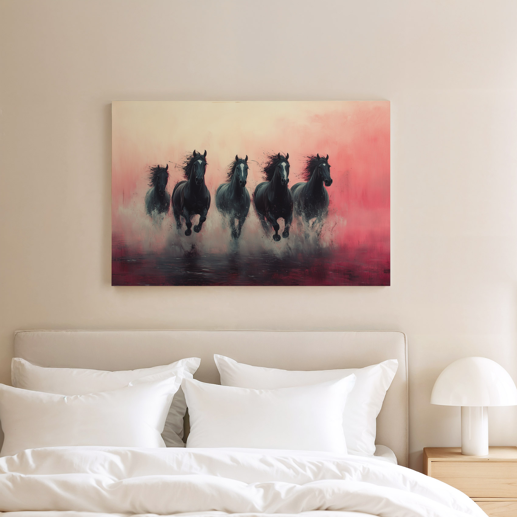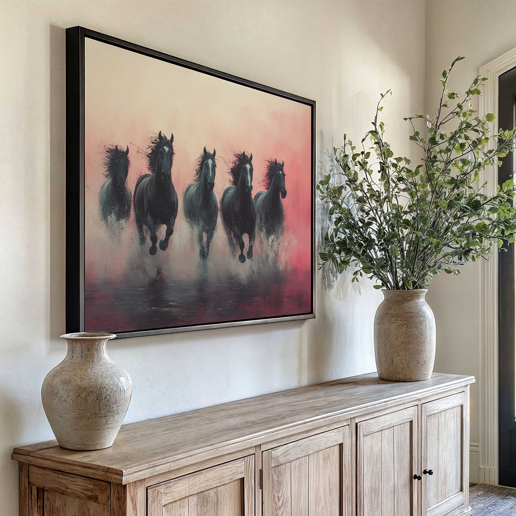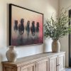 Vijf zwarte paarden in volle galop