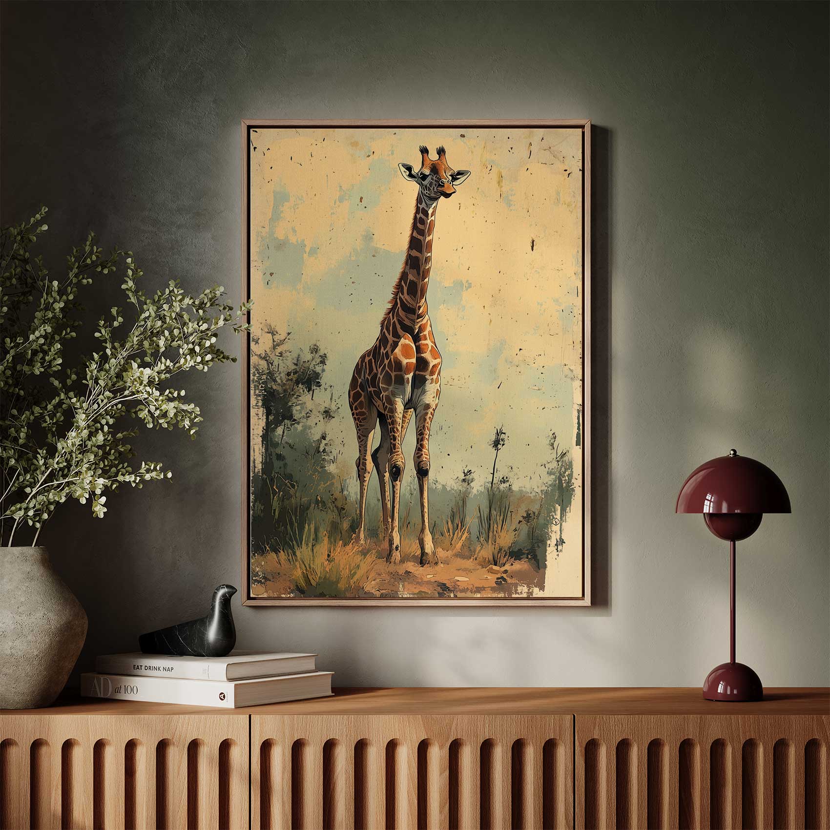 Terug naar collectie Canvas Vintage Giraffe Landschapsschilderij