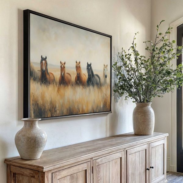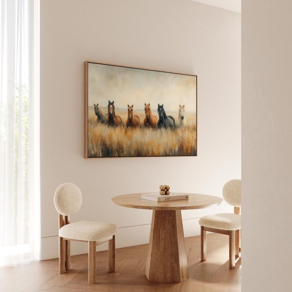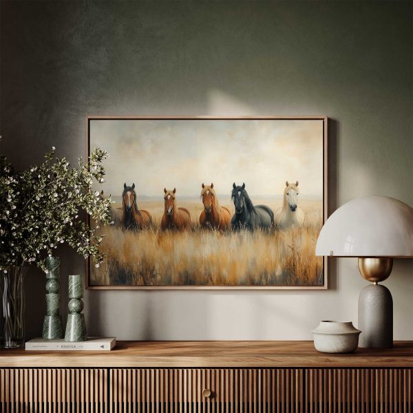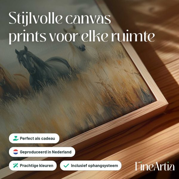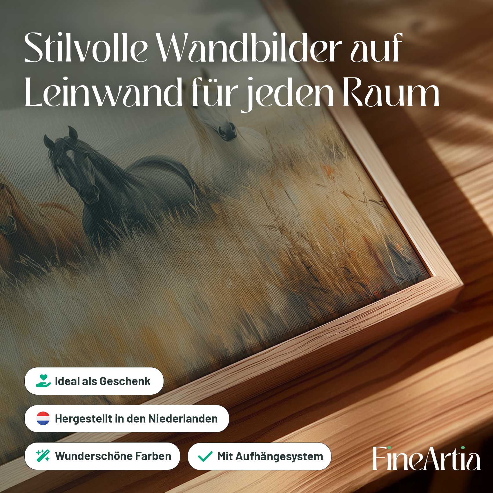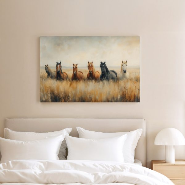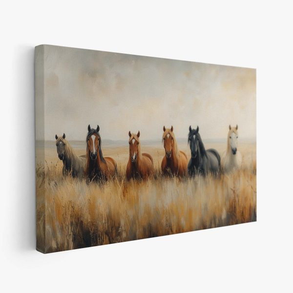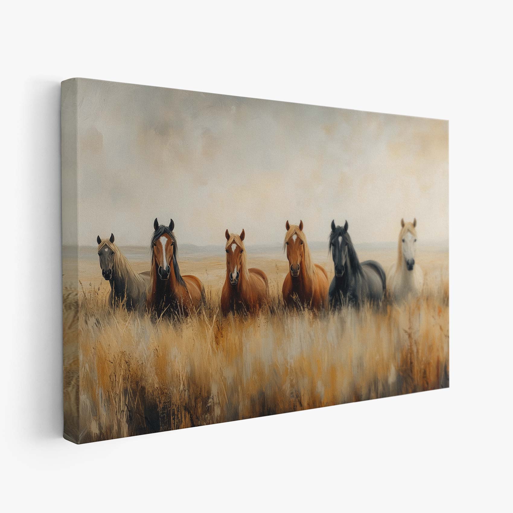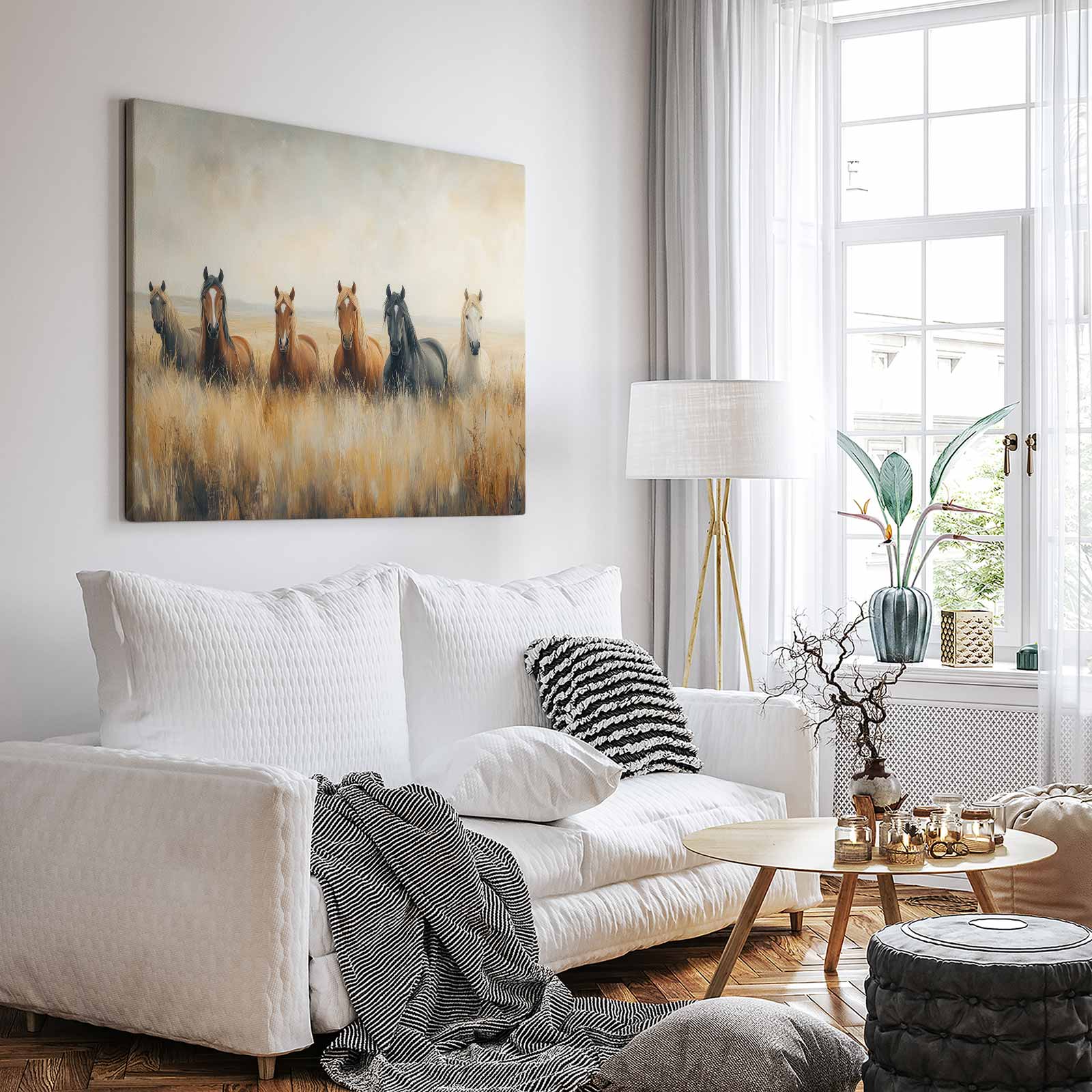 Terug naar collectie Canvas Vredige paarden in gouden gras