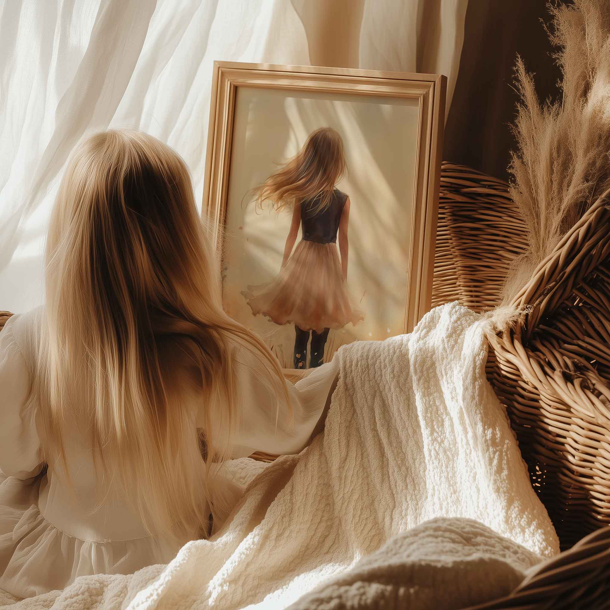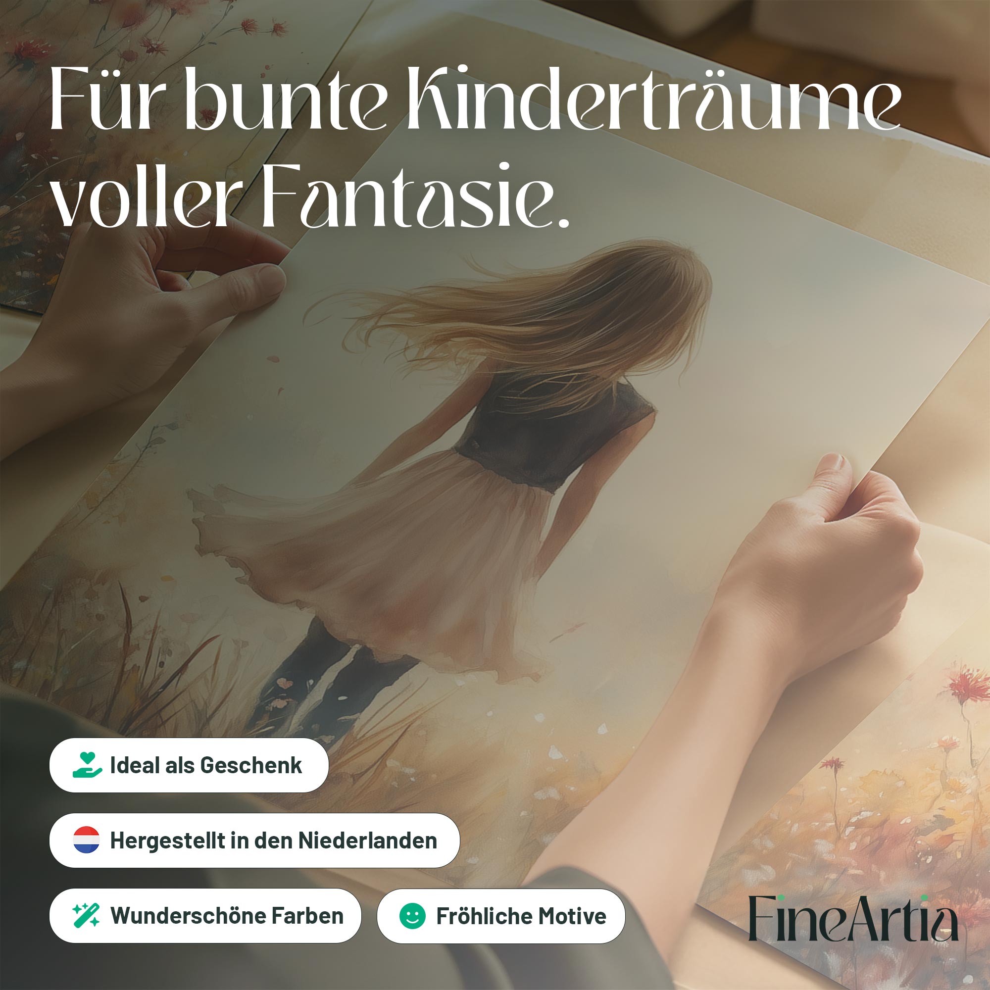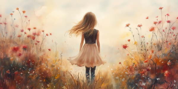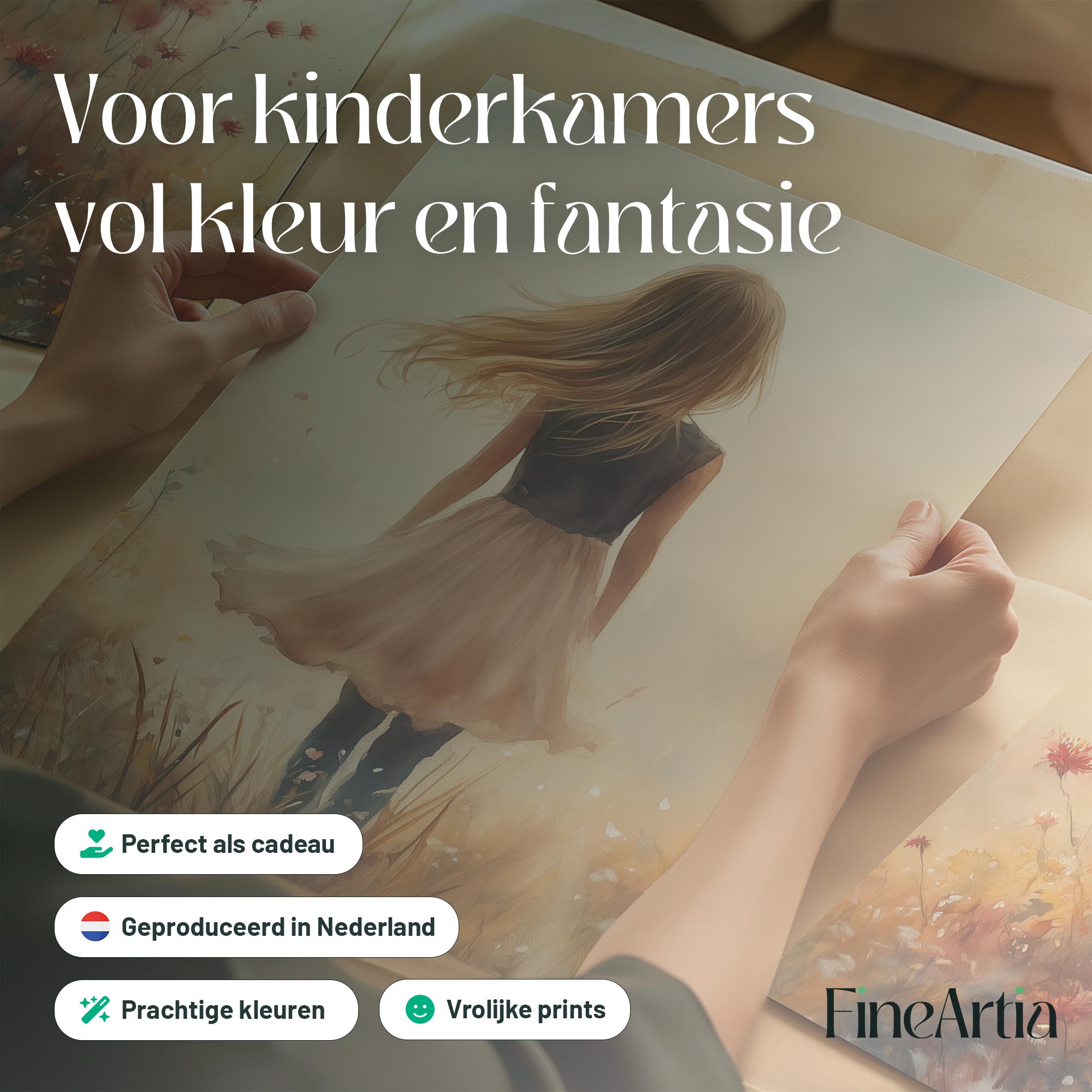 Vrolijk Meisje in Bloeiend Bloemenveld