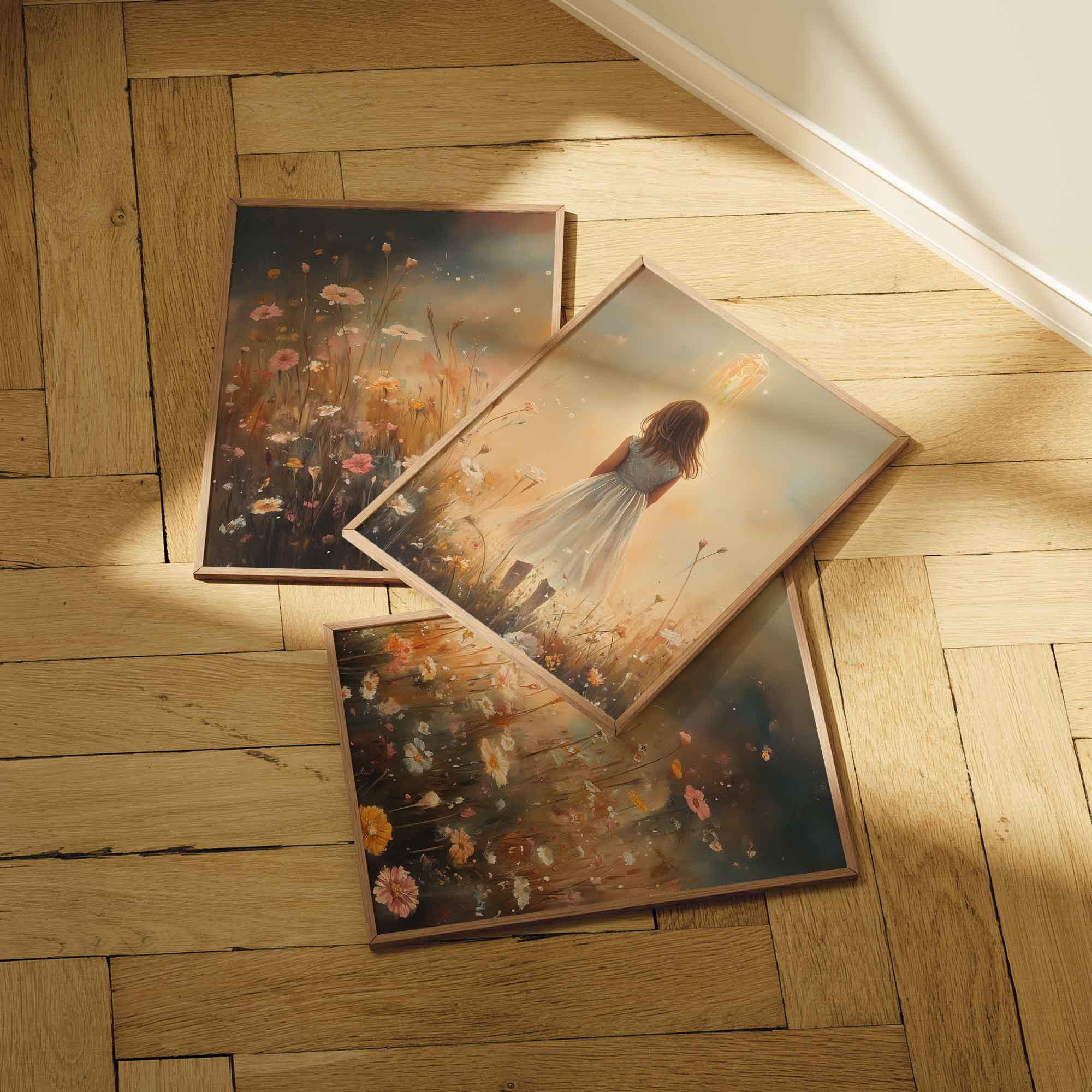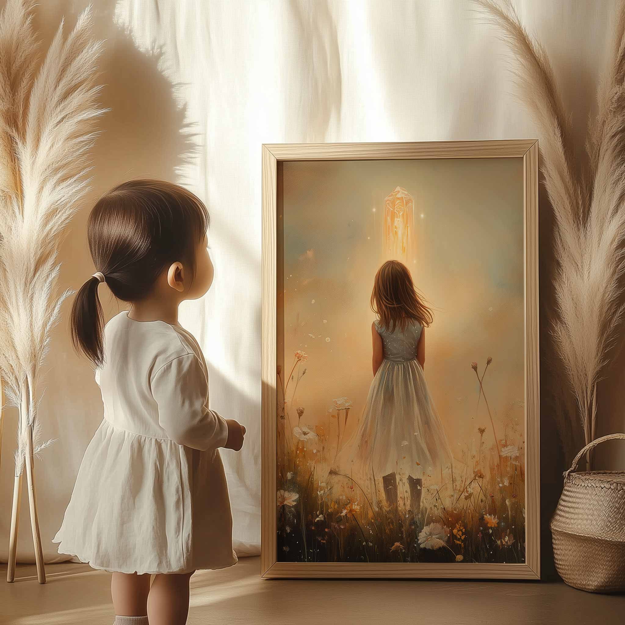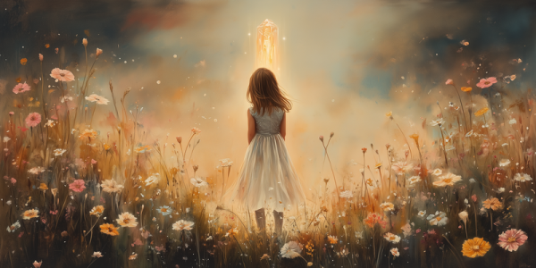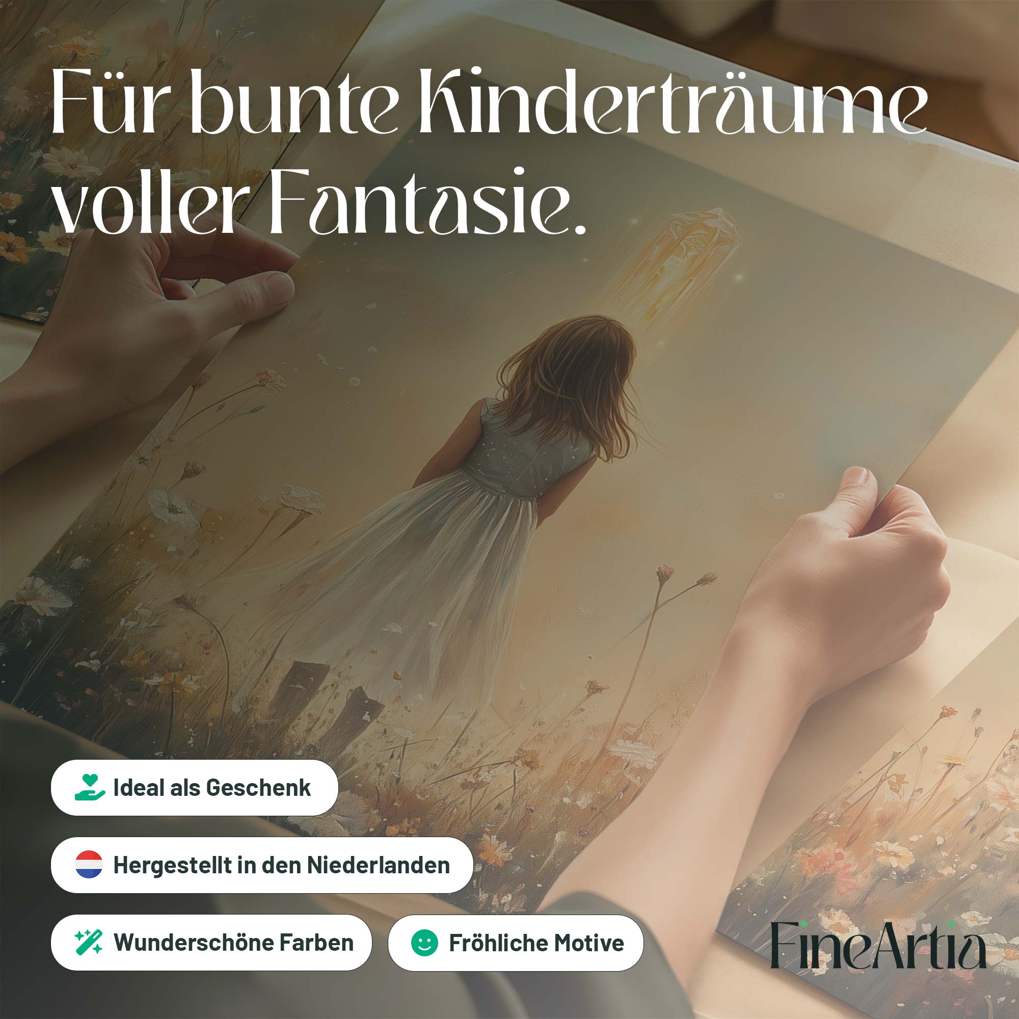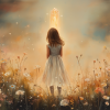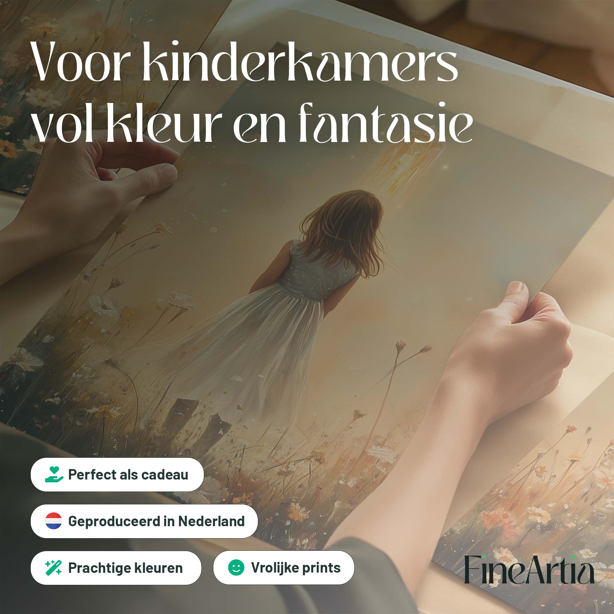 Vrolijk Meisje in Bloemenveld met Gouden Licht