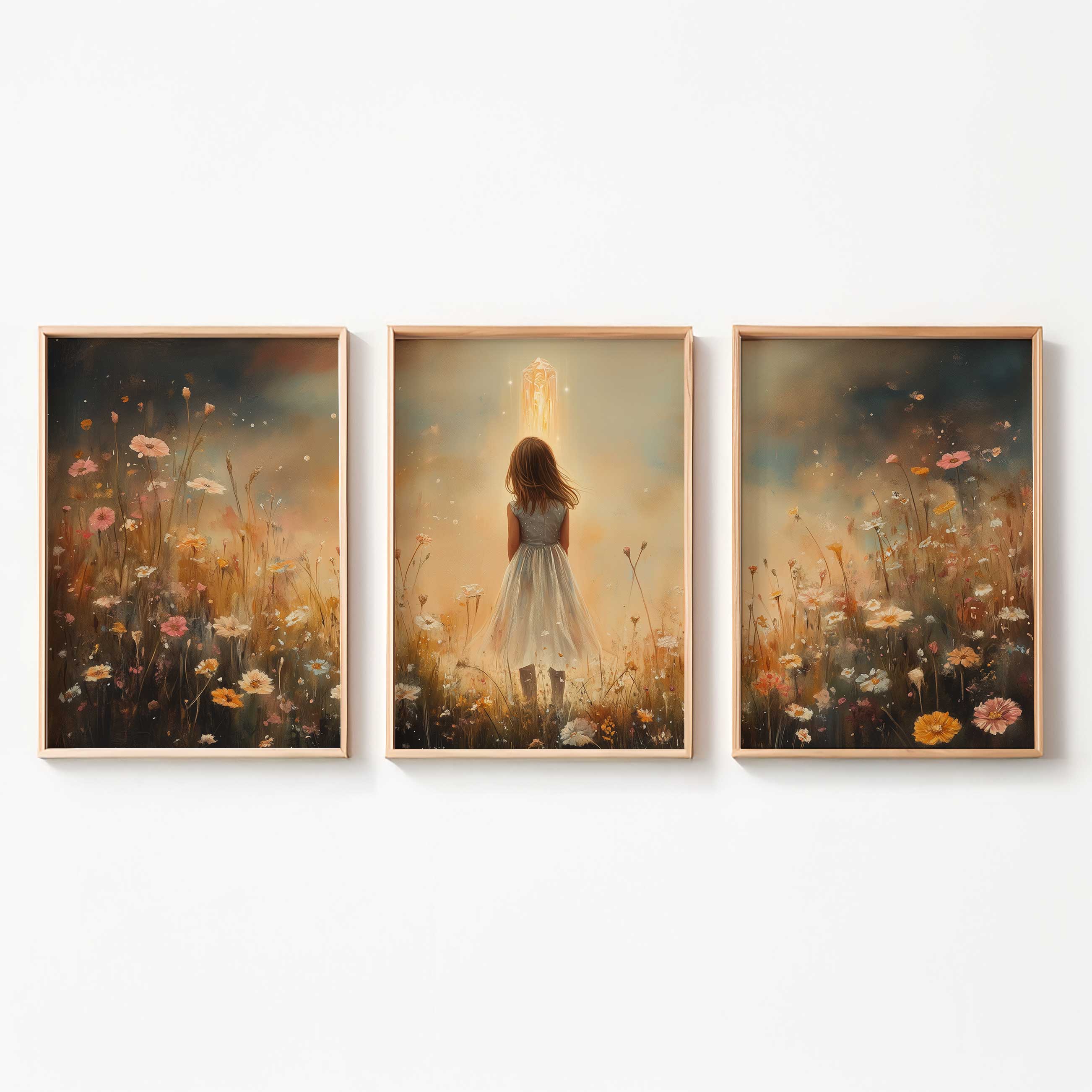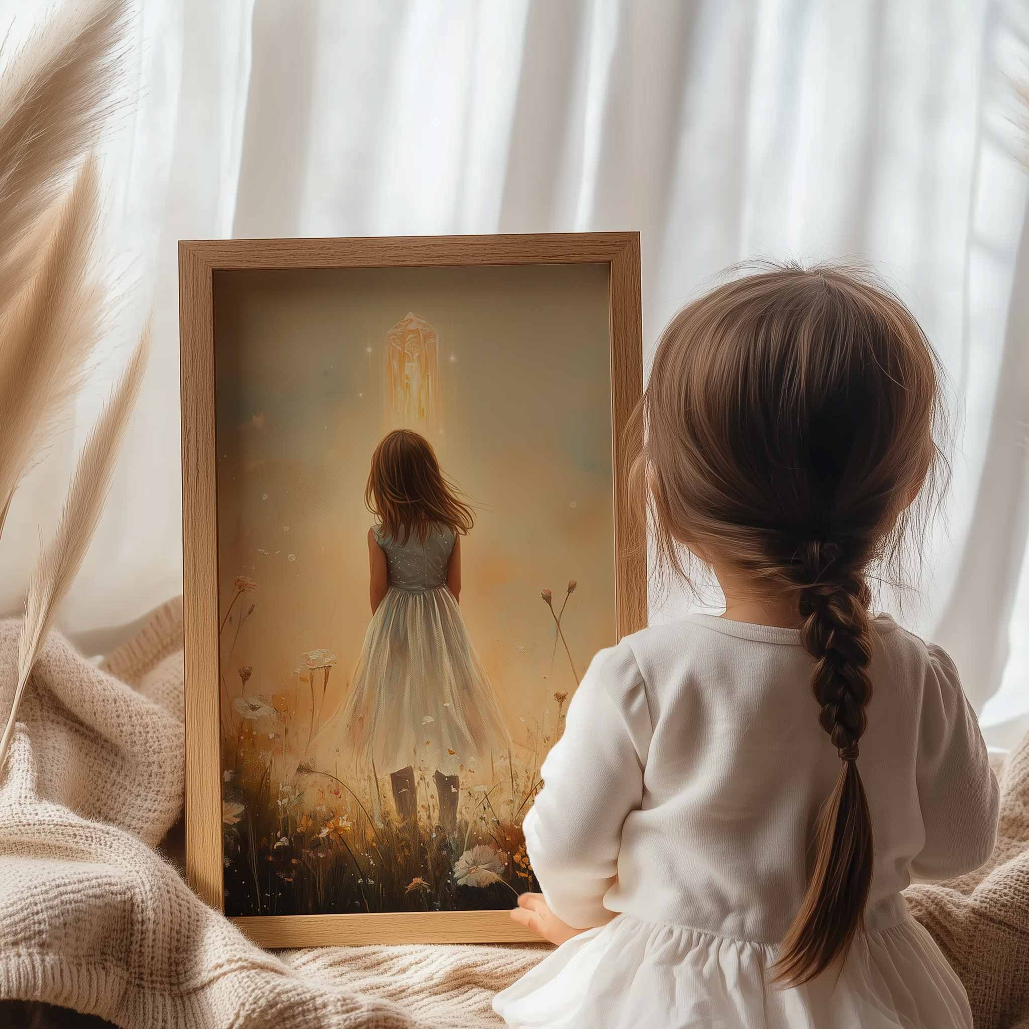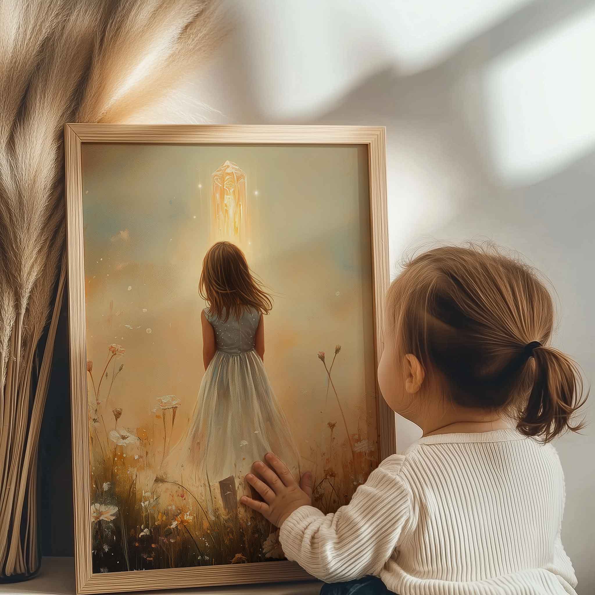 Vrolijk Meisje in Bloemenveld met Gouden Licht
