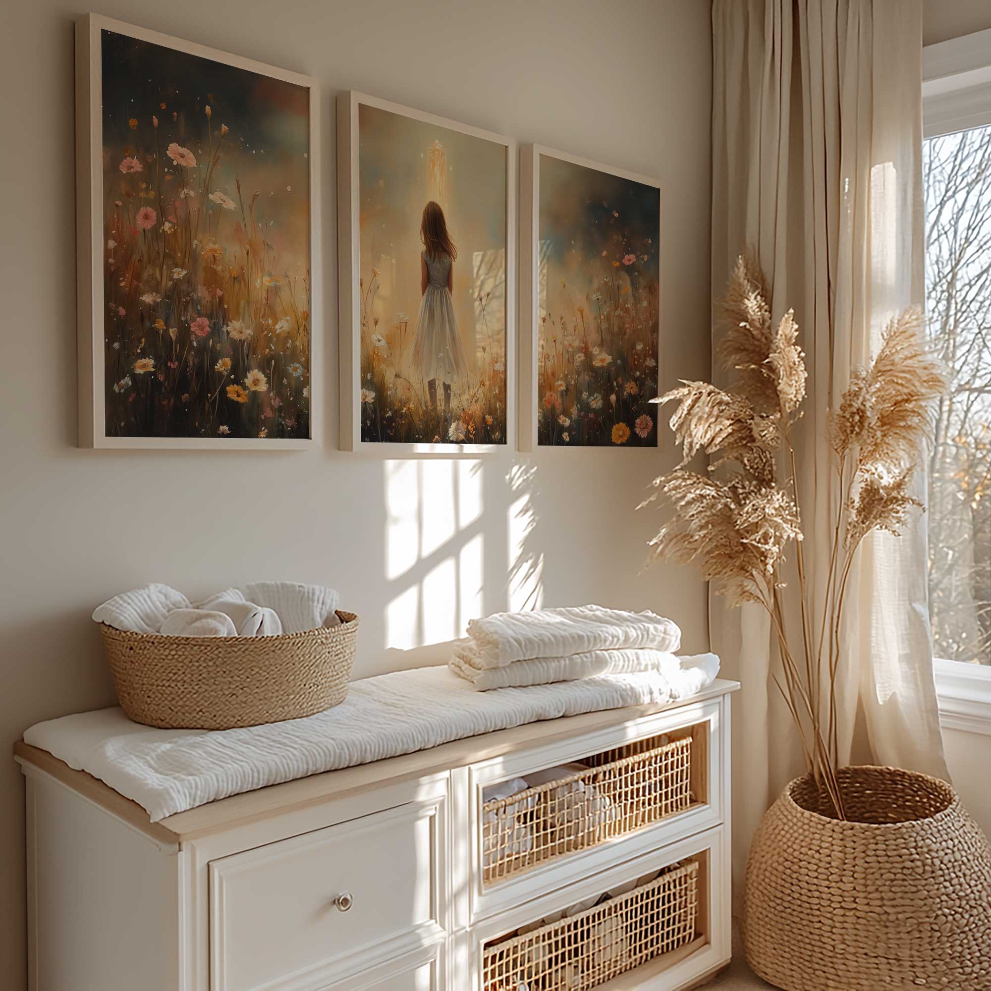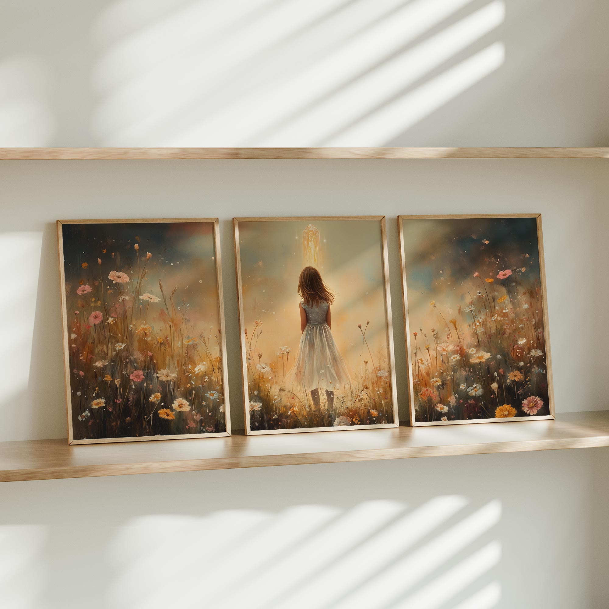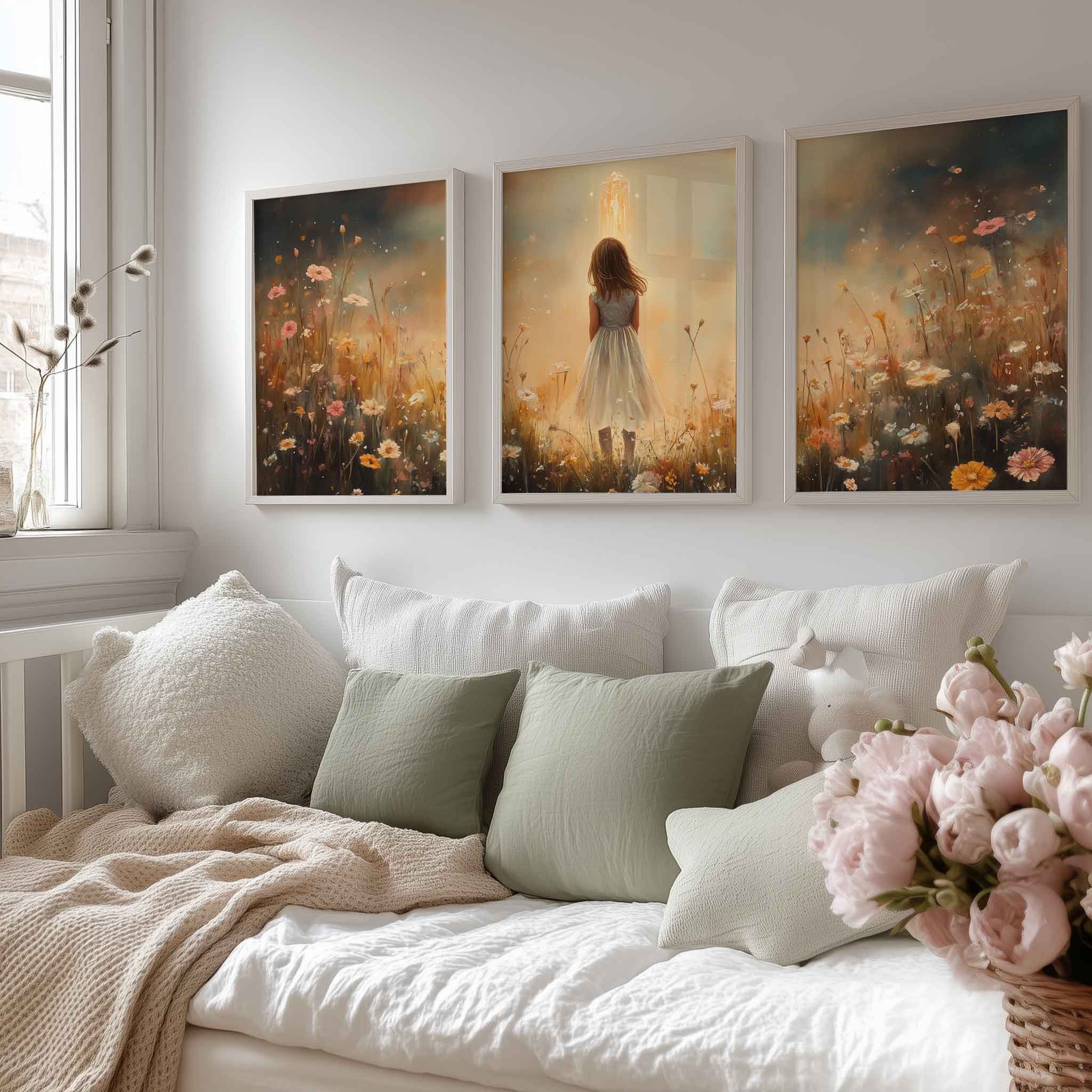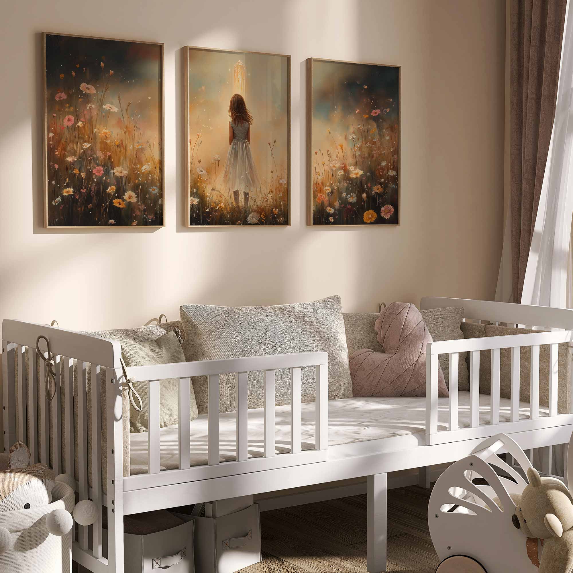 Vrolijk Meisje in Bloemenveld met Gouden Licht