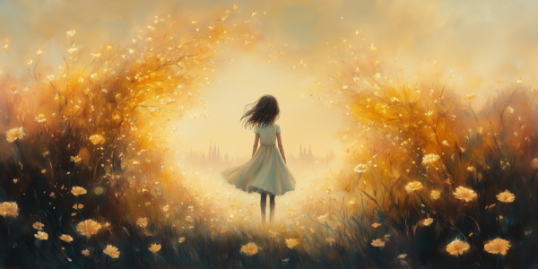 Vrolijk Meisje in een Zee van Zonnige Bloemen