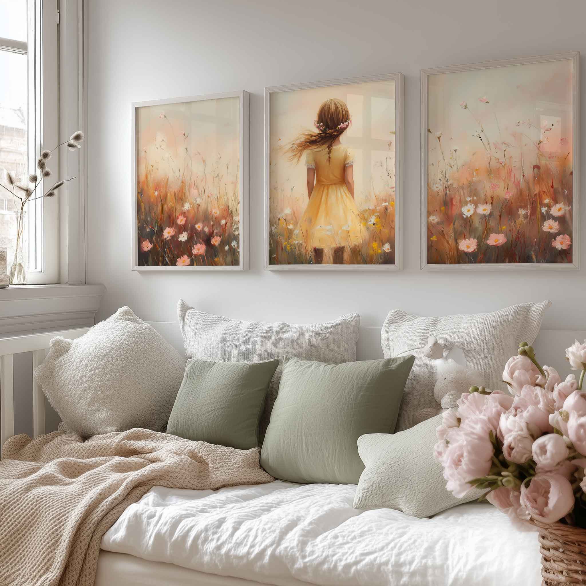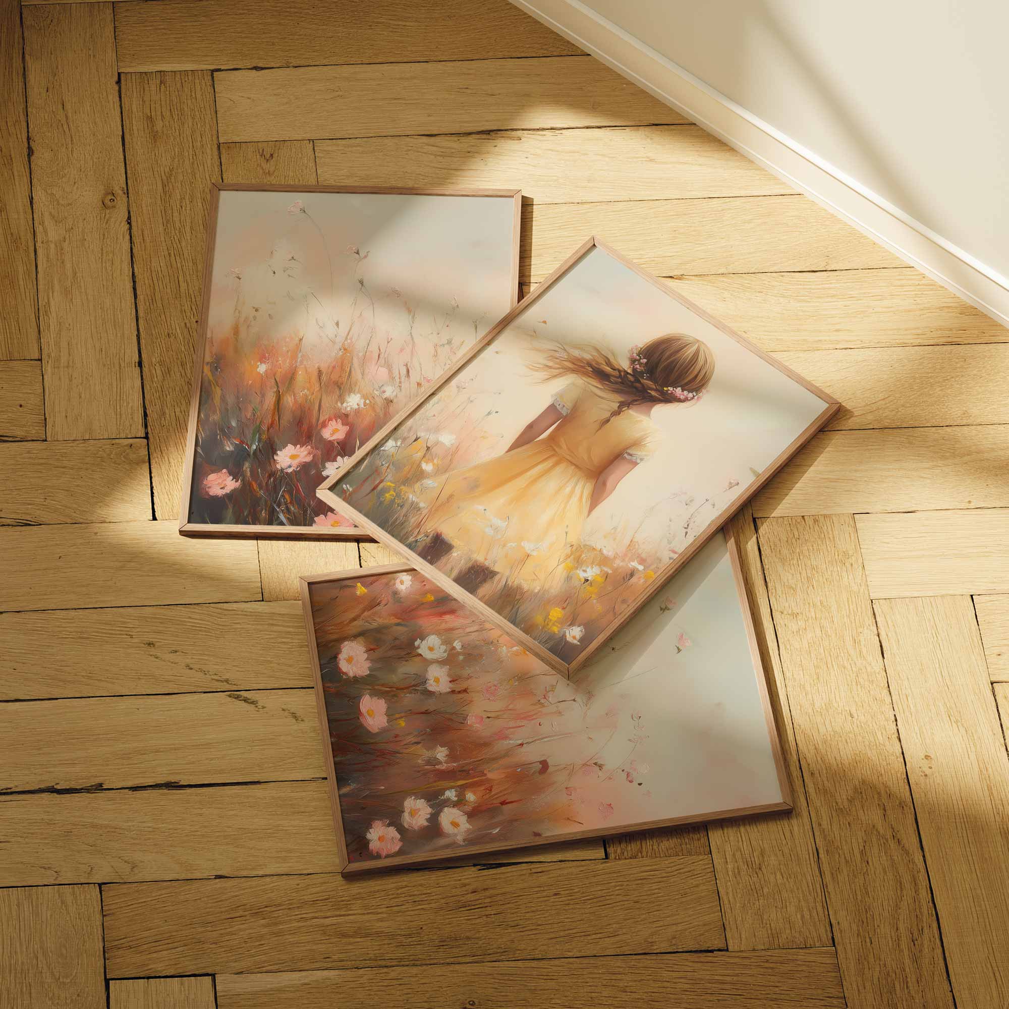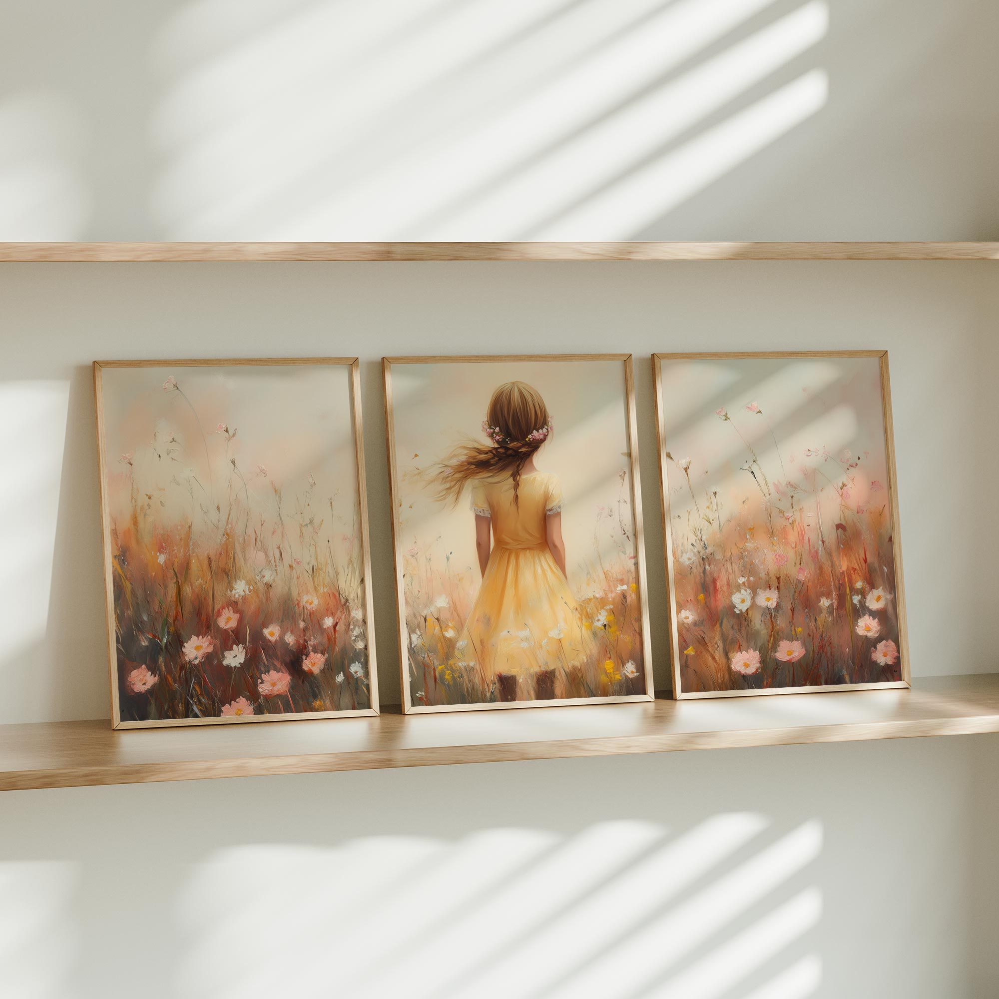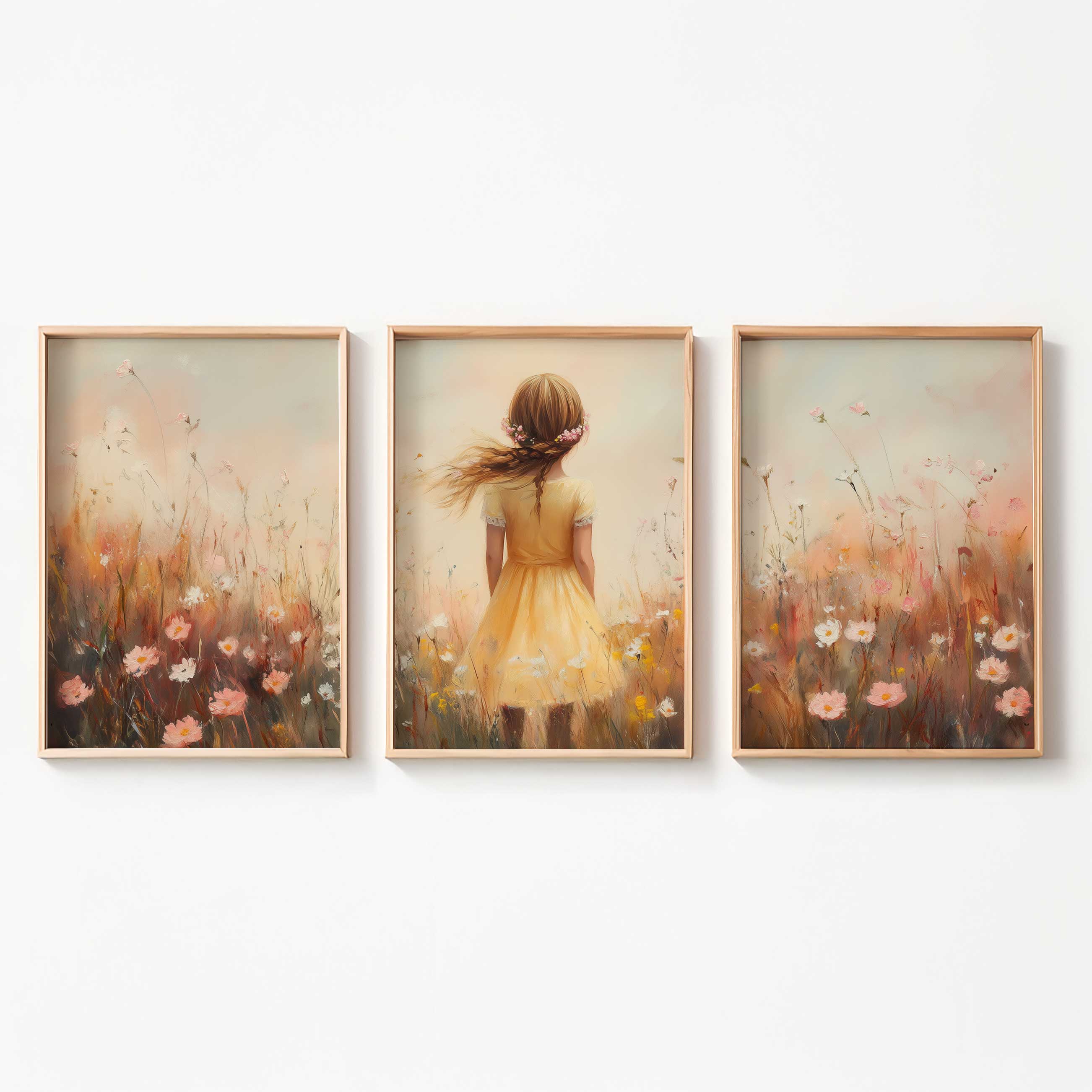 Vrolijk Meisje in Gele Jurk tussen Bloeiende Bloemen