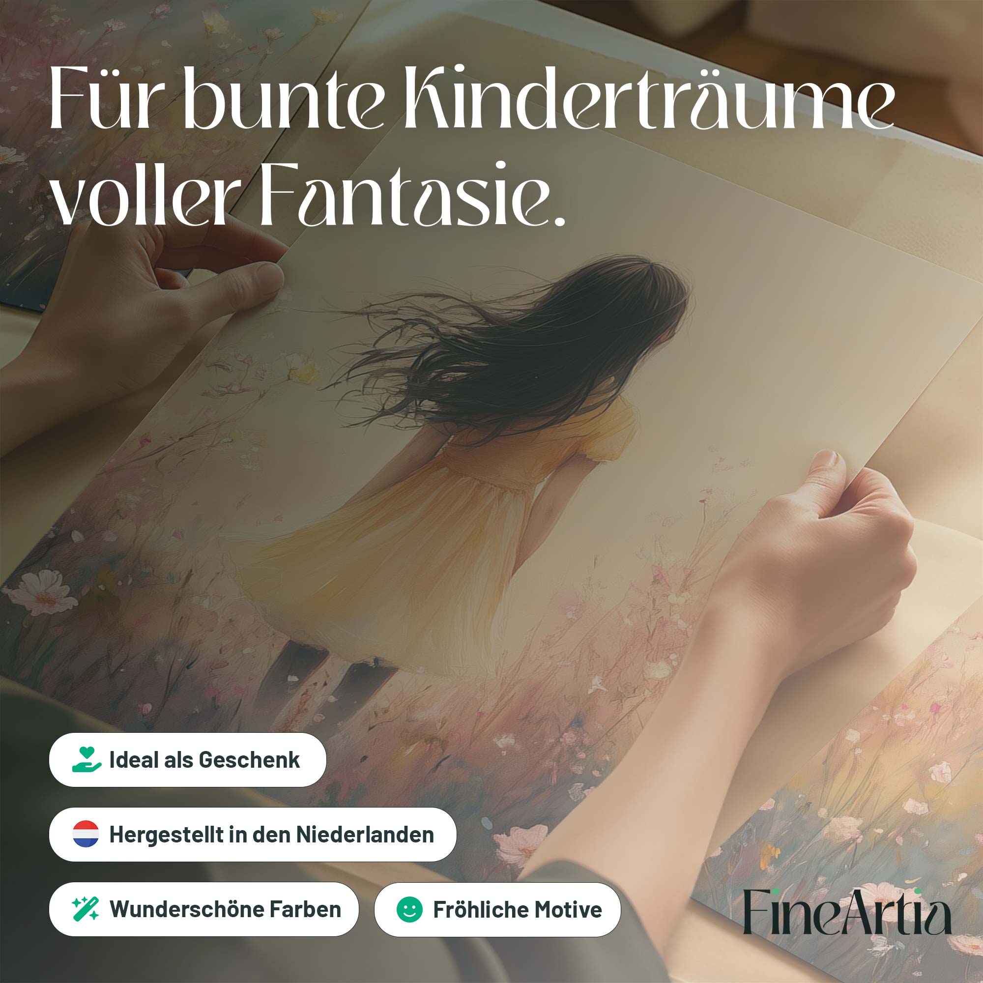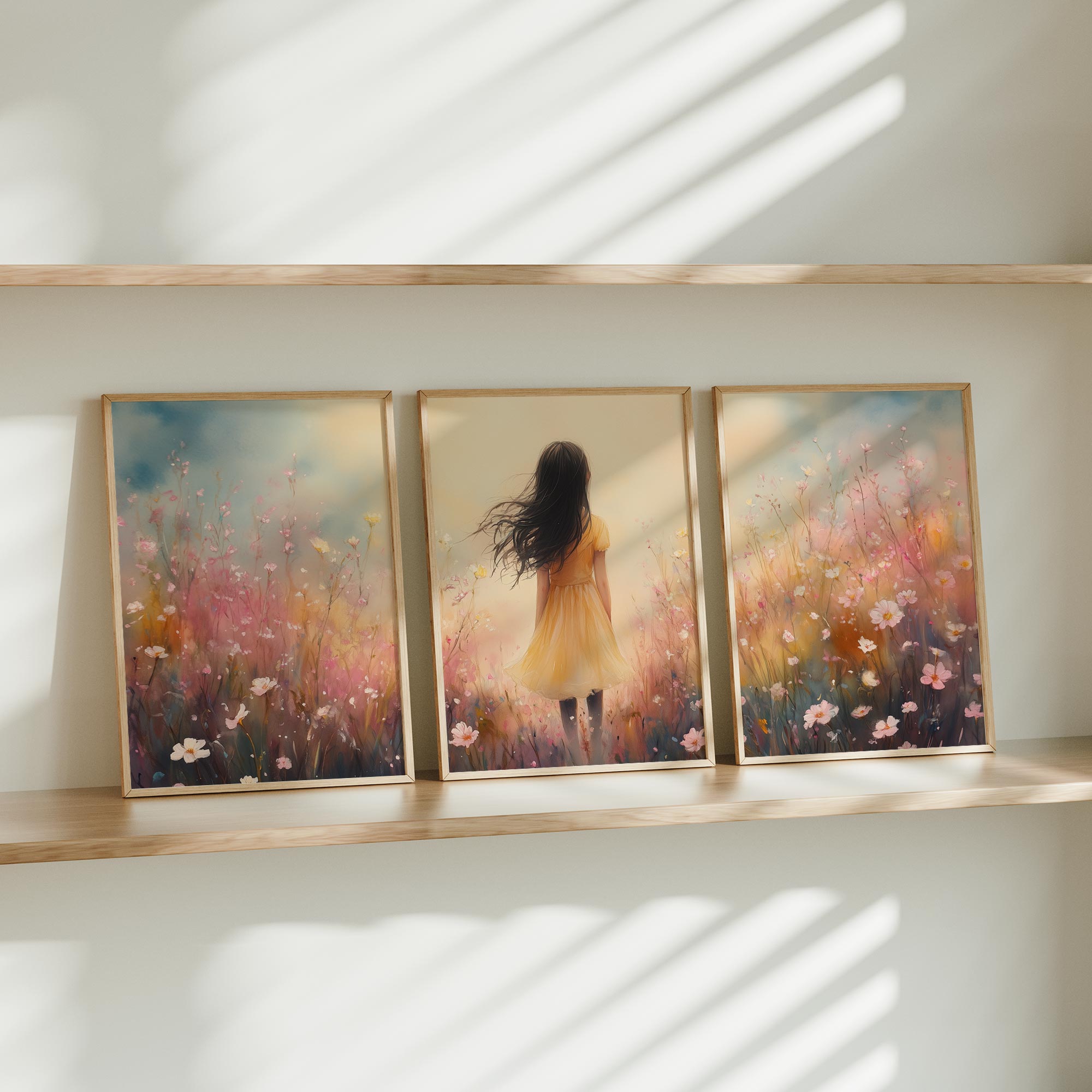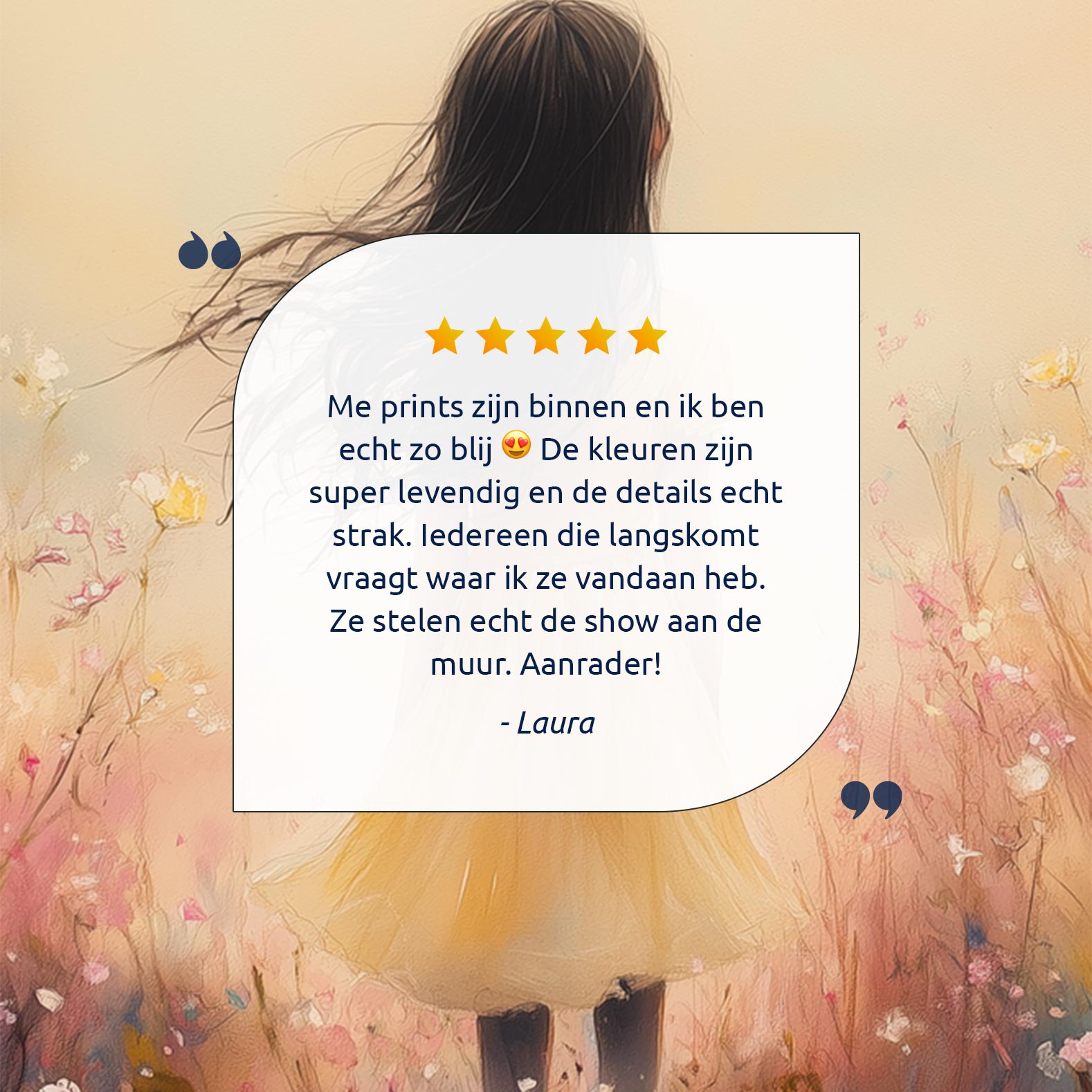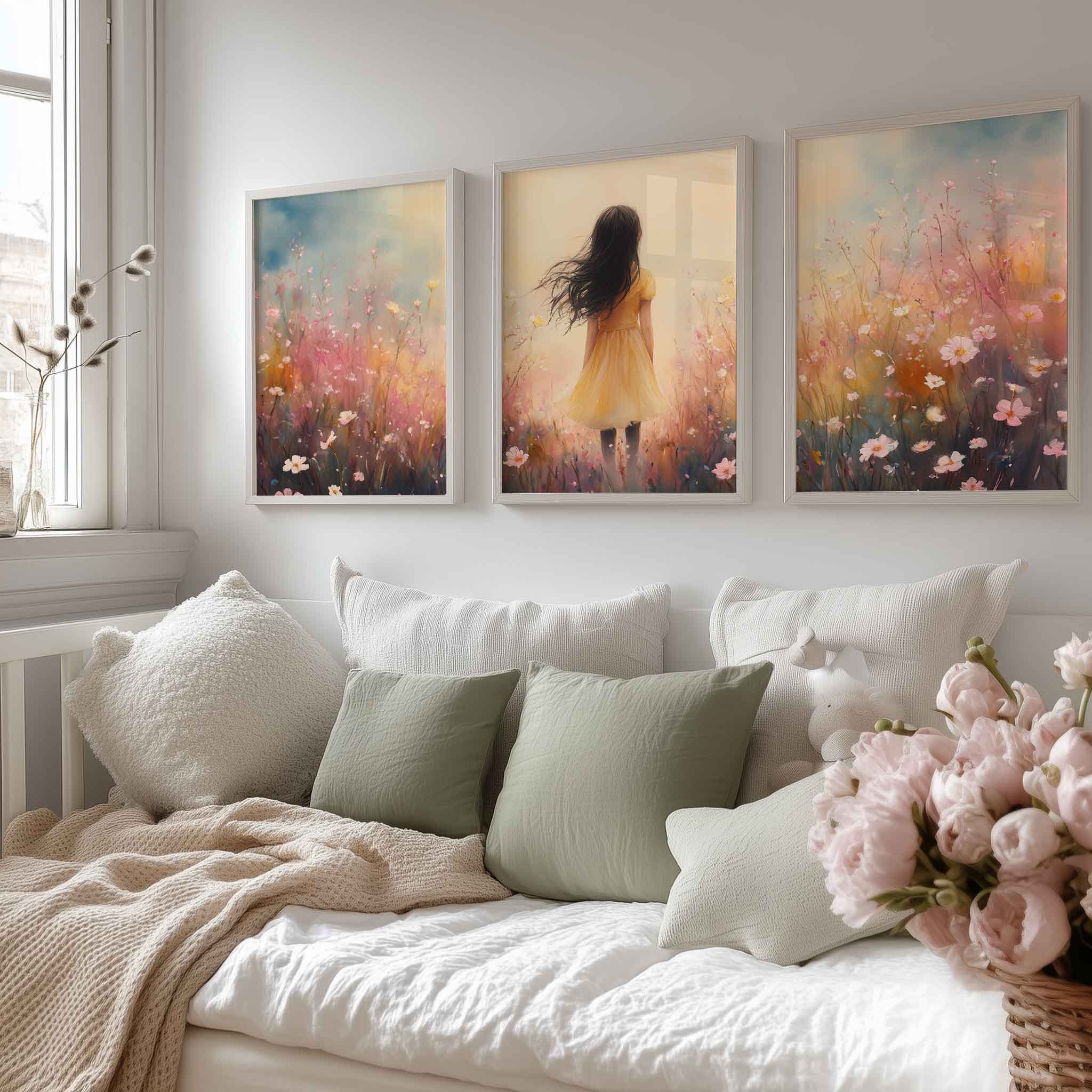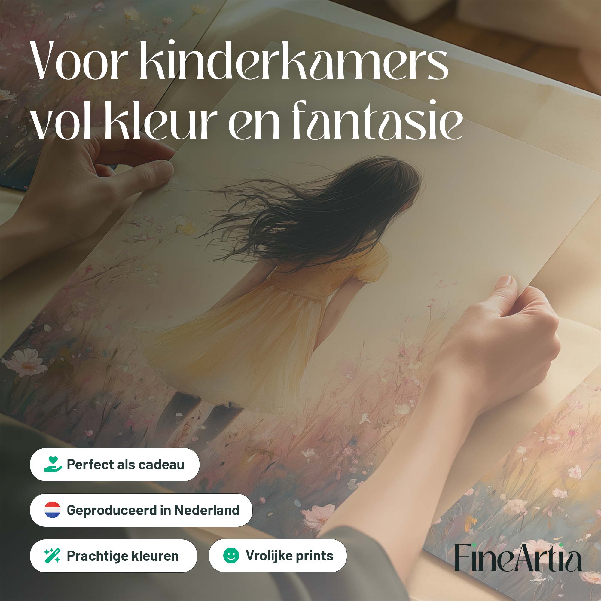 Vrolijk Meisje in Gele Jurk tussen Bloeiende Bloemen