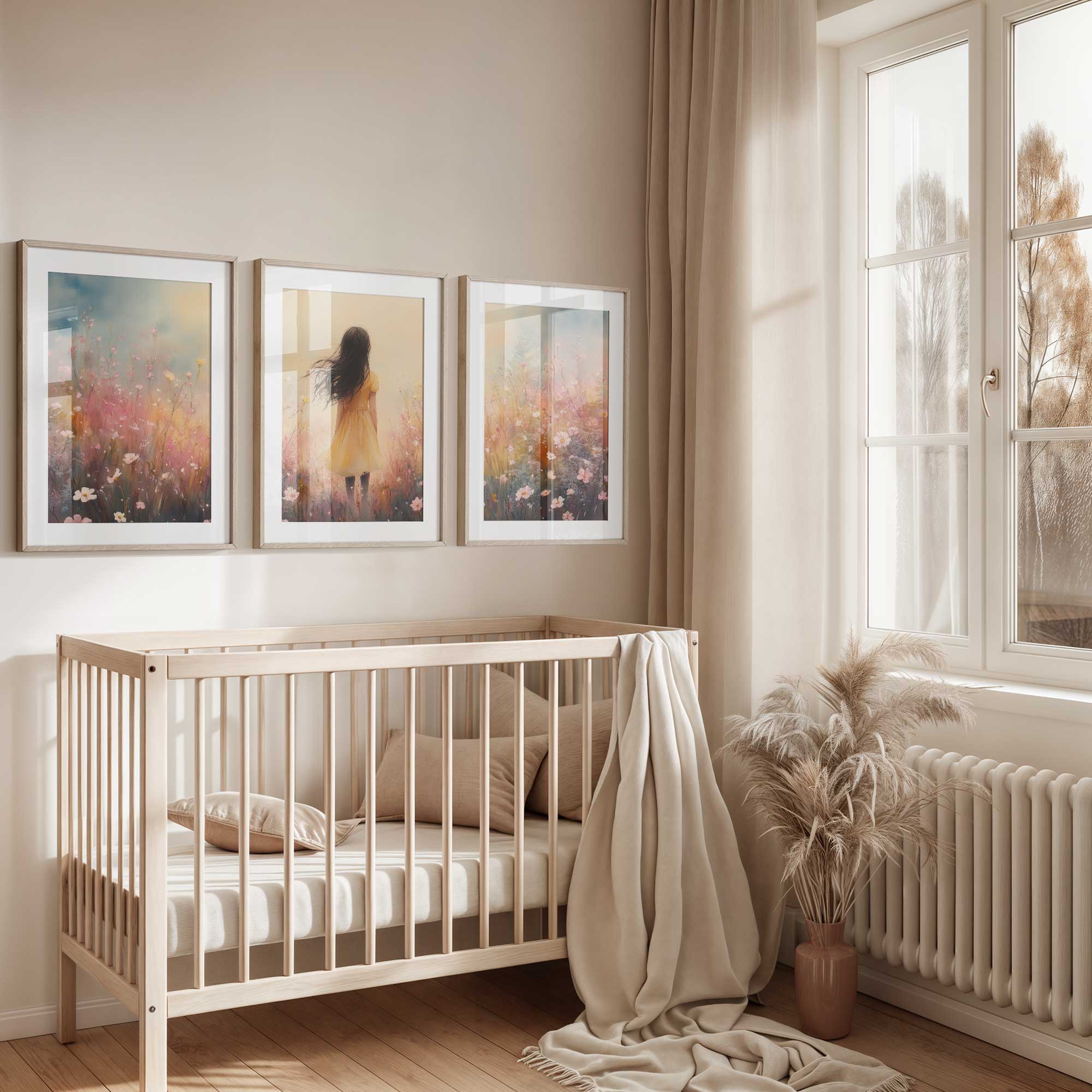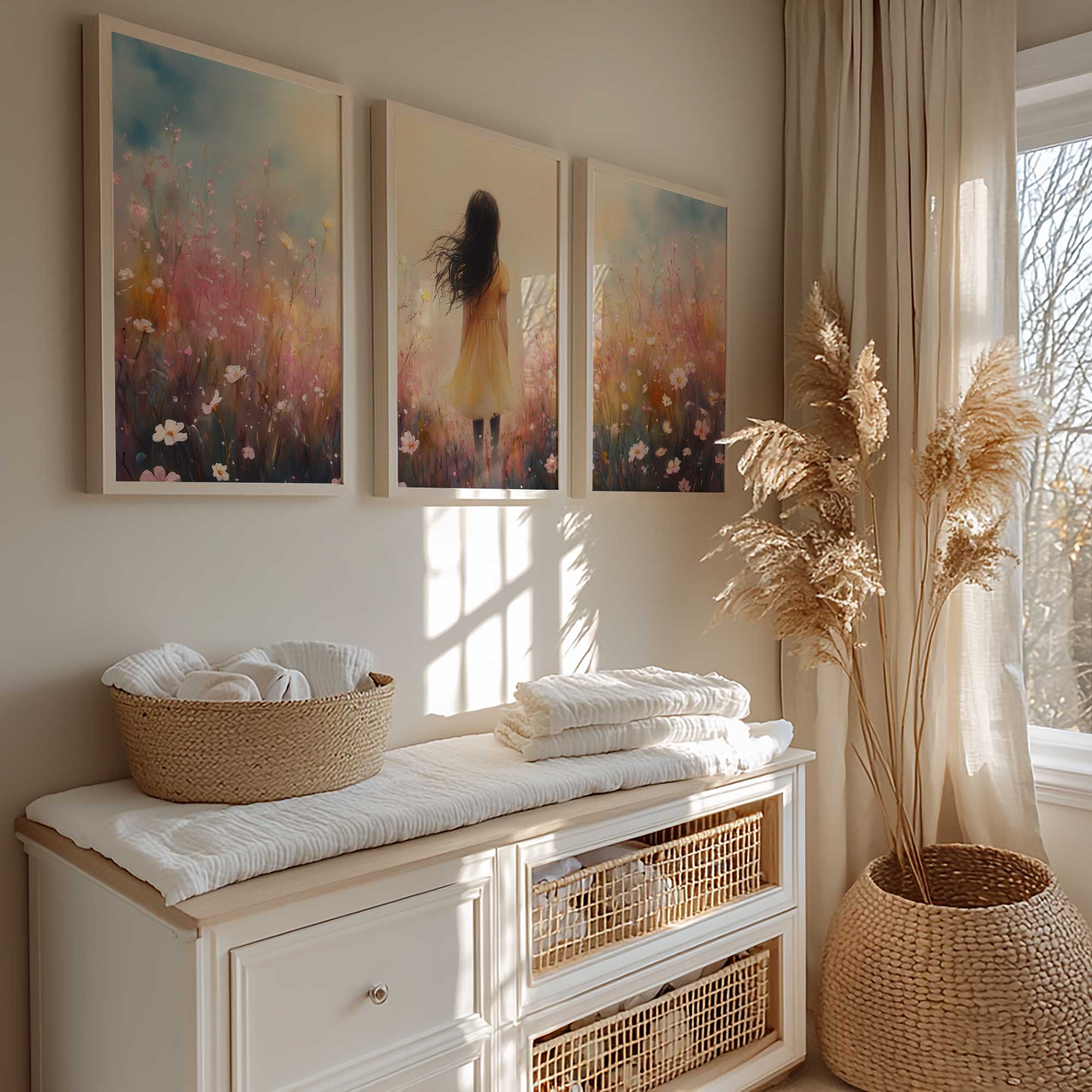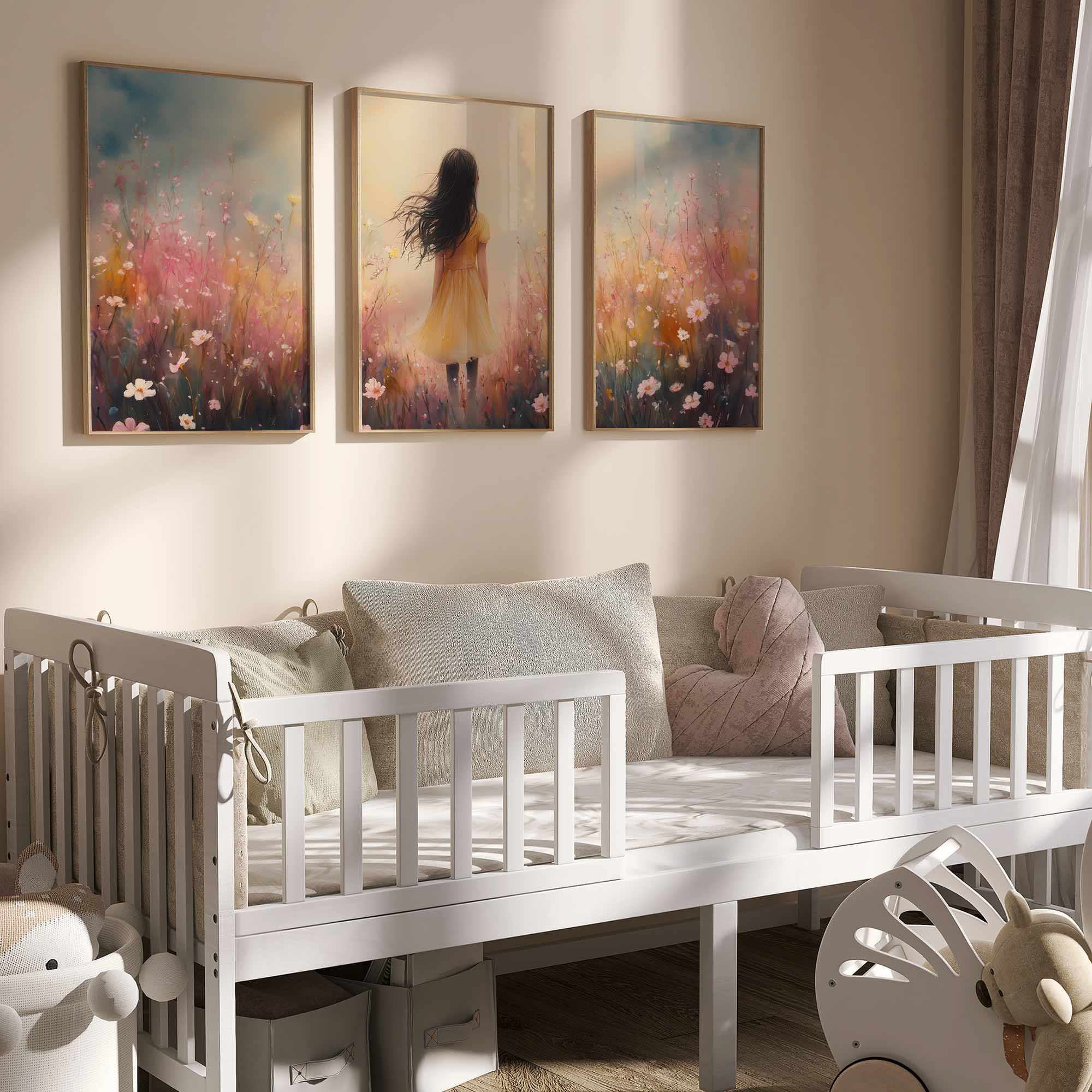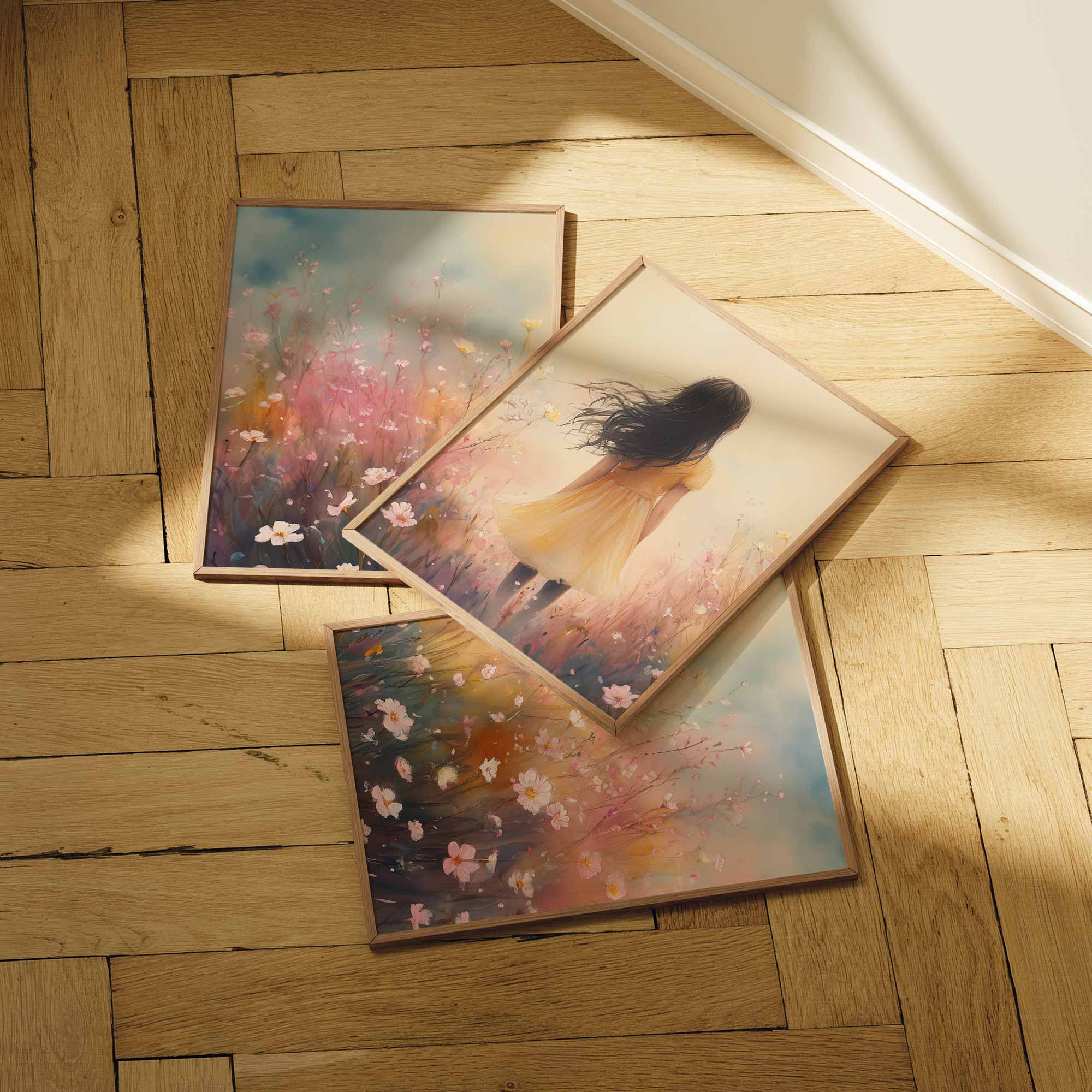 Vrolijk Meisje in Gele Jurk tussen Bloeiende Bloemen