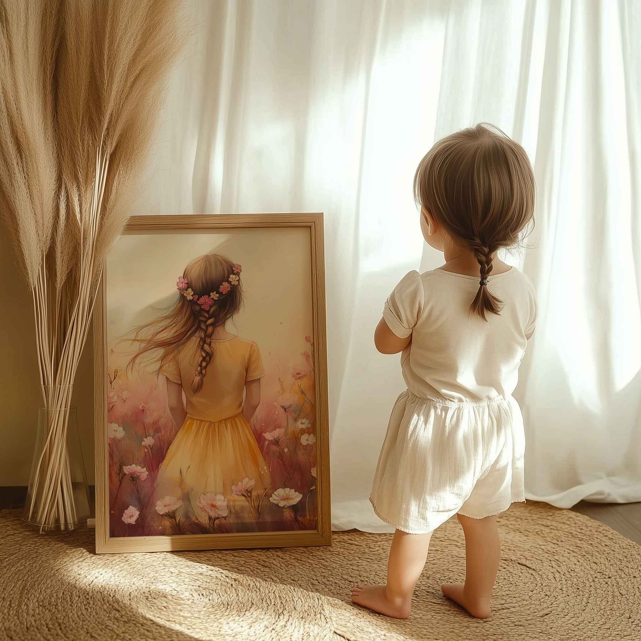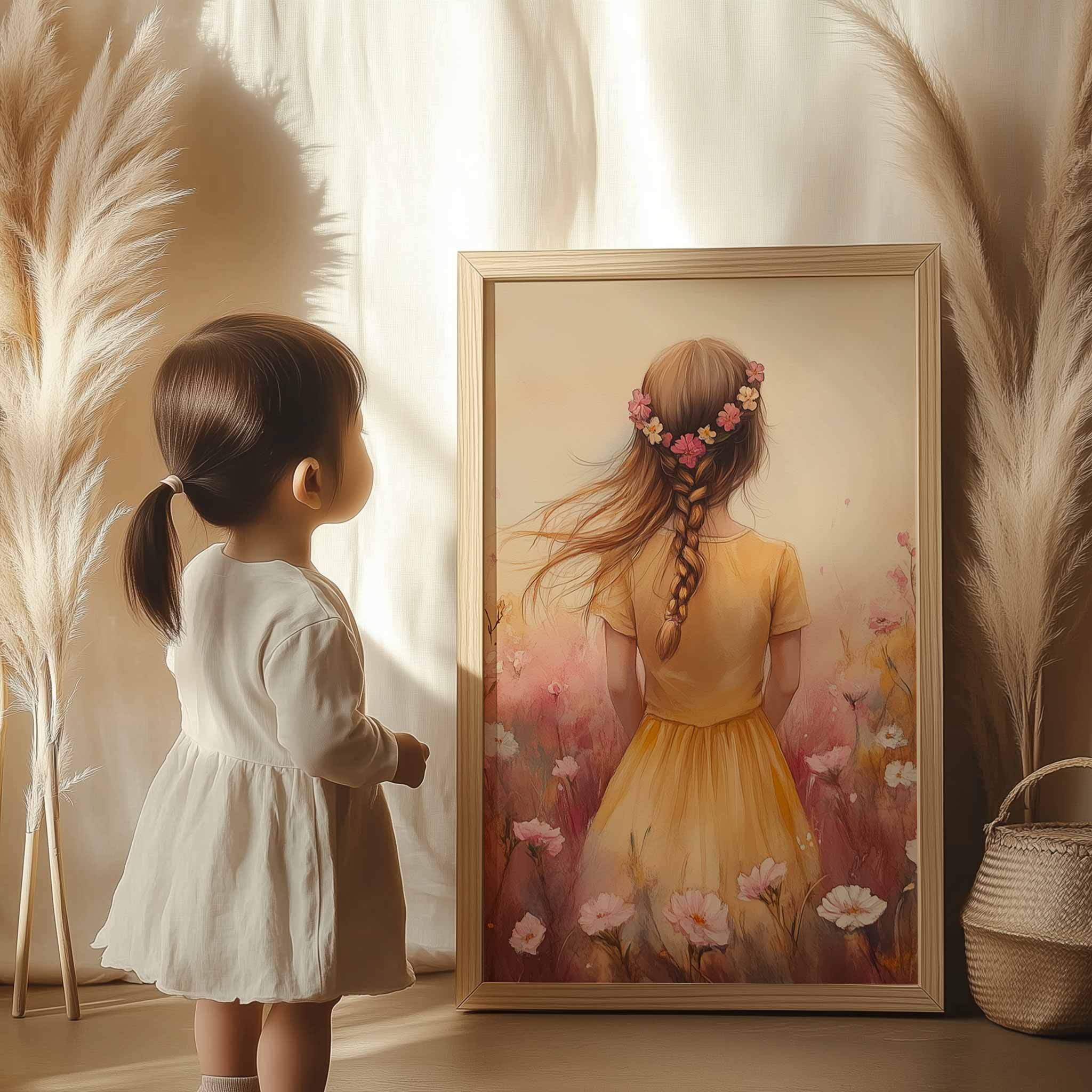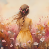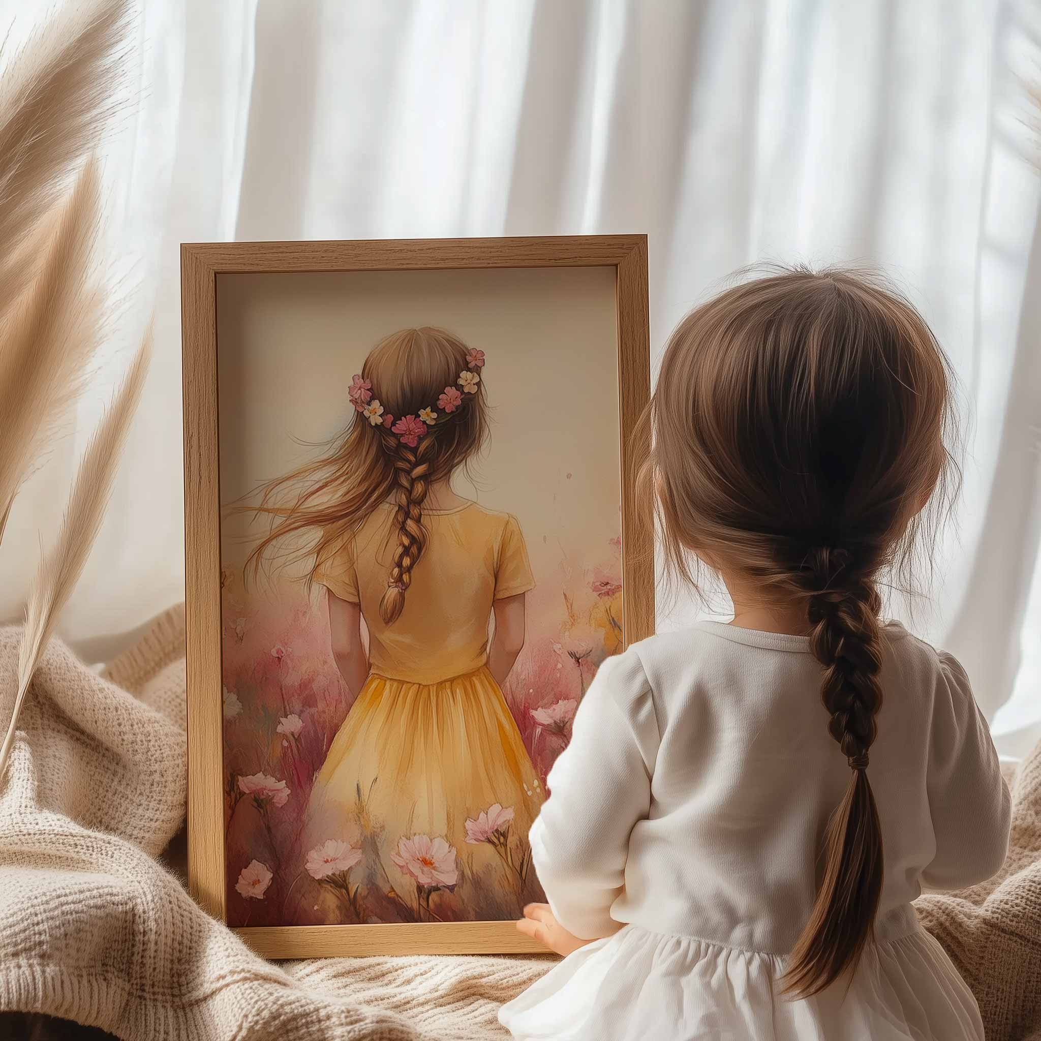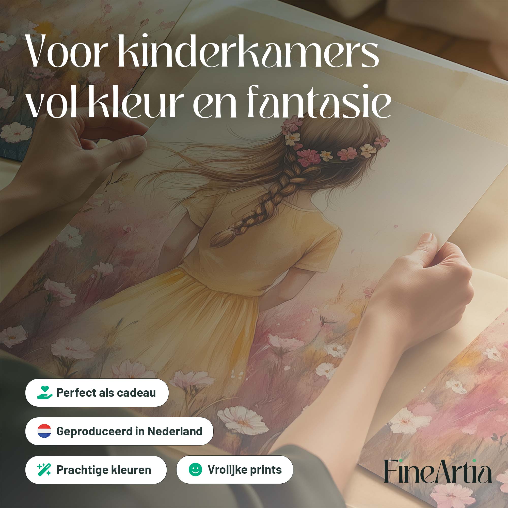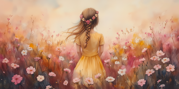 Vrolijk Meisje in Gele Jurk tussen Bloemenveld