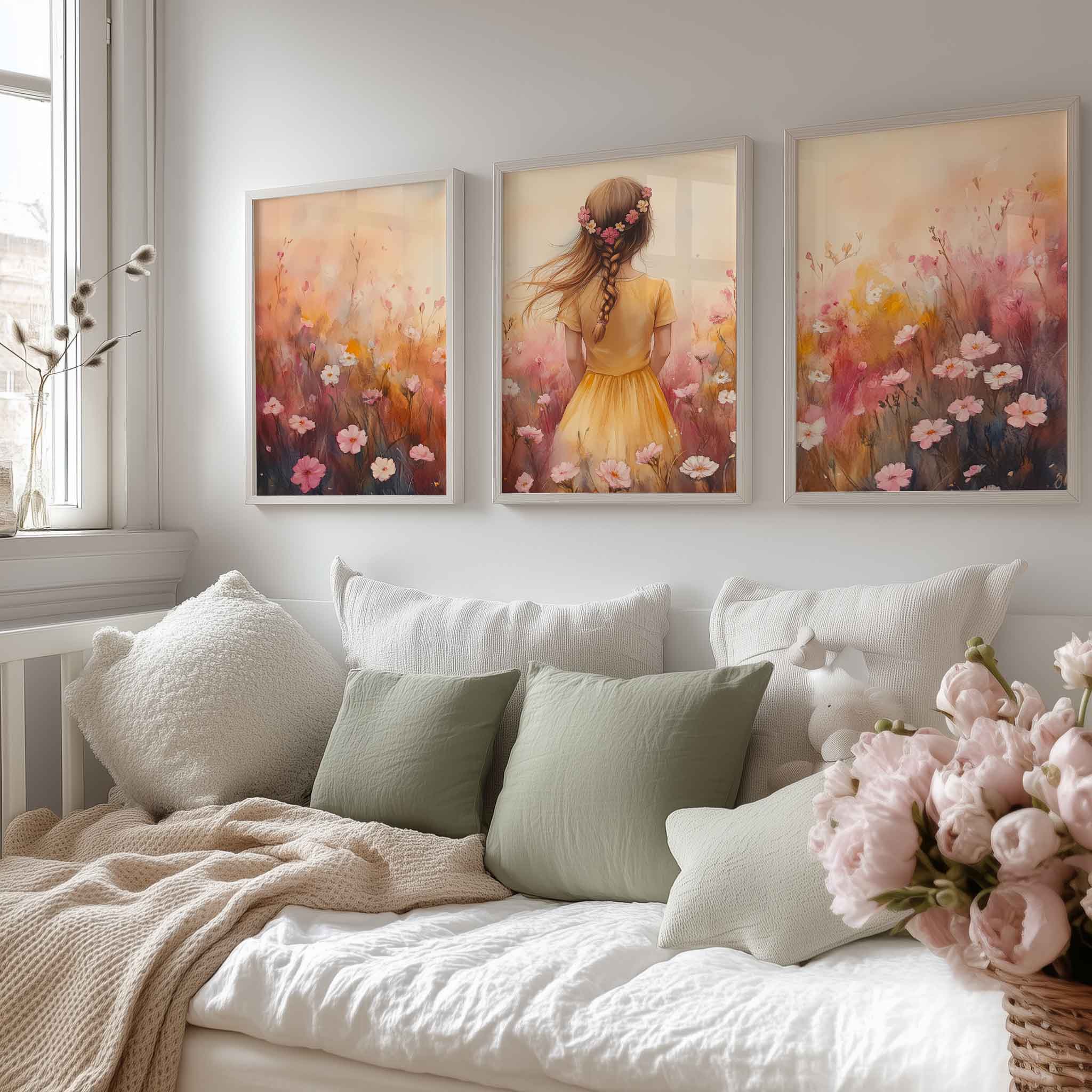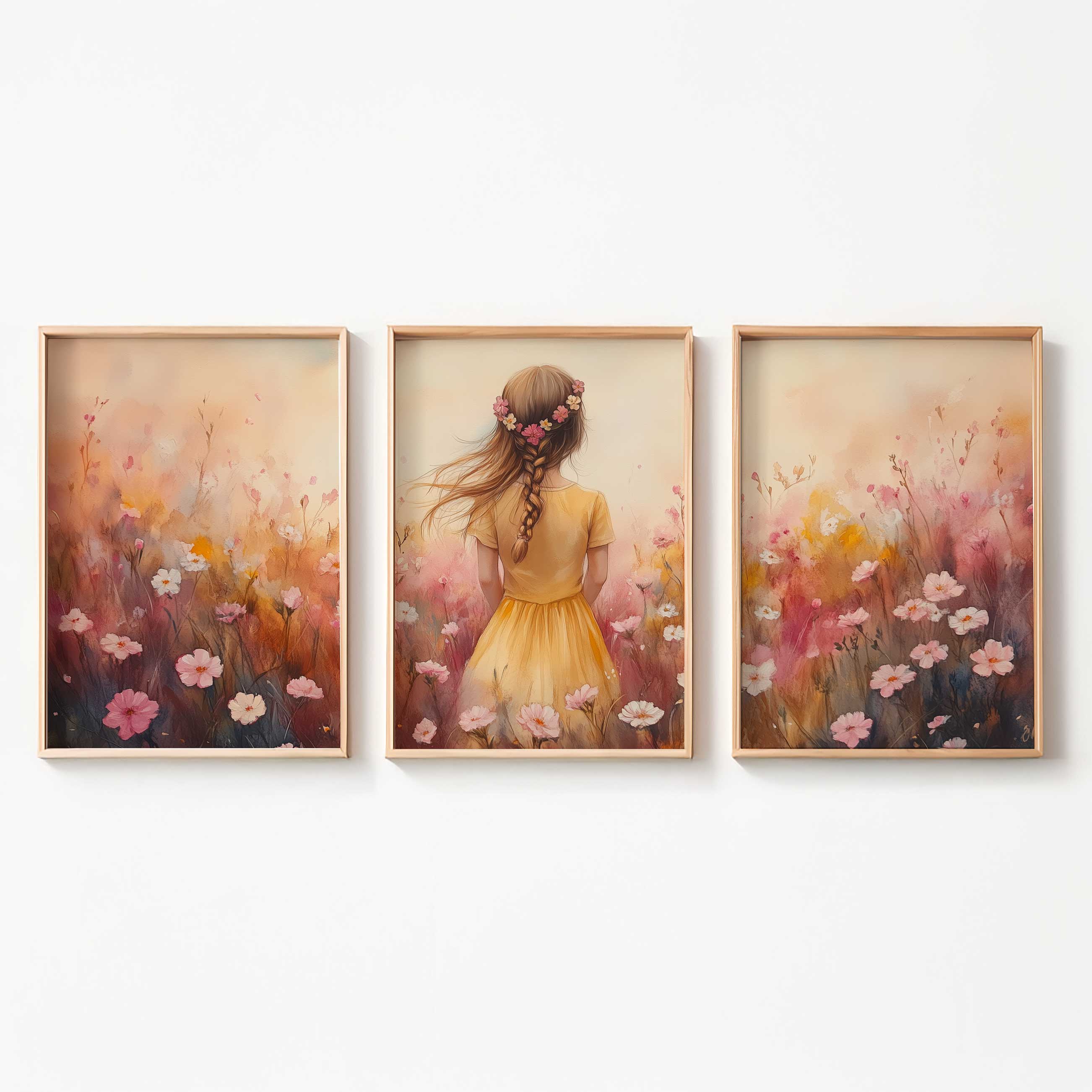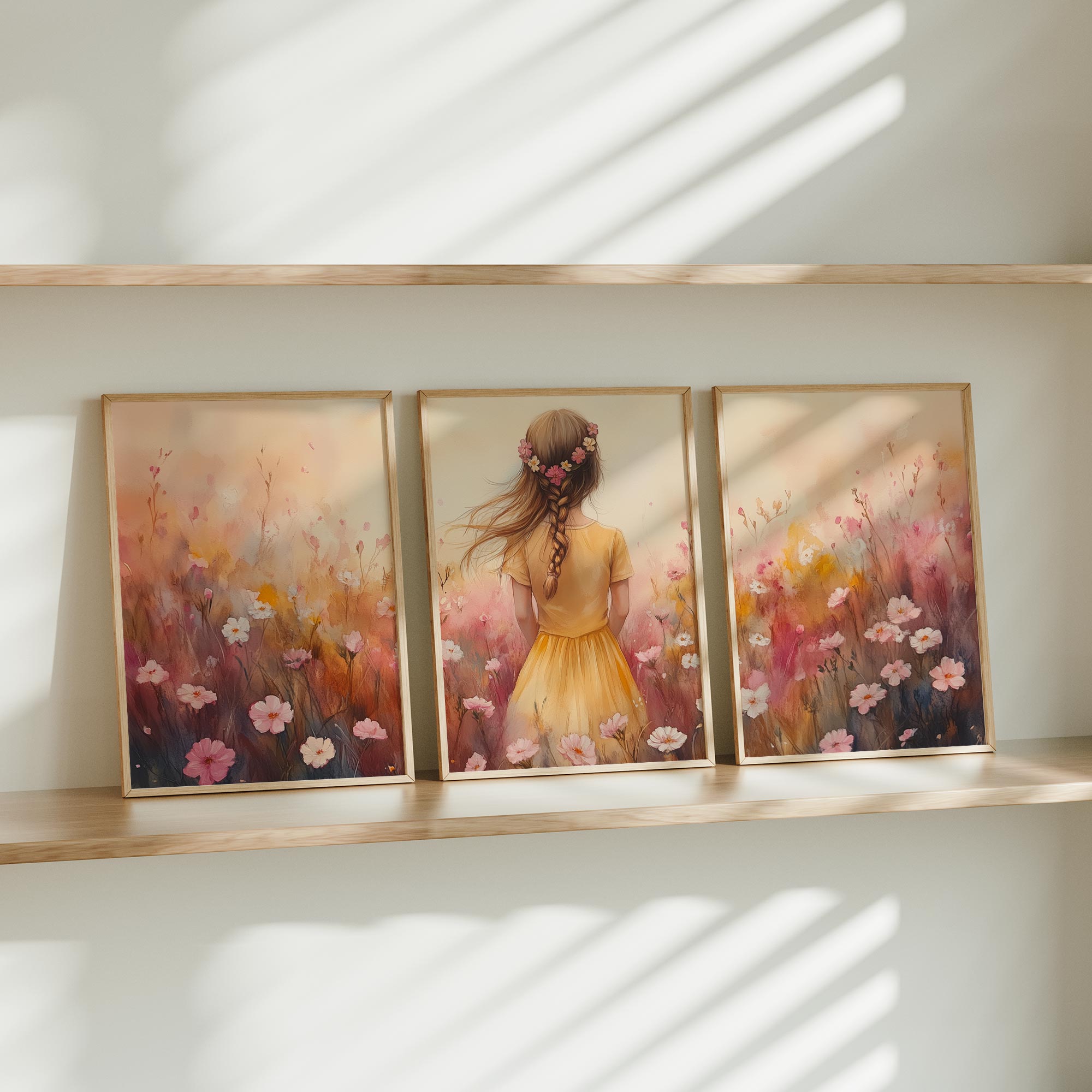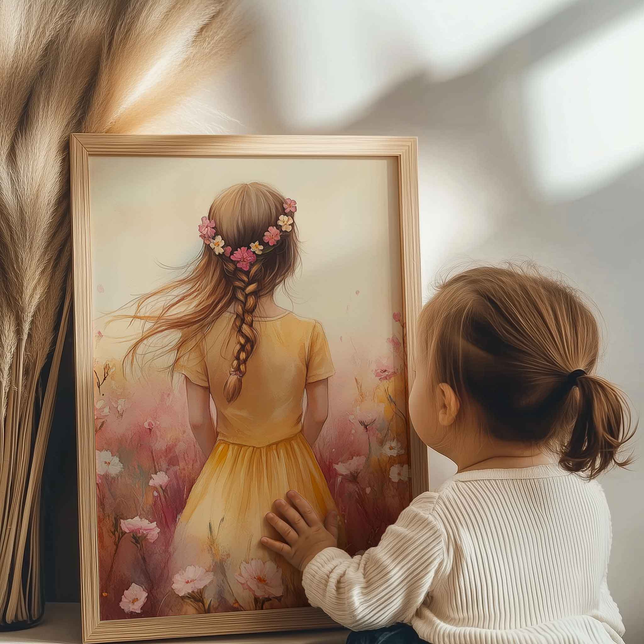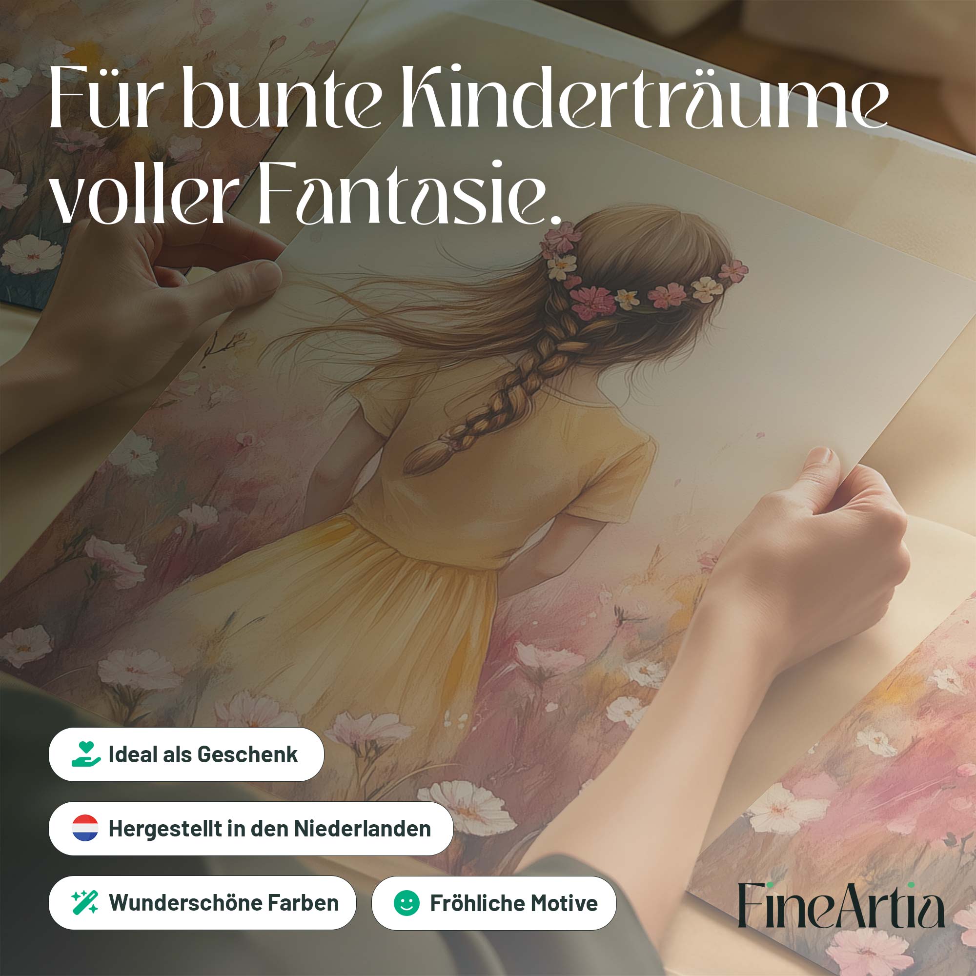 Vrolijk Meisje in Gele Jurk tussen Bloemenveld