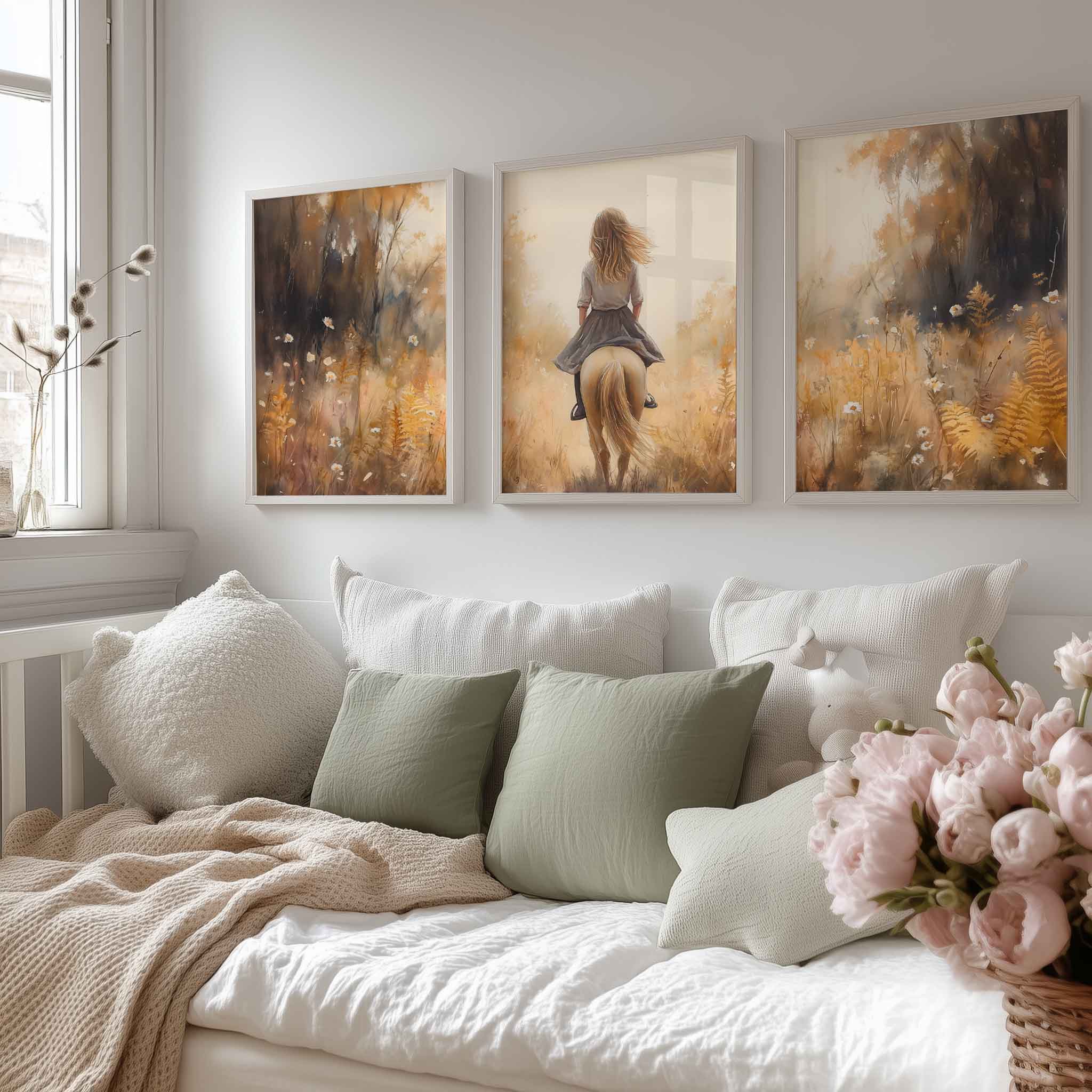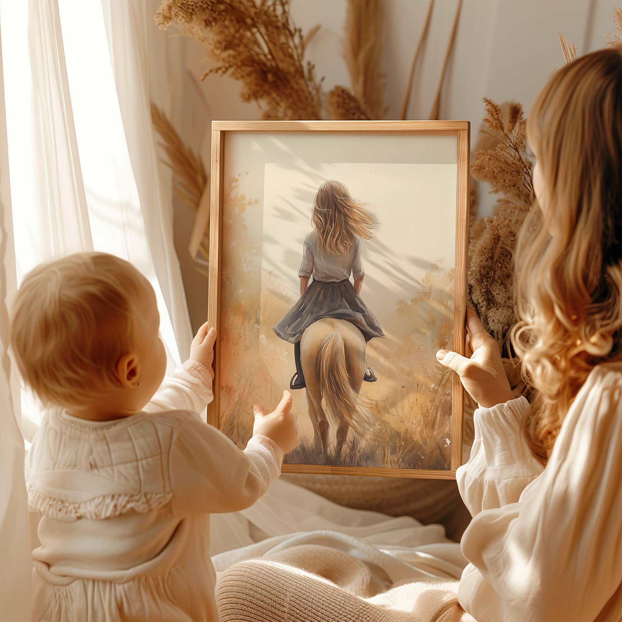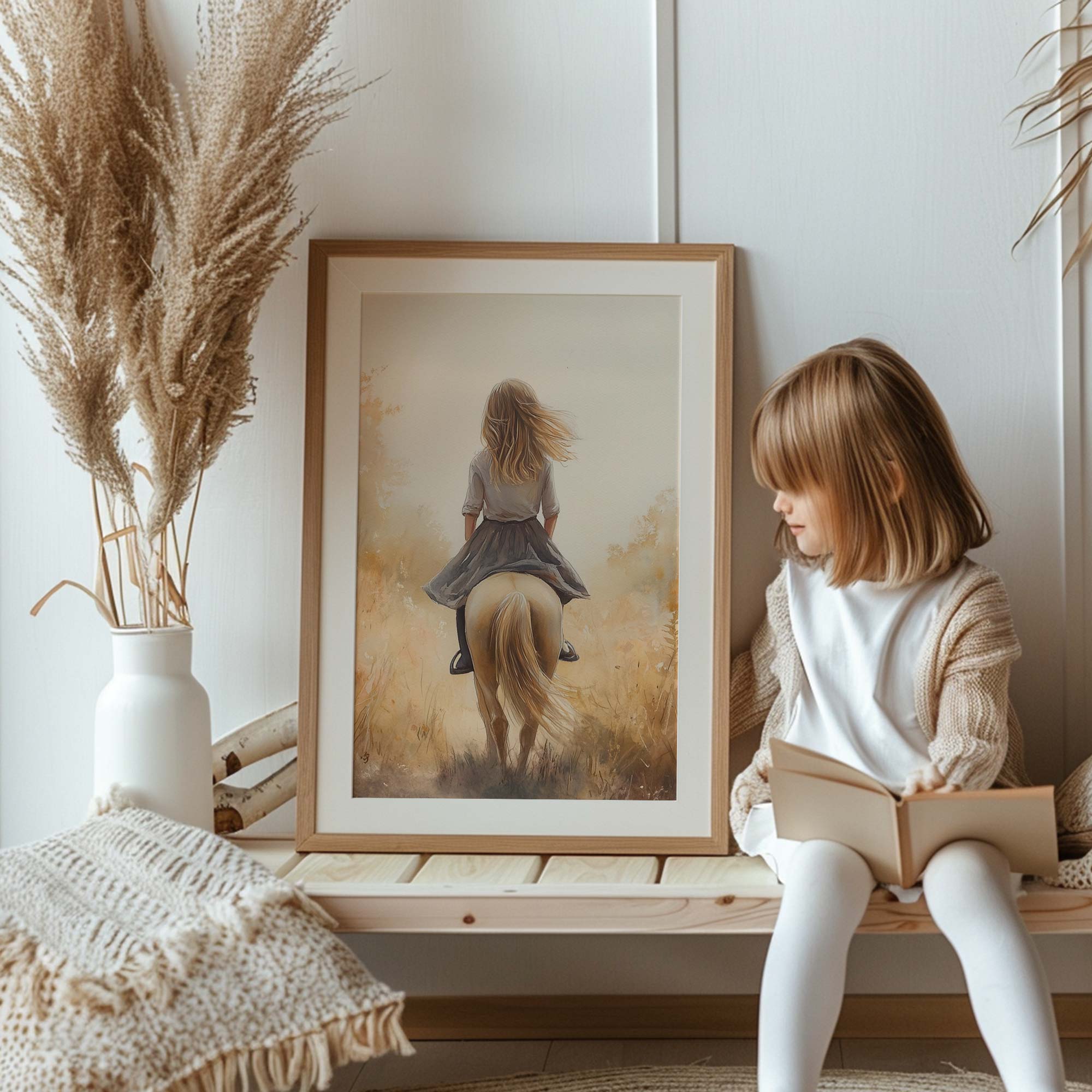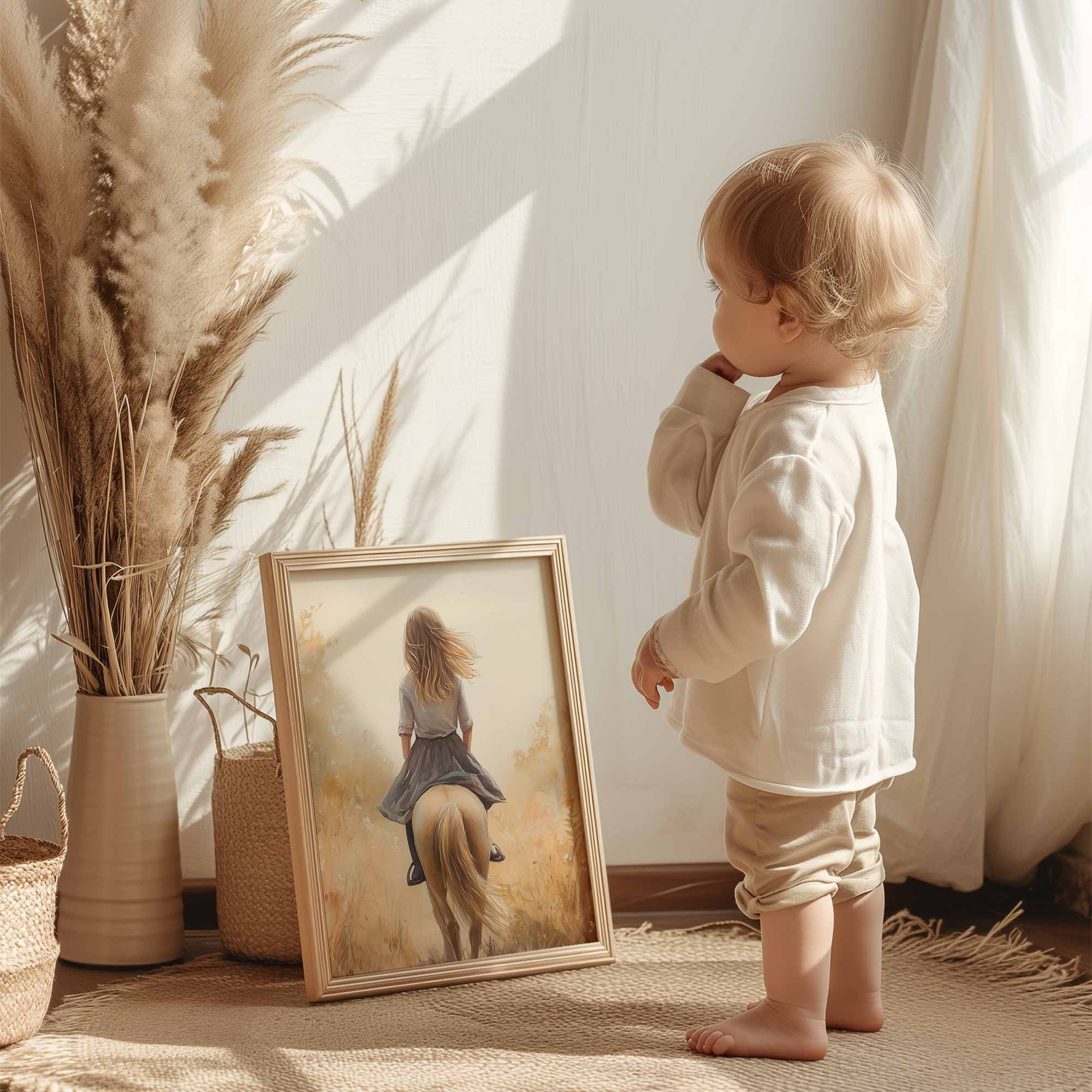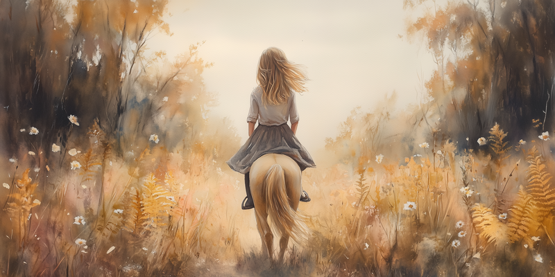 Vrolijk Meisje op Paard in Zonnig Bloemenveld