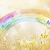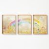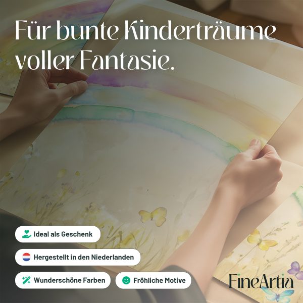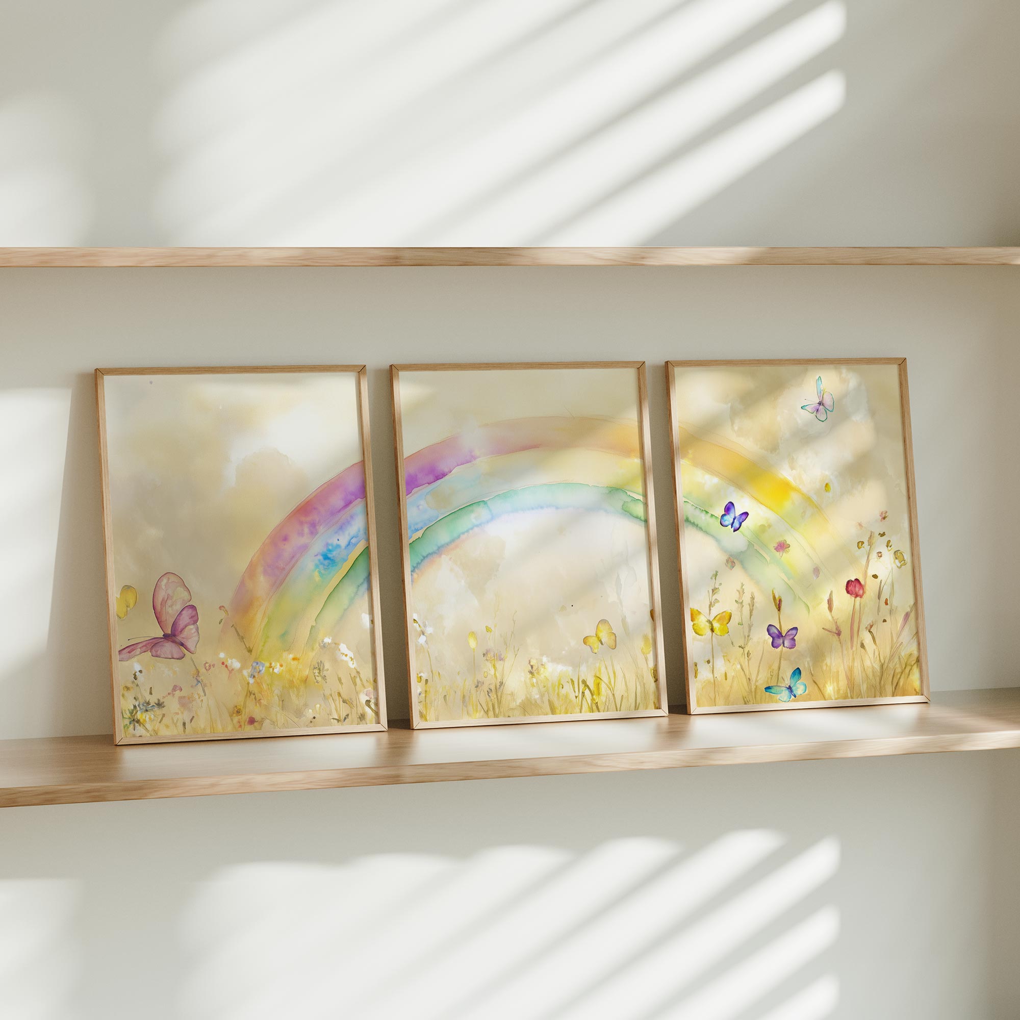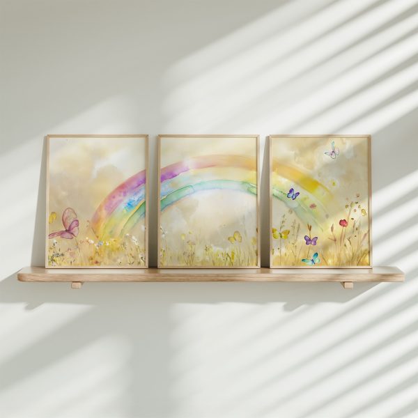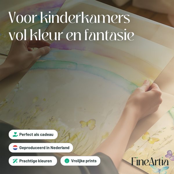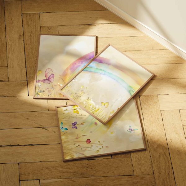 Vrolijk Watercolor Landschap met Regenboog en Vlinders