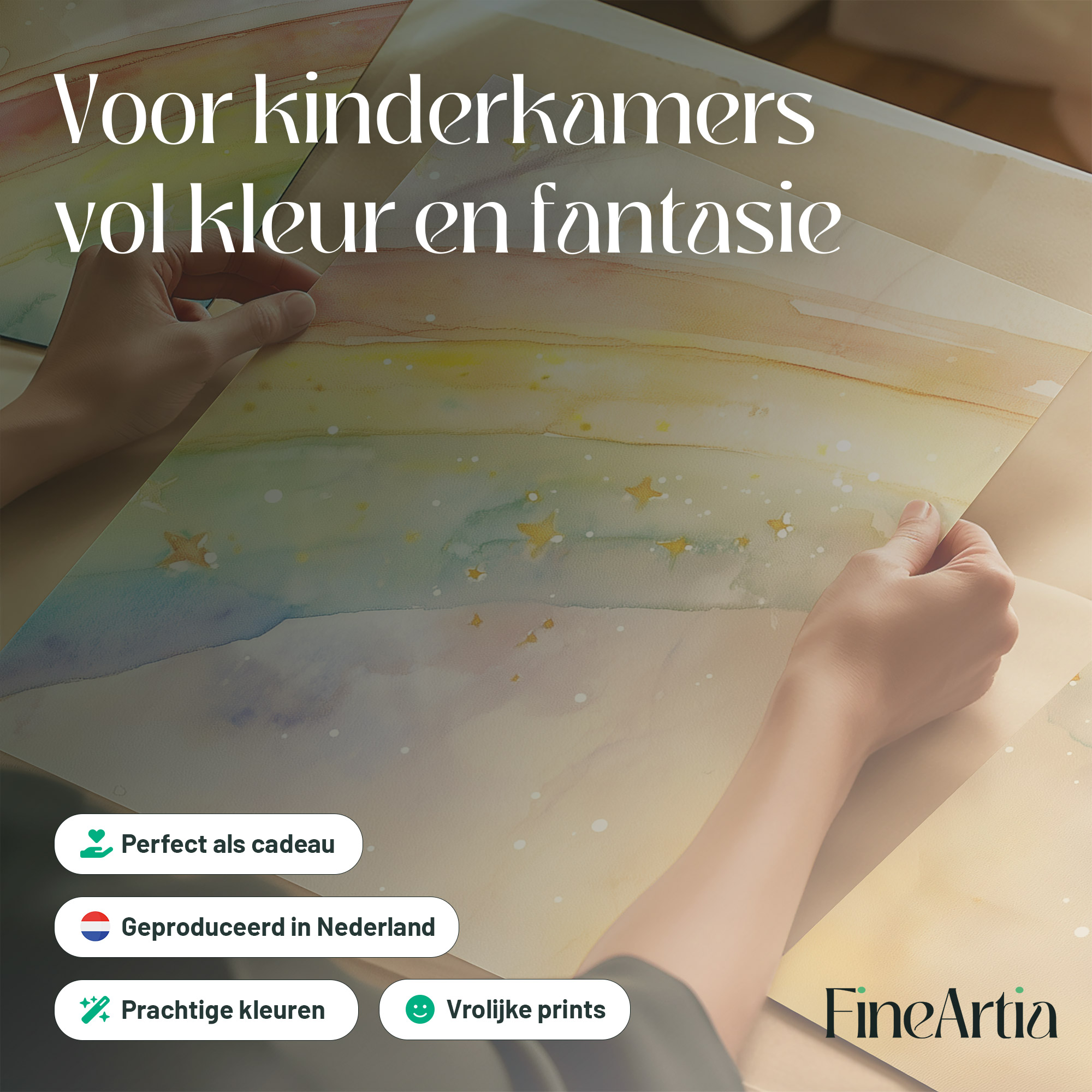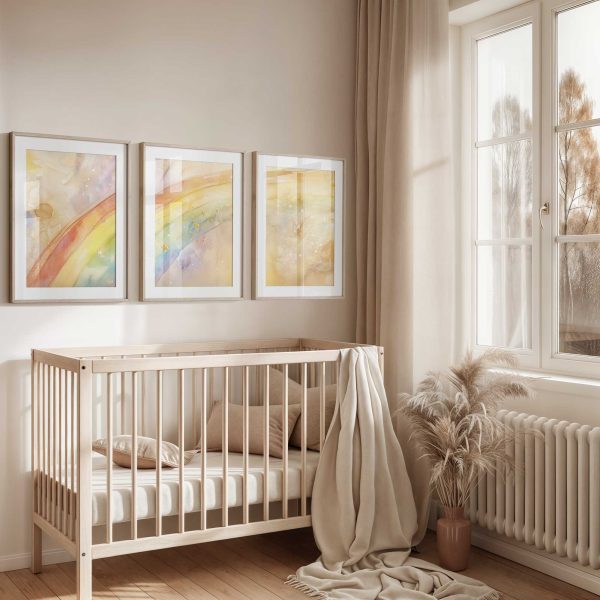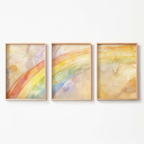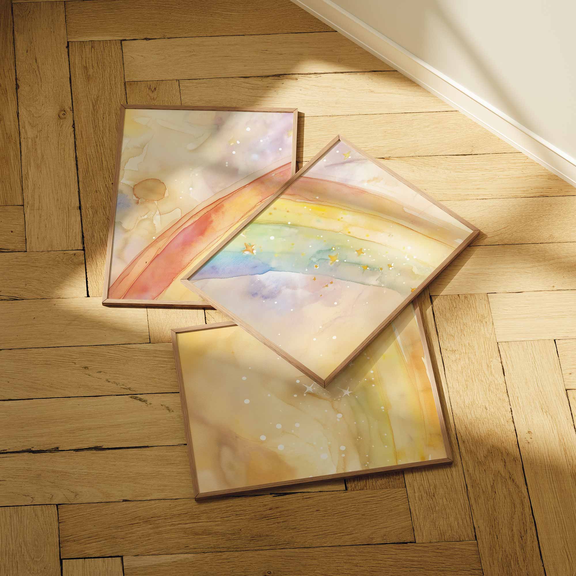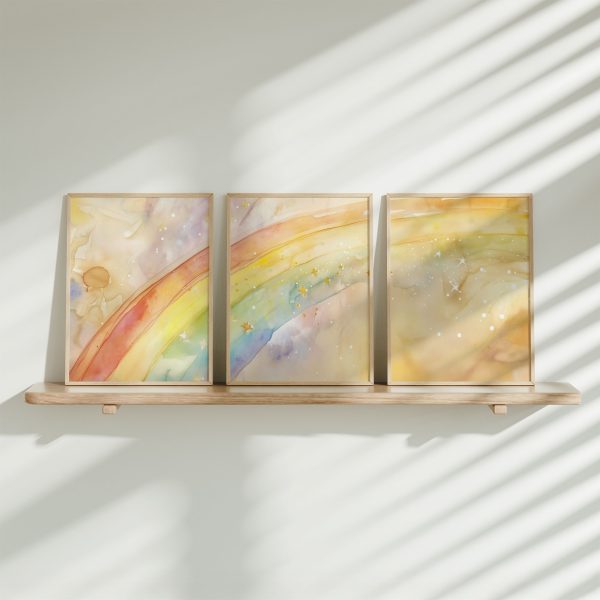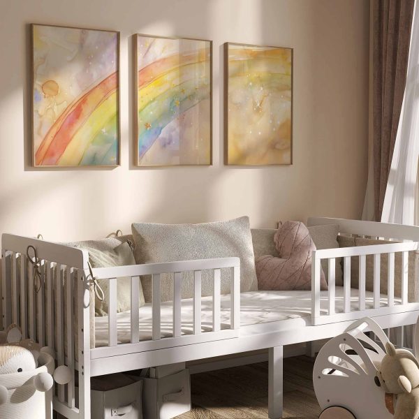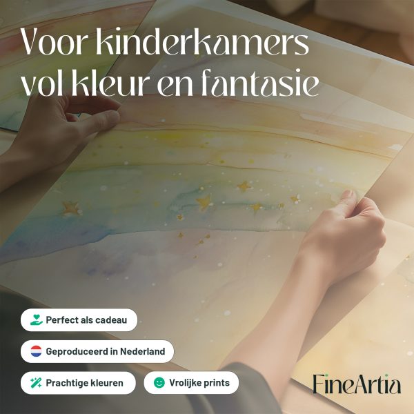 Terug naar collectie Posters Vrolijk Watercolor Regenboog met Sterren – Dromerig Sfeerbeeld