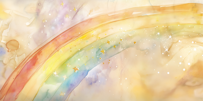 Vrolijk Watercolor Regenboog met Sterren – Dromerig Sfeerbeeld