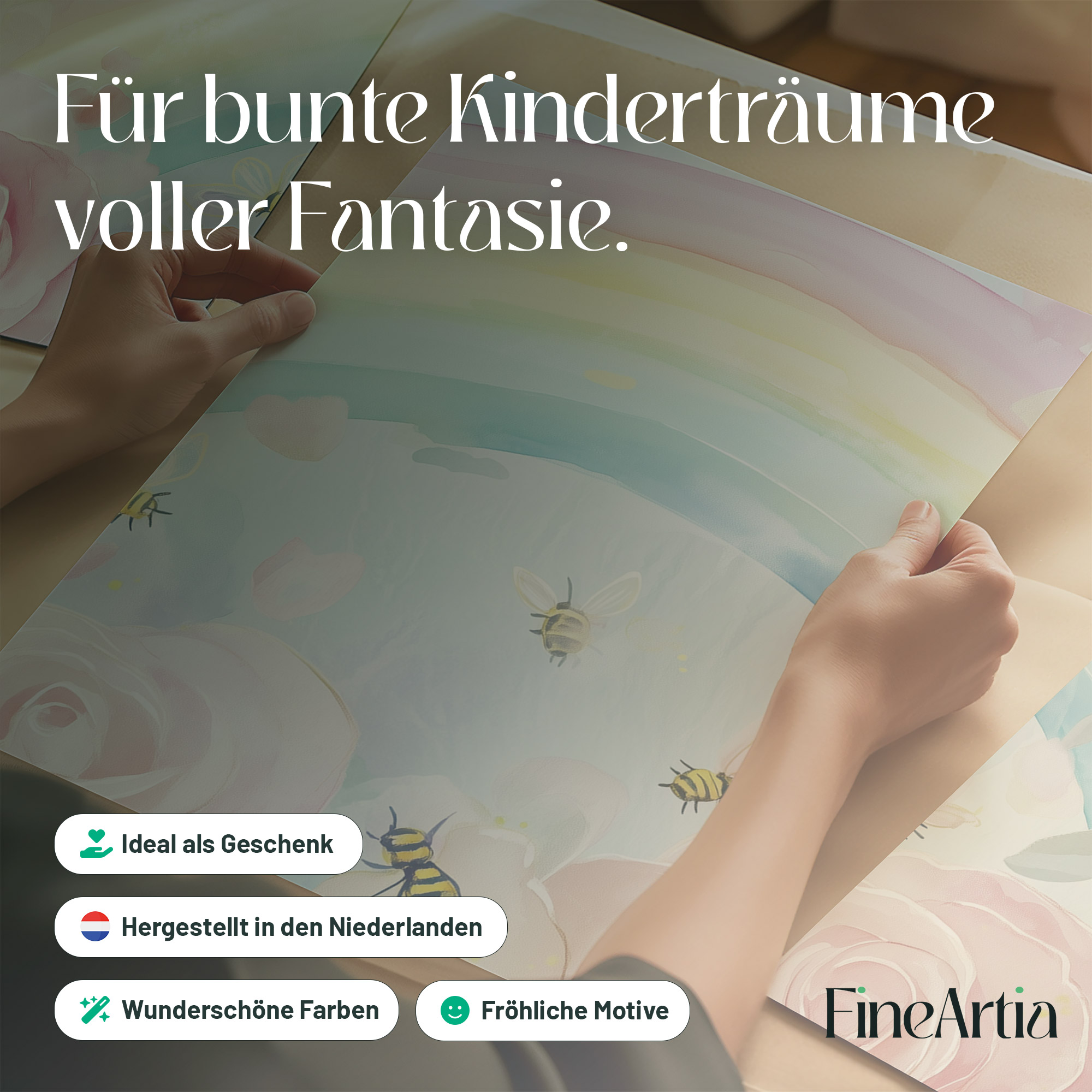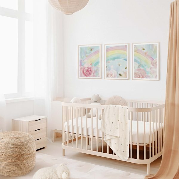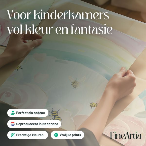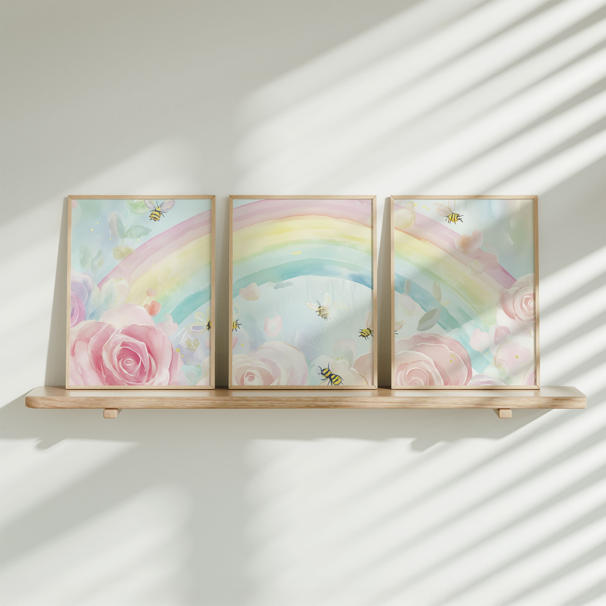 Vrolijke regenboog met rozen en bijtjes