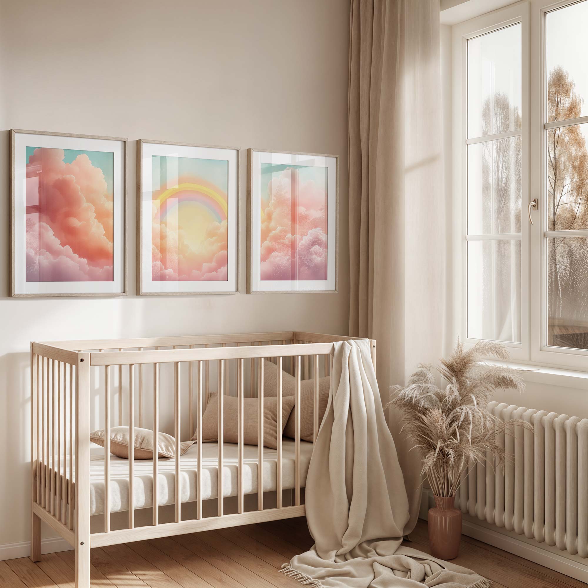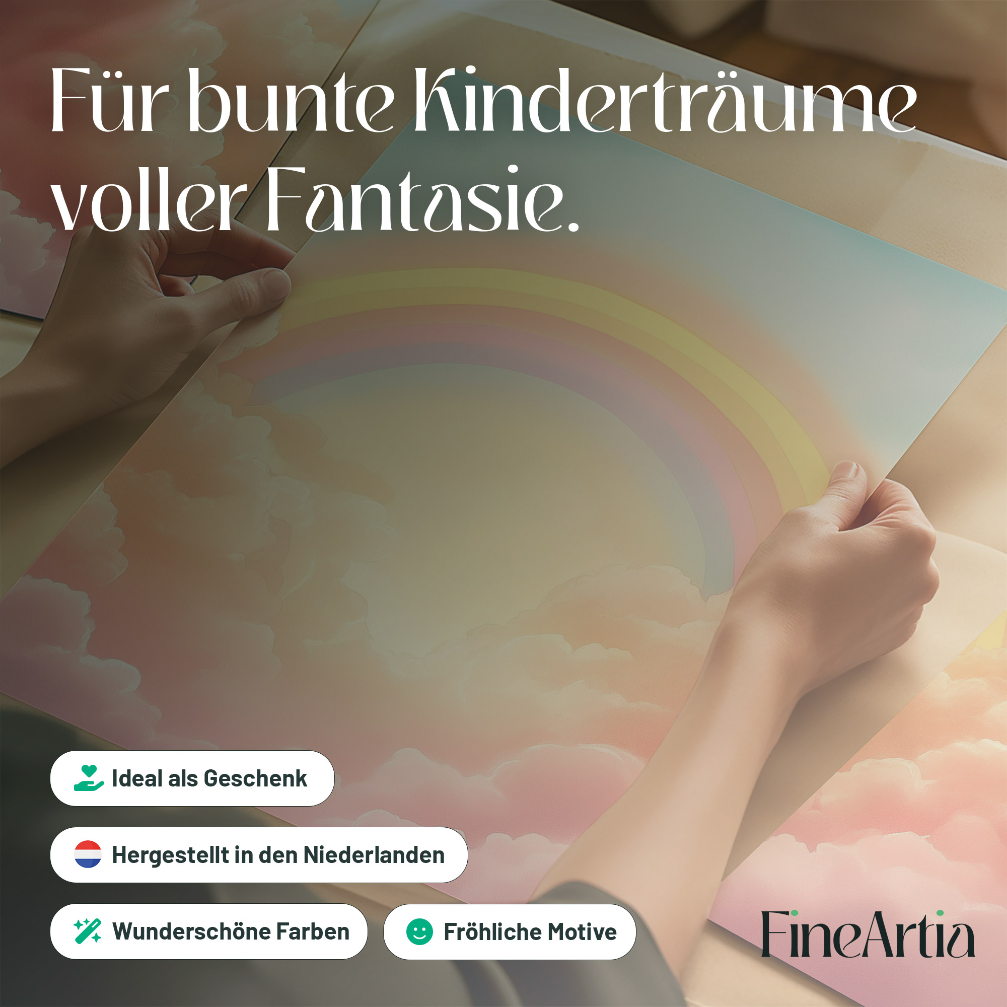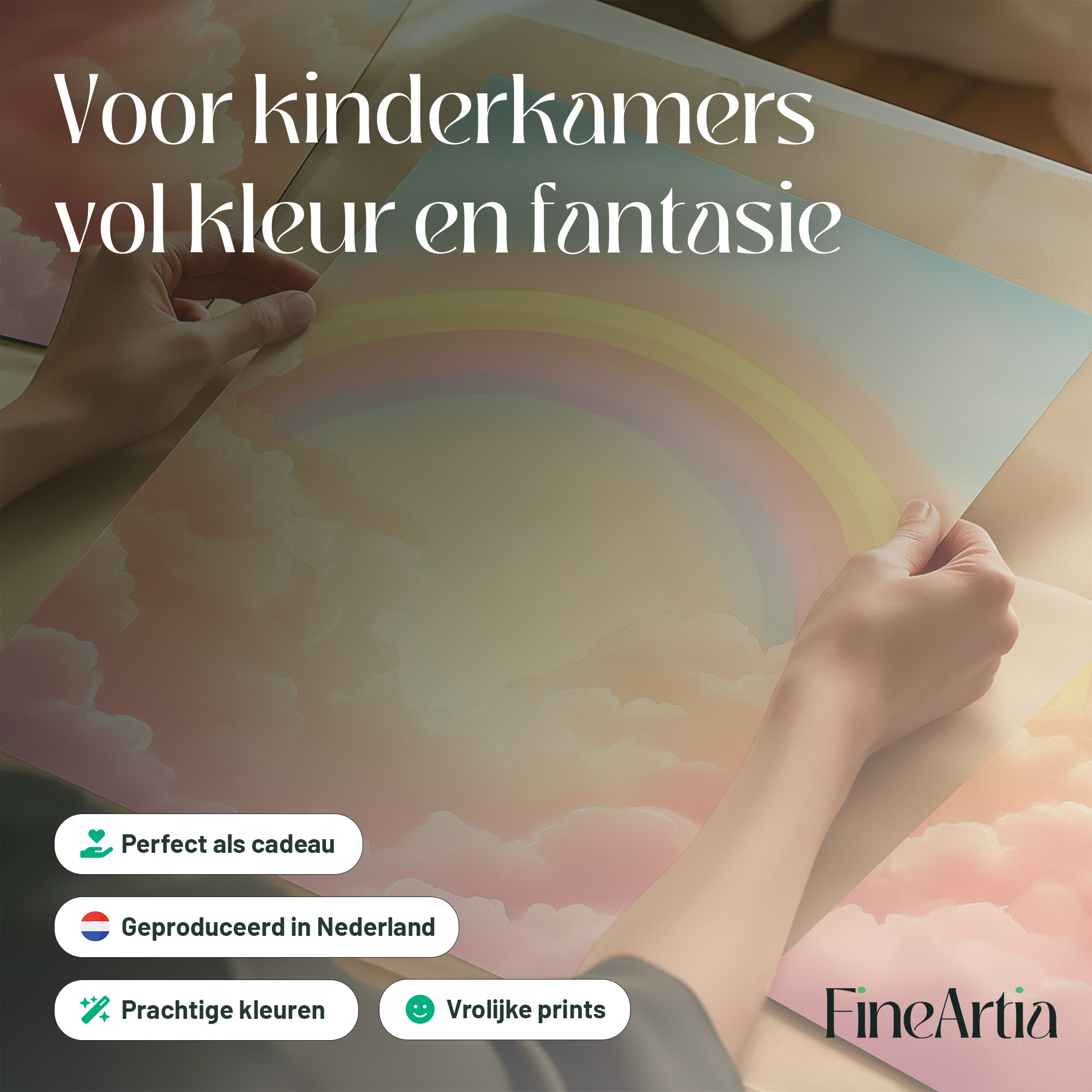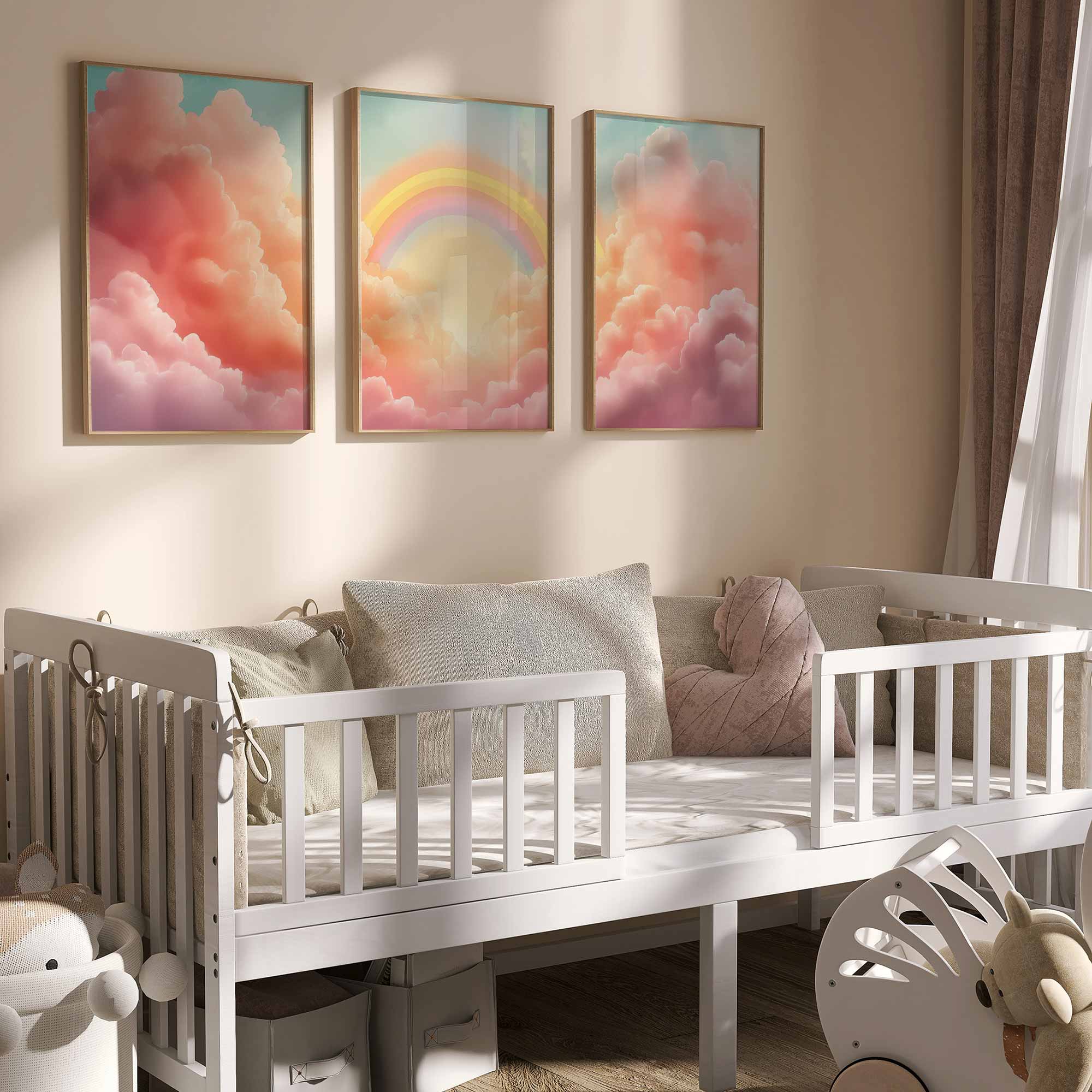 Vrolijke Regenboog met Zonnestralen en Wolken