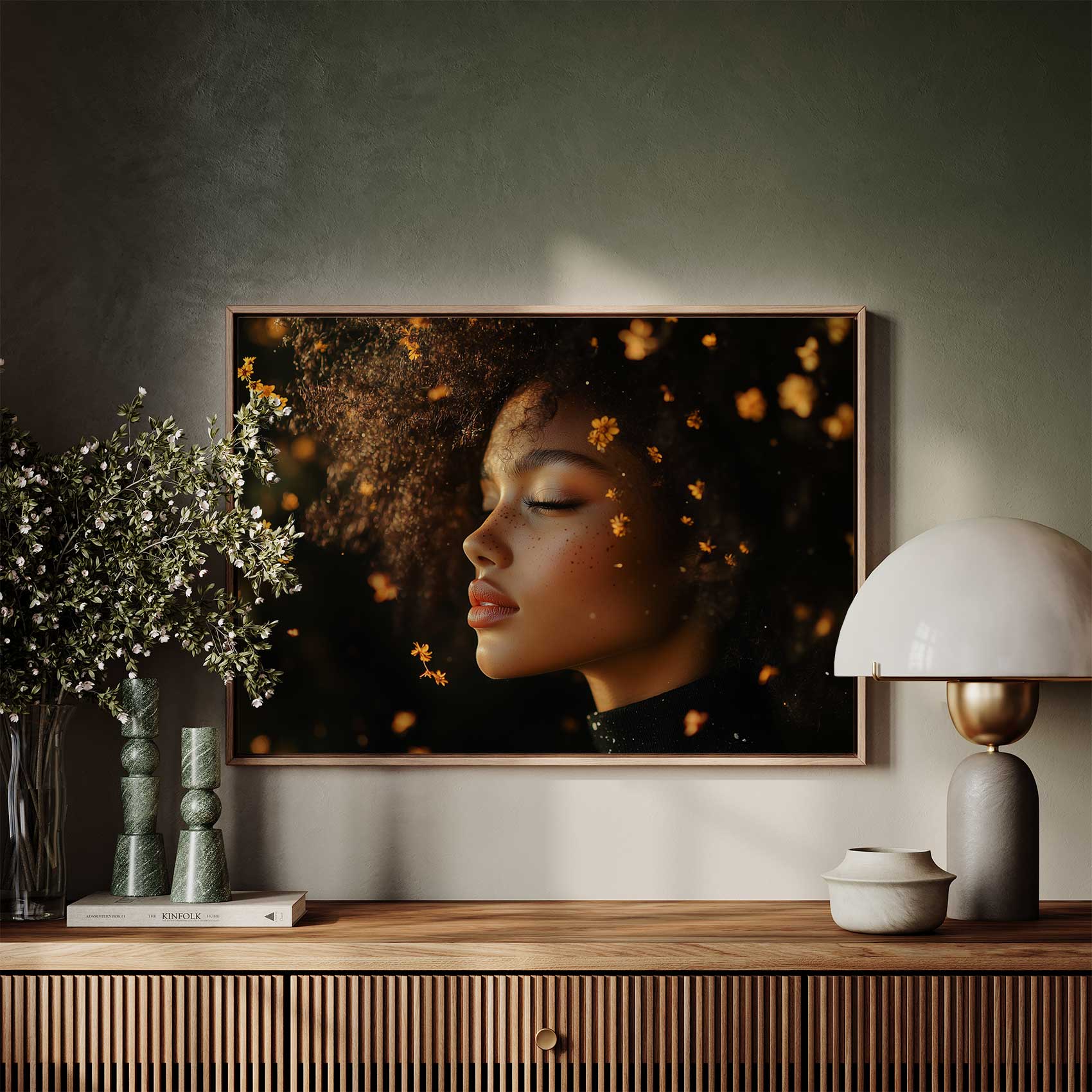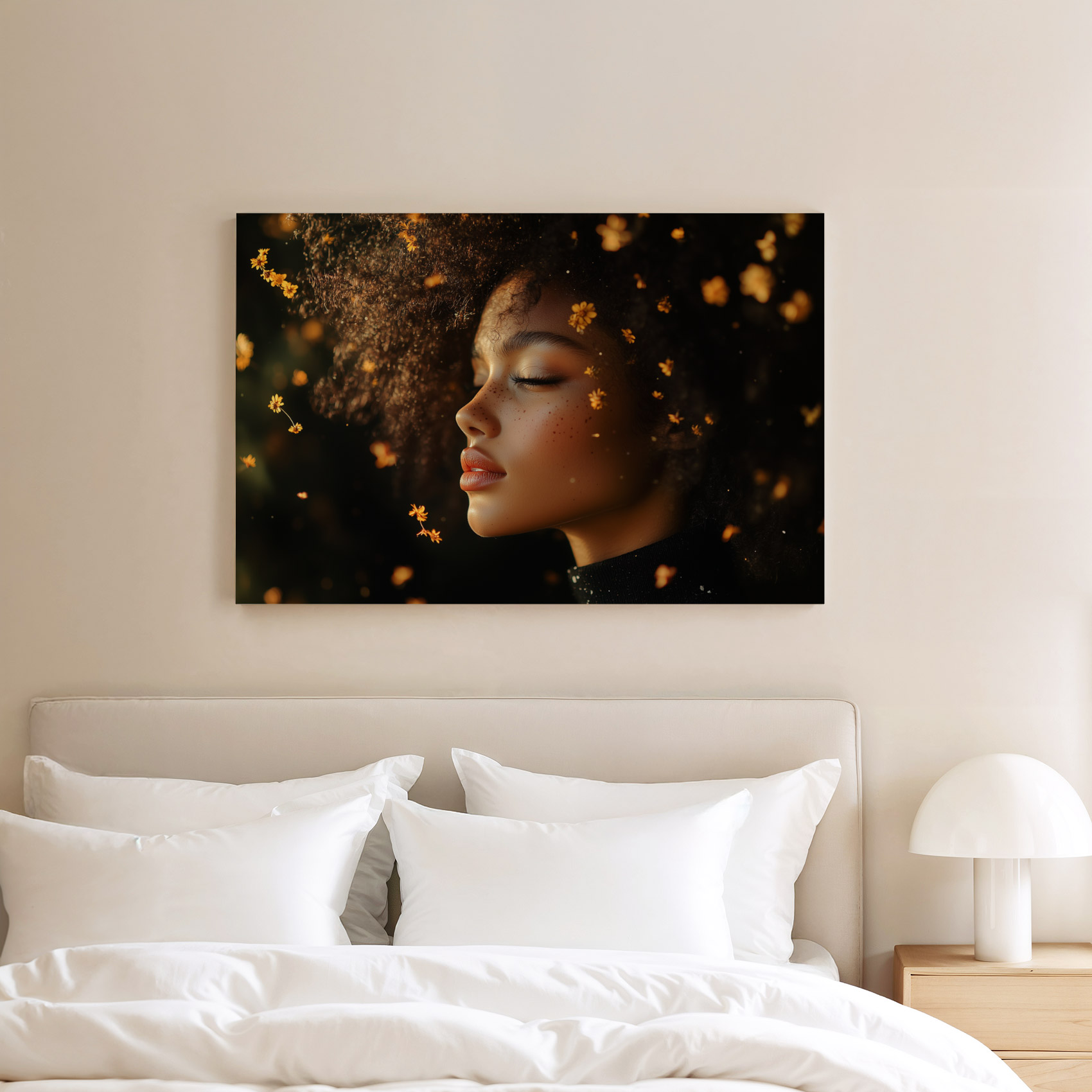 Vrouw in gele bloemenzee