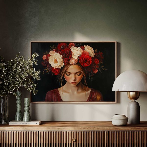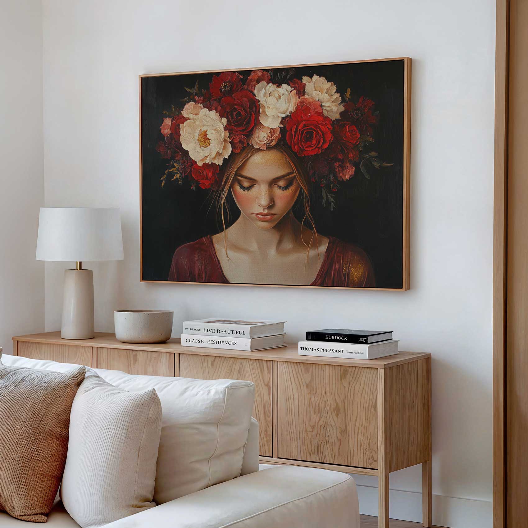Terug naar collectie Canvas Vrouw met bloemenkroon