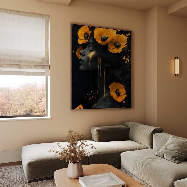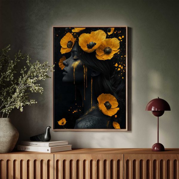 Vrouw met gele bloemen hoofdband