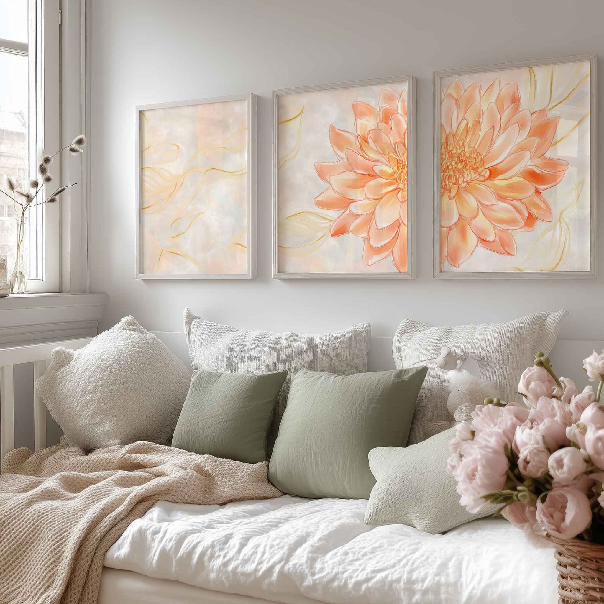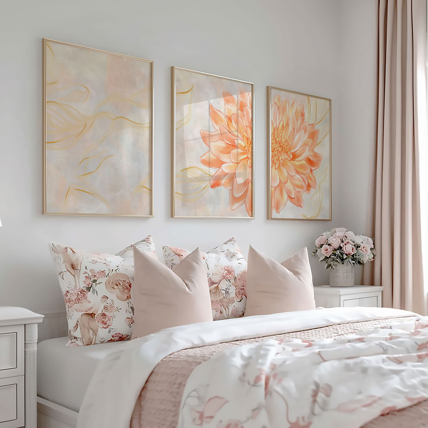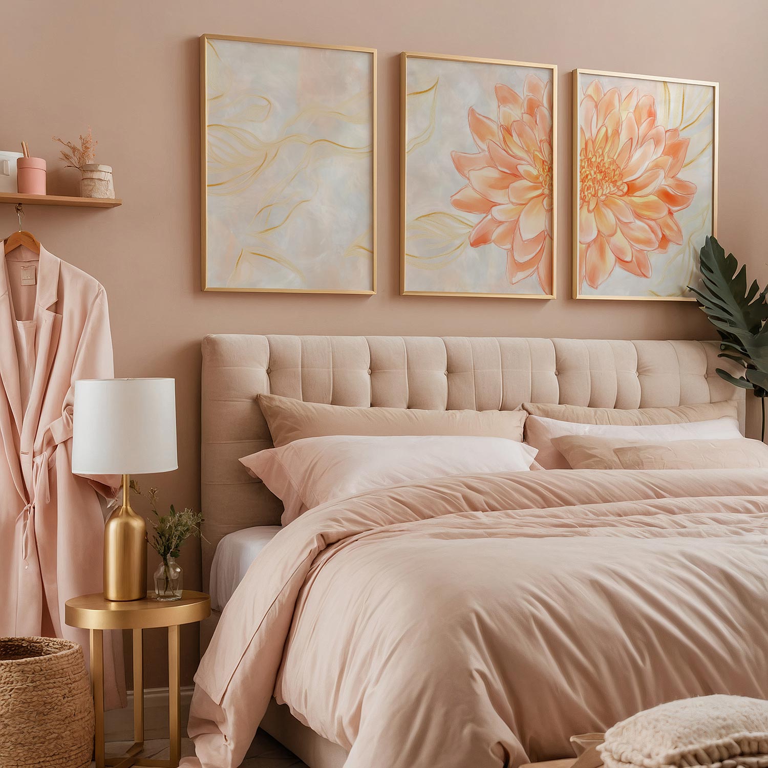 Vurige Oranje Bloem op Zachtroze Achtergrond – Stijlvolle Wanddecoratie