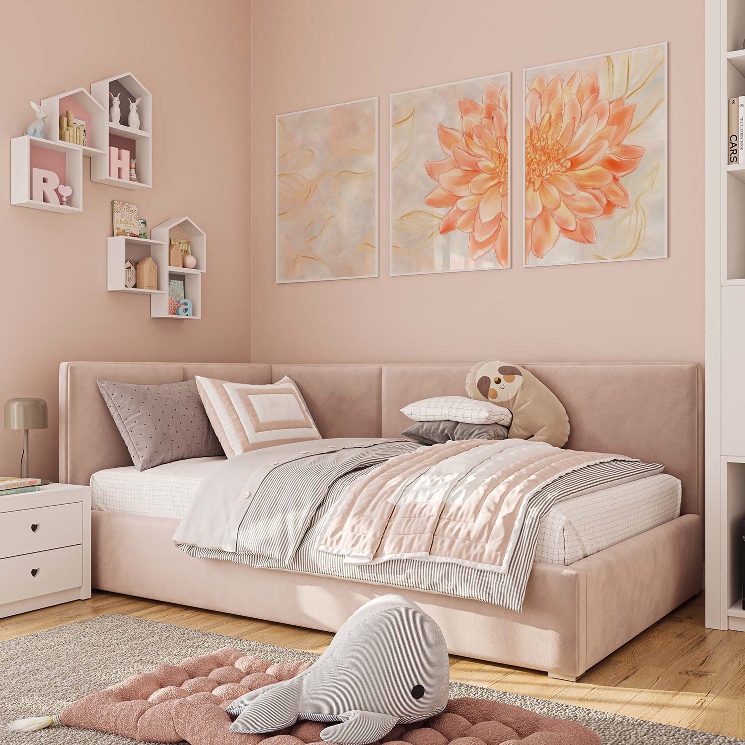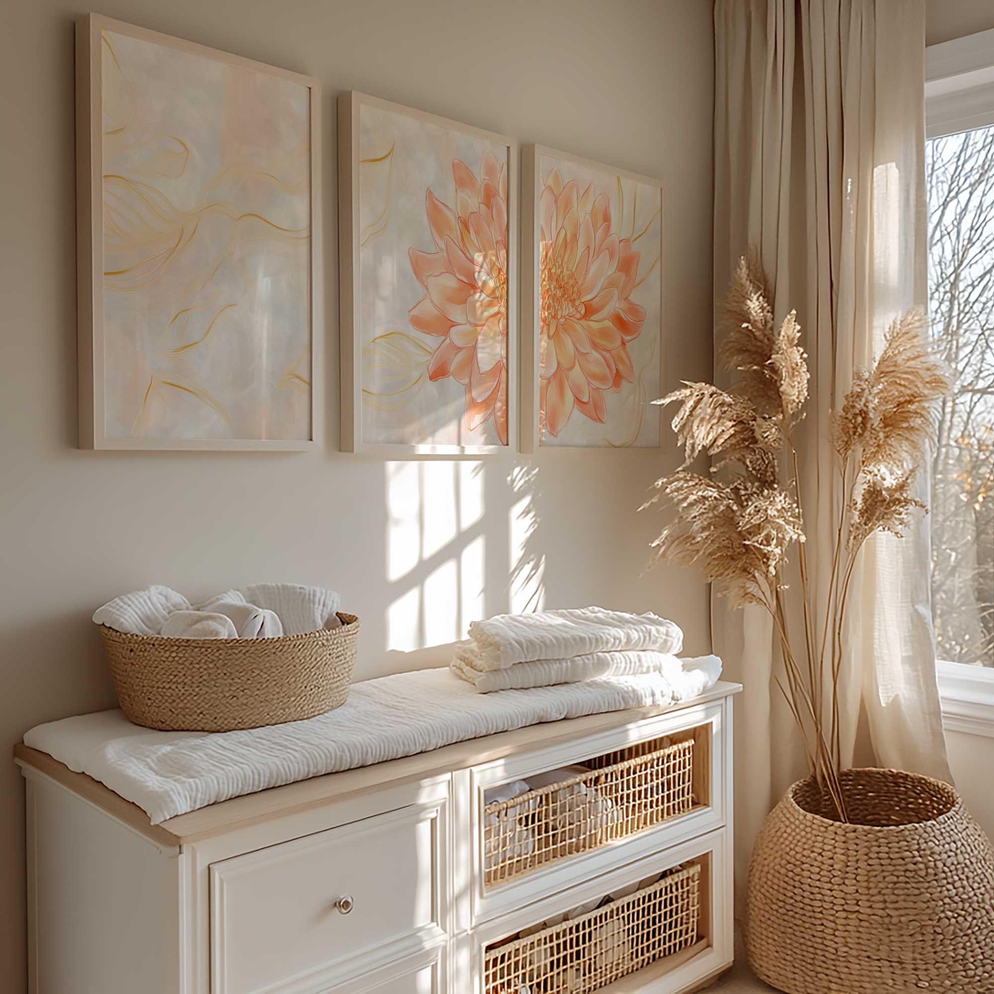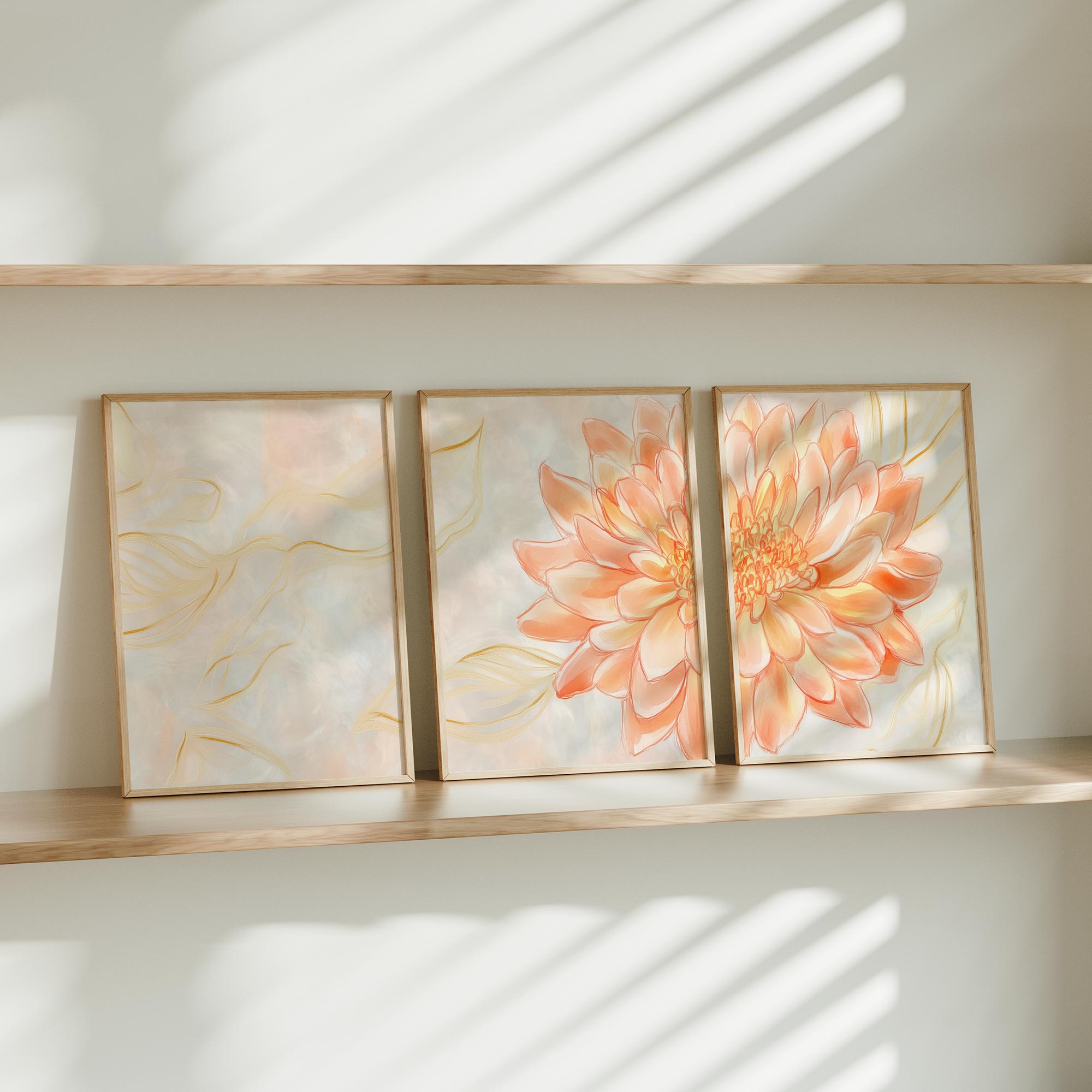 Vurige Oranje Bloem op Zachtroze Achtergrond – Stijlvolle Wanddecoratie