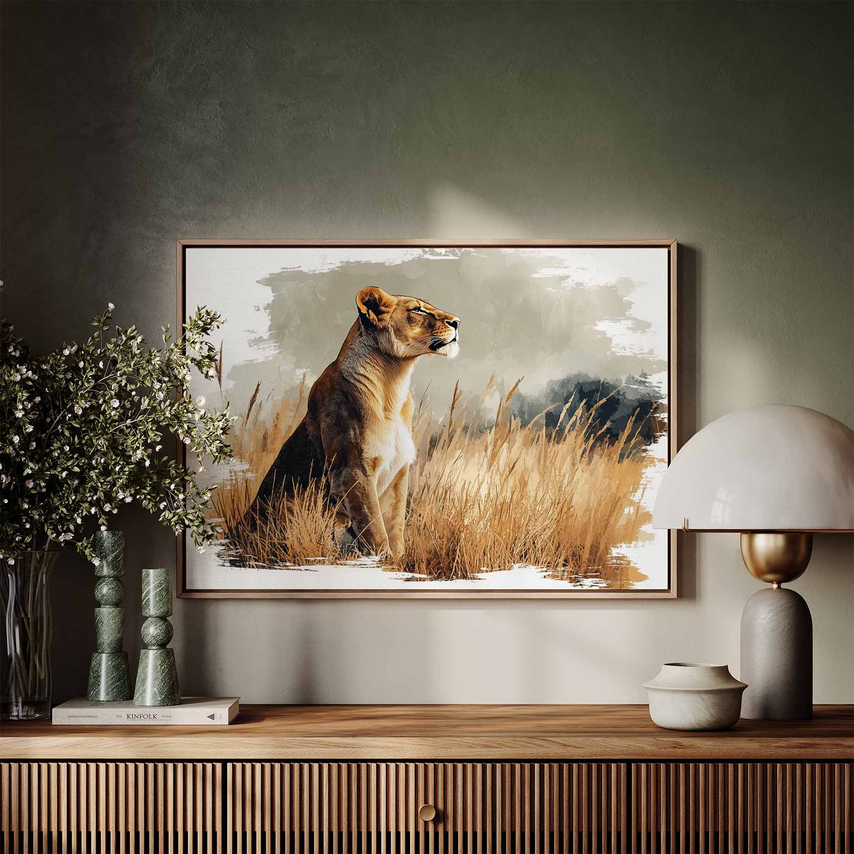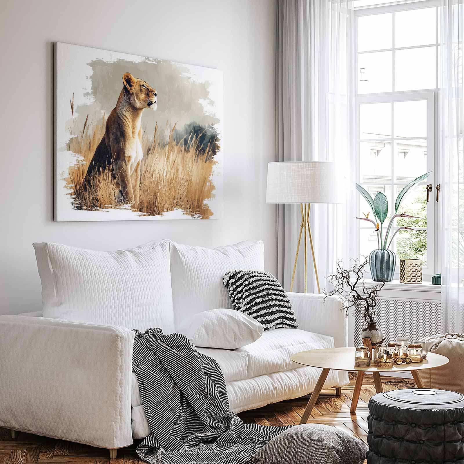 Watercolor leeuwin in gras