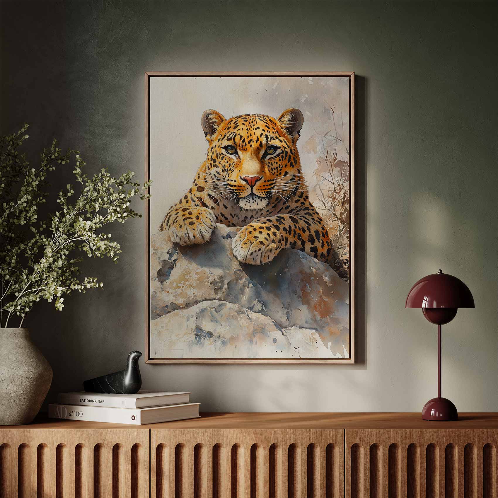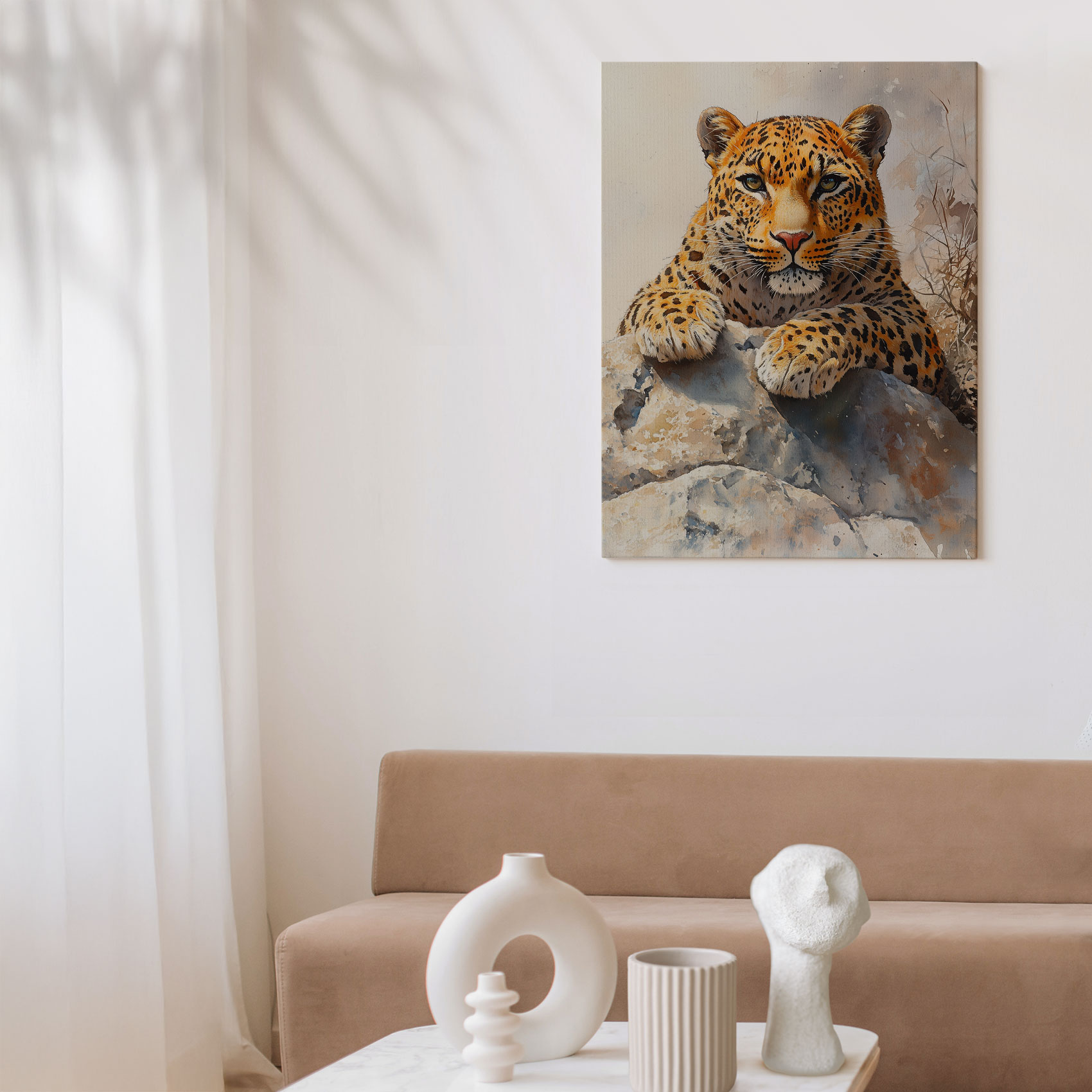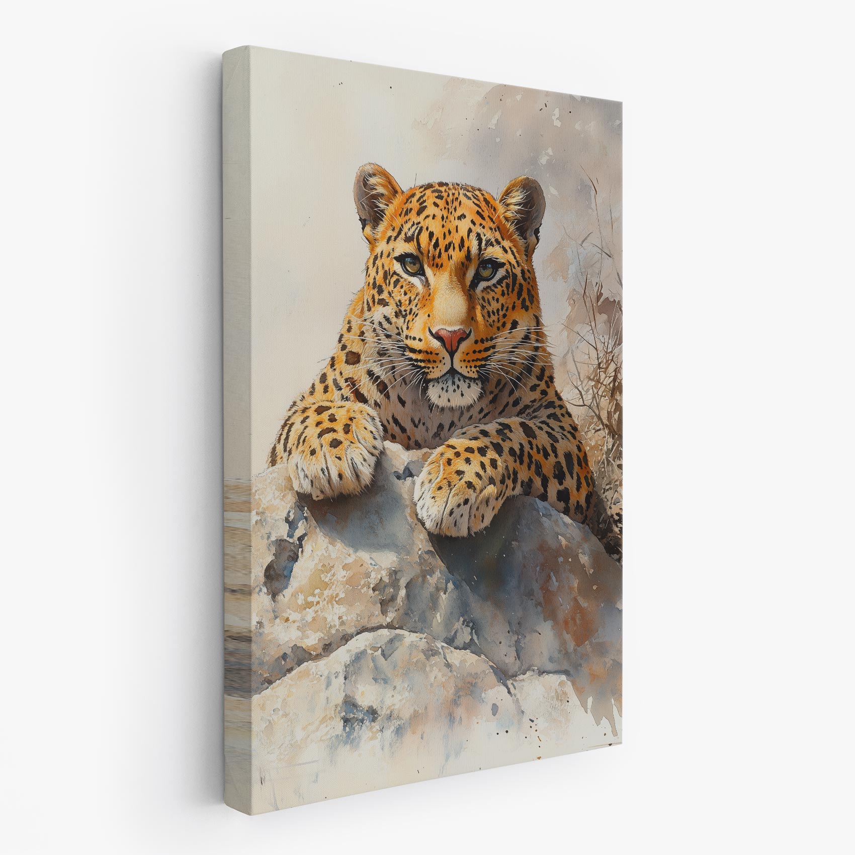 Watercolor luipaard op rots