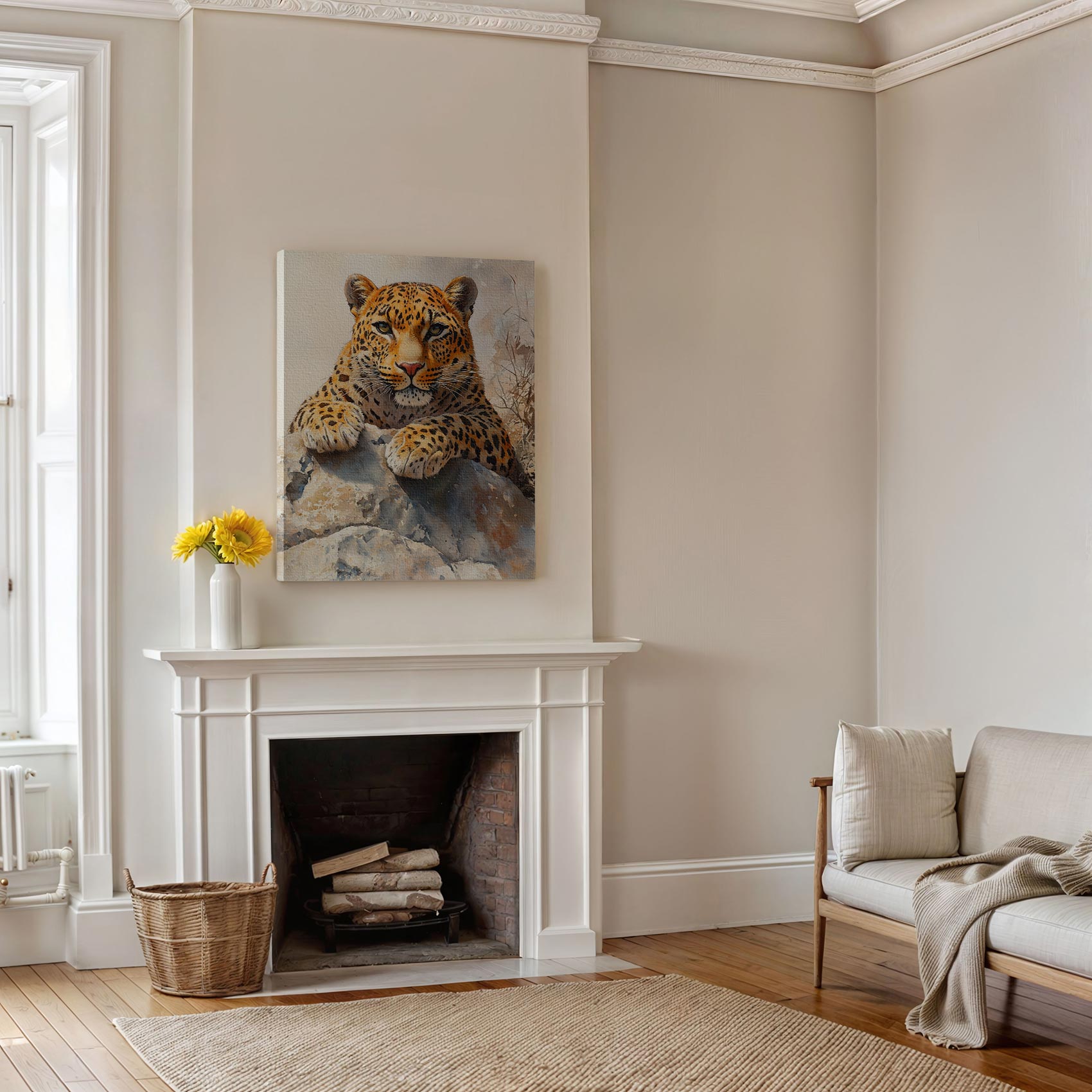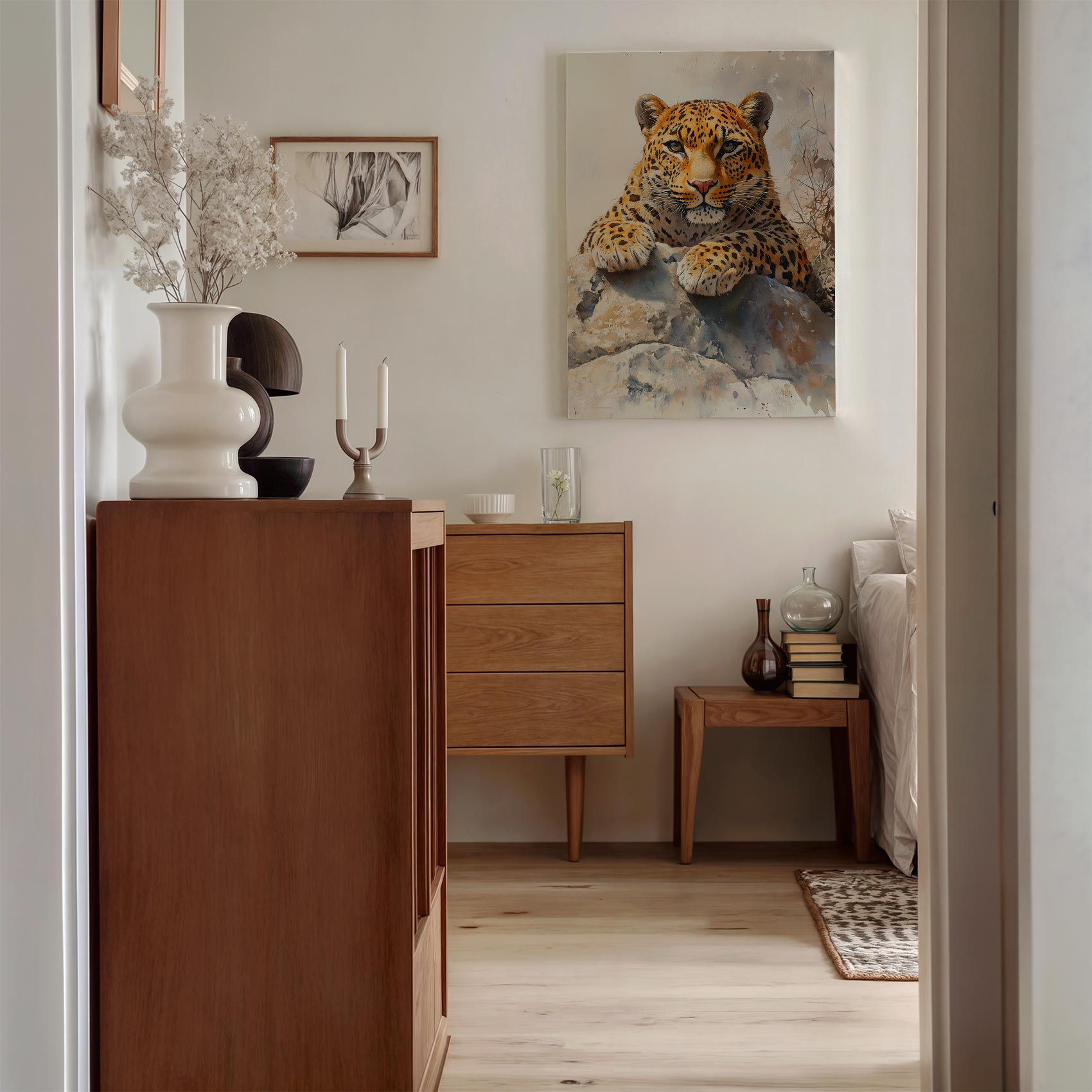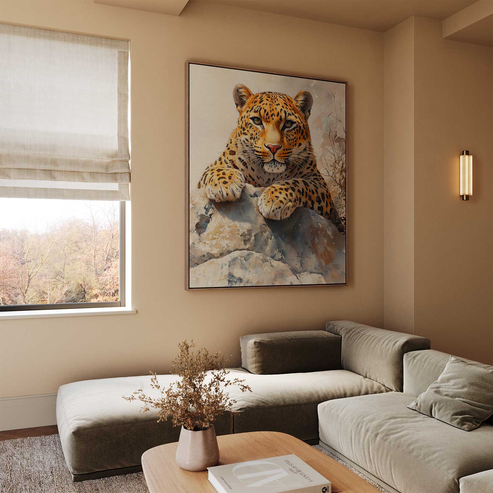 Watercolor luipaard op rots