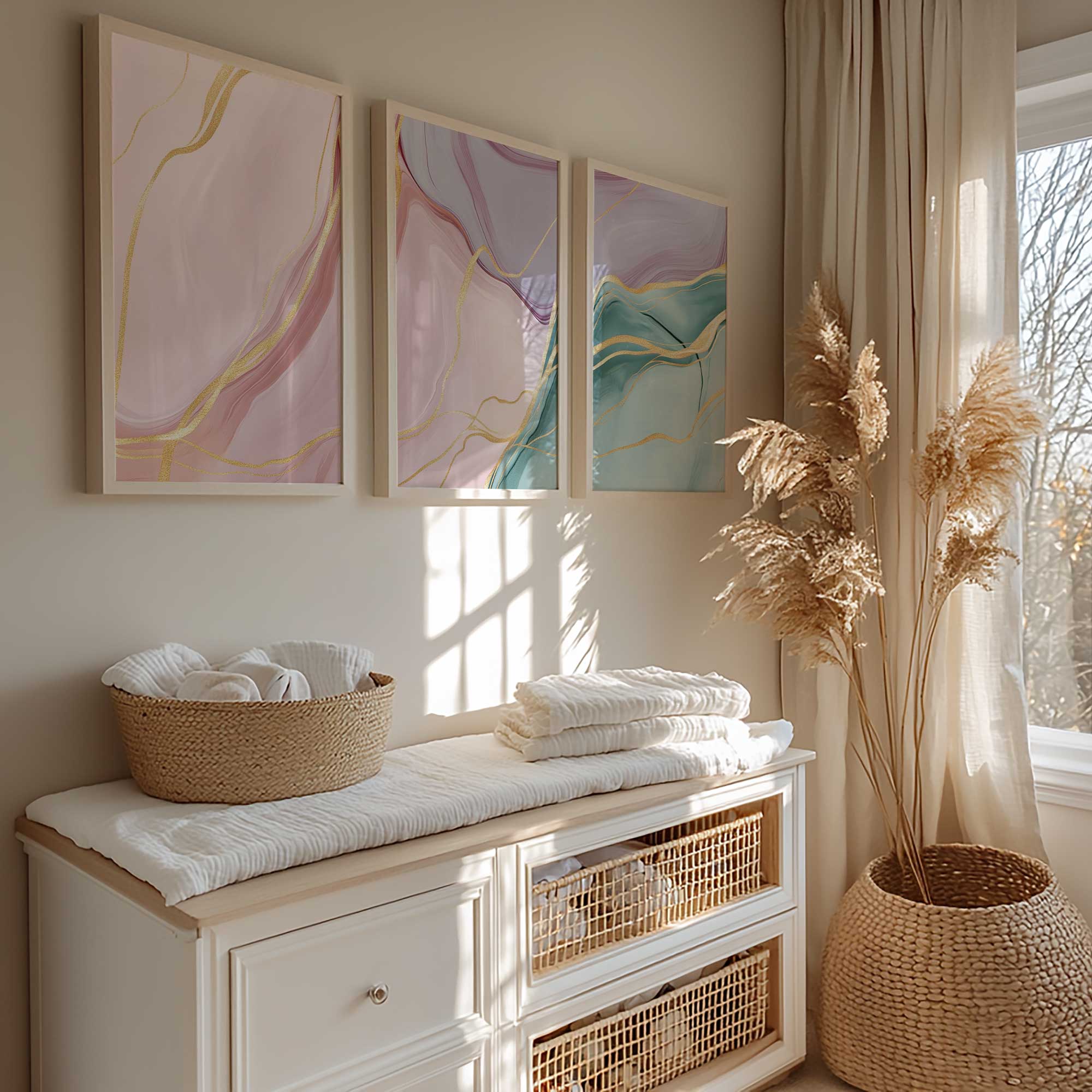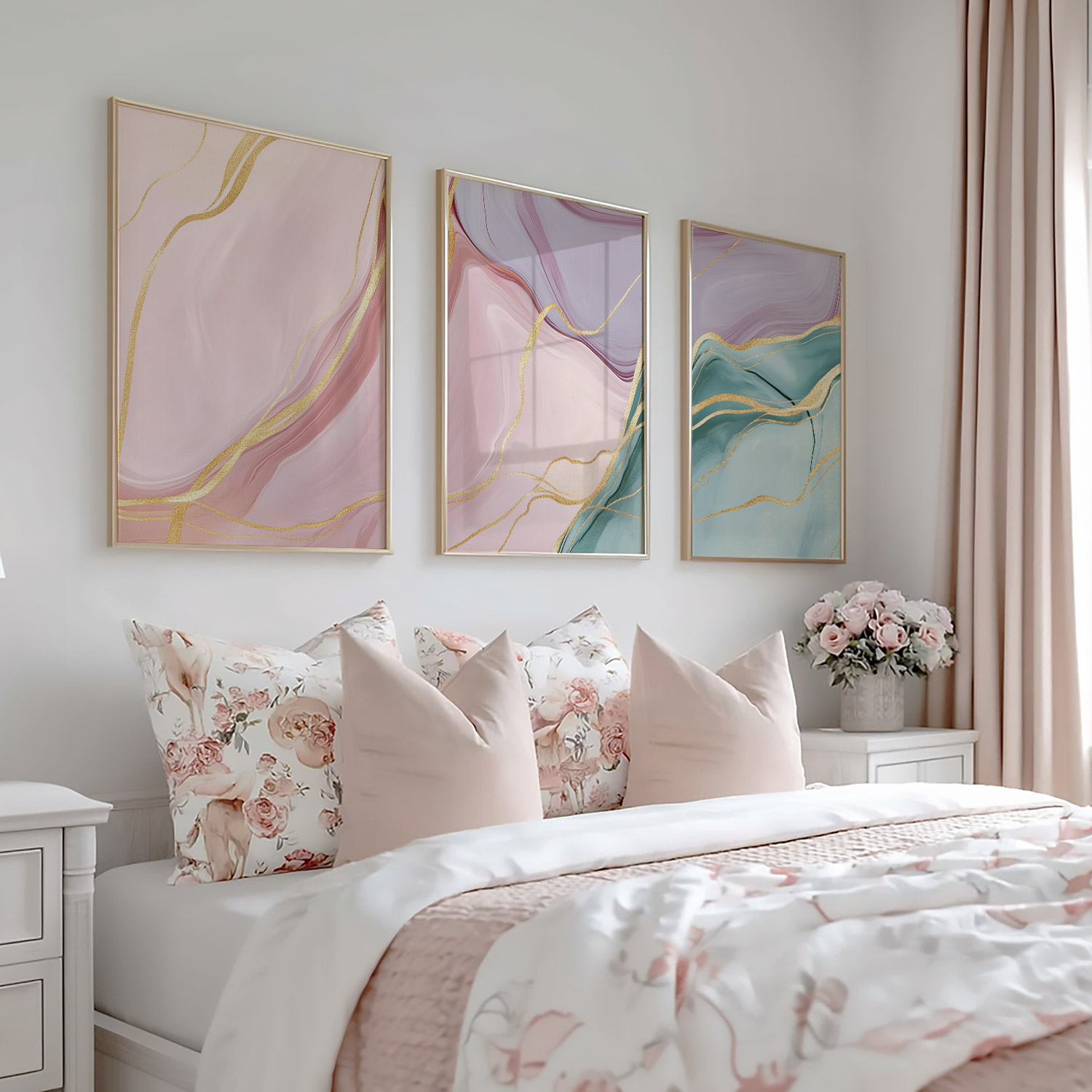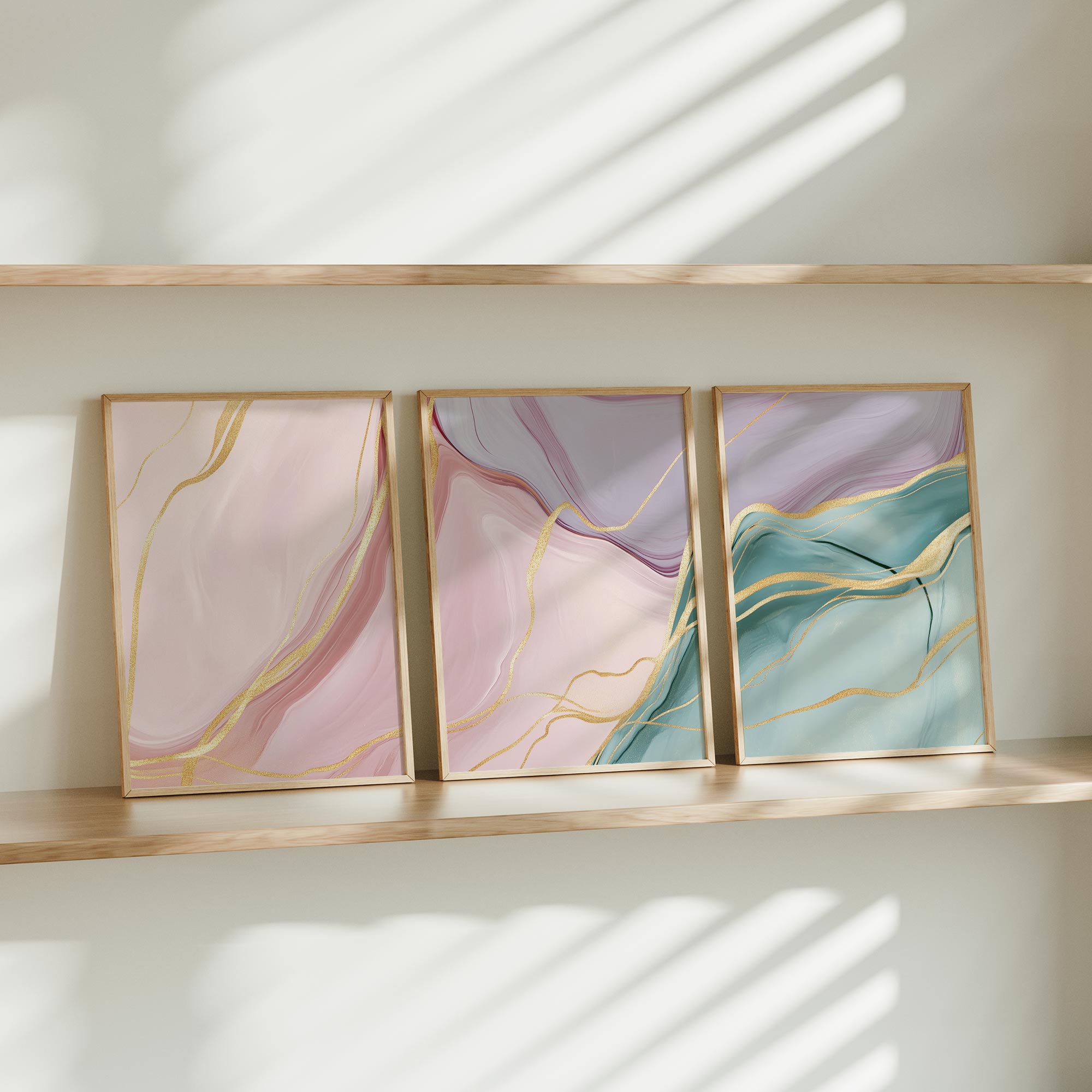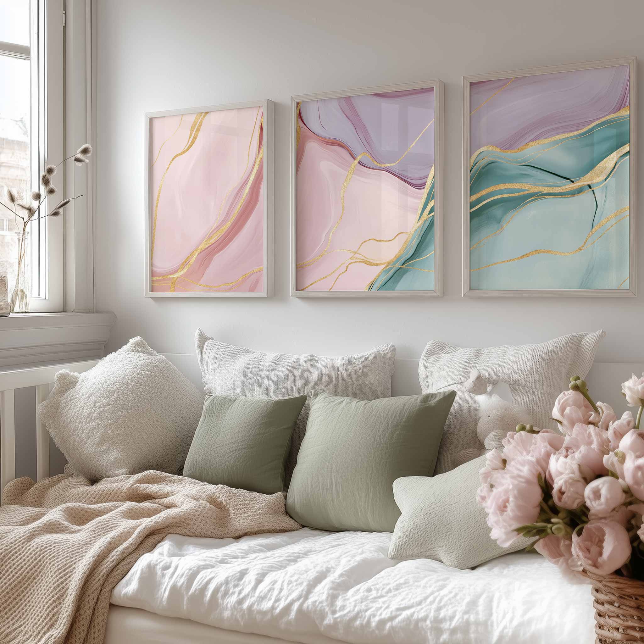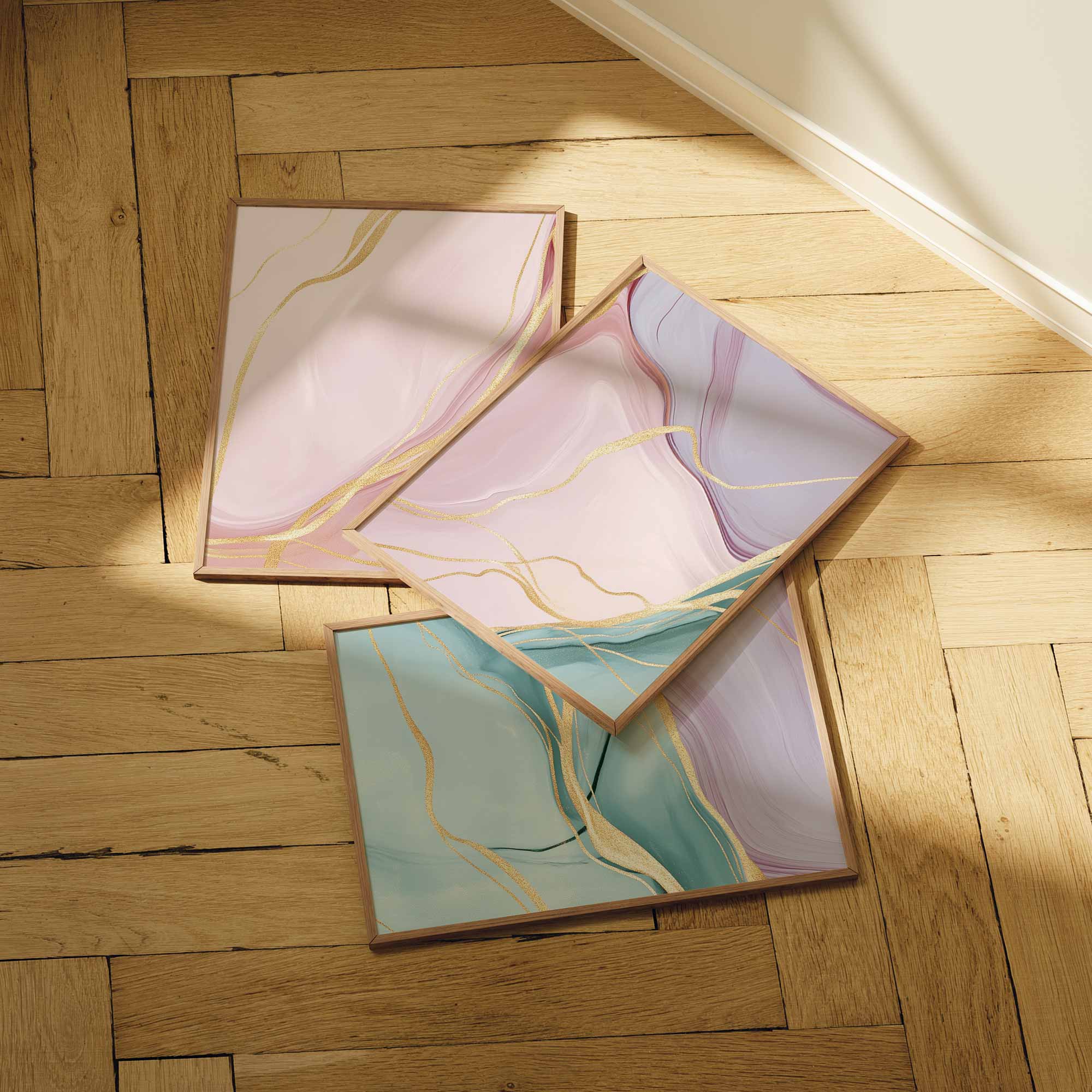 Terug naar collectie Posters Whimsical Marble Glamour: Roze, Paars & Blauw Abstract Design