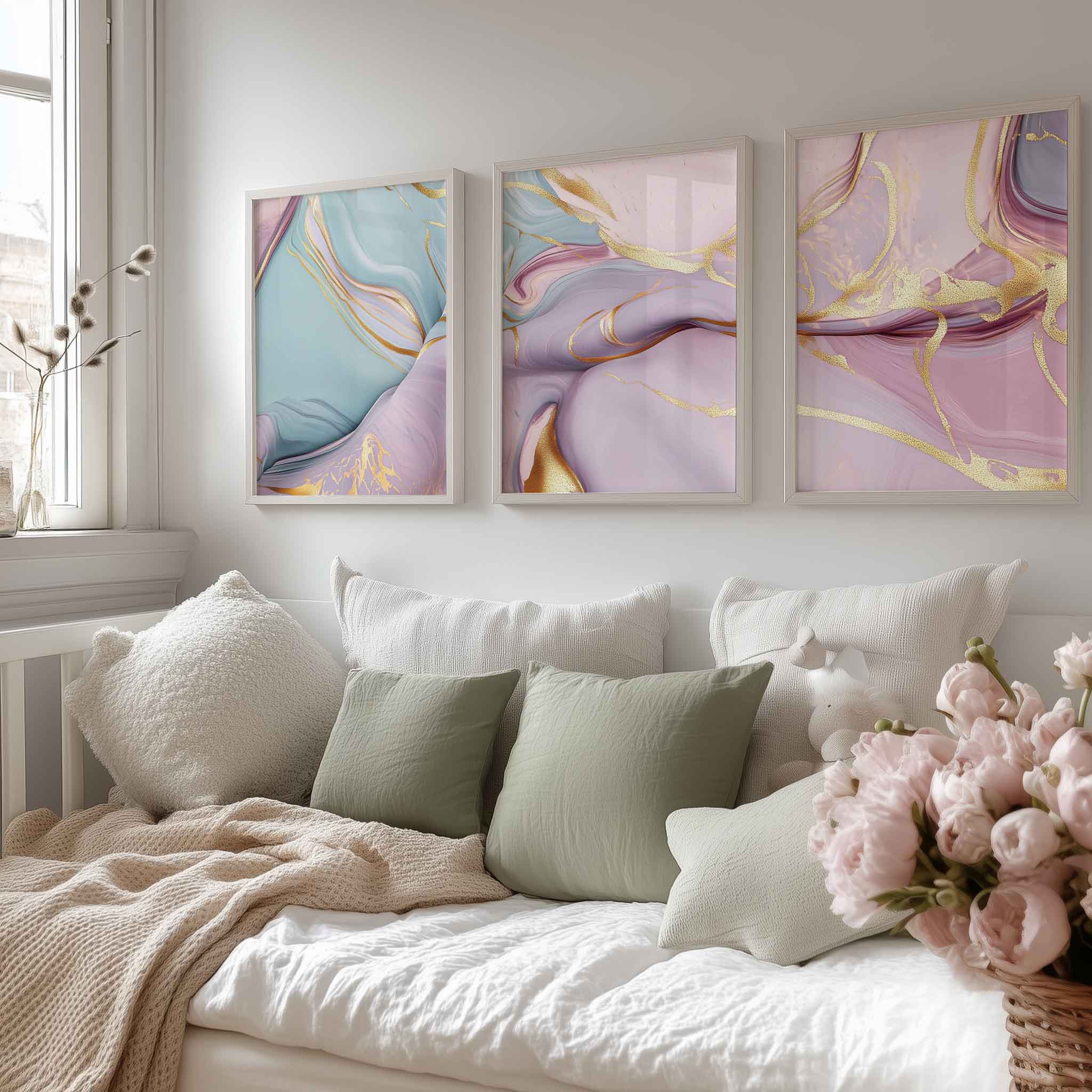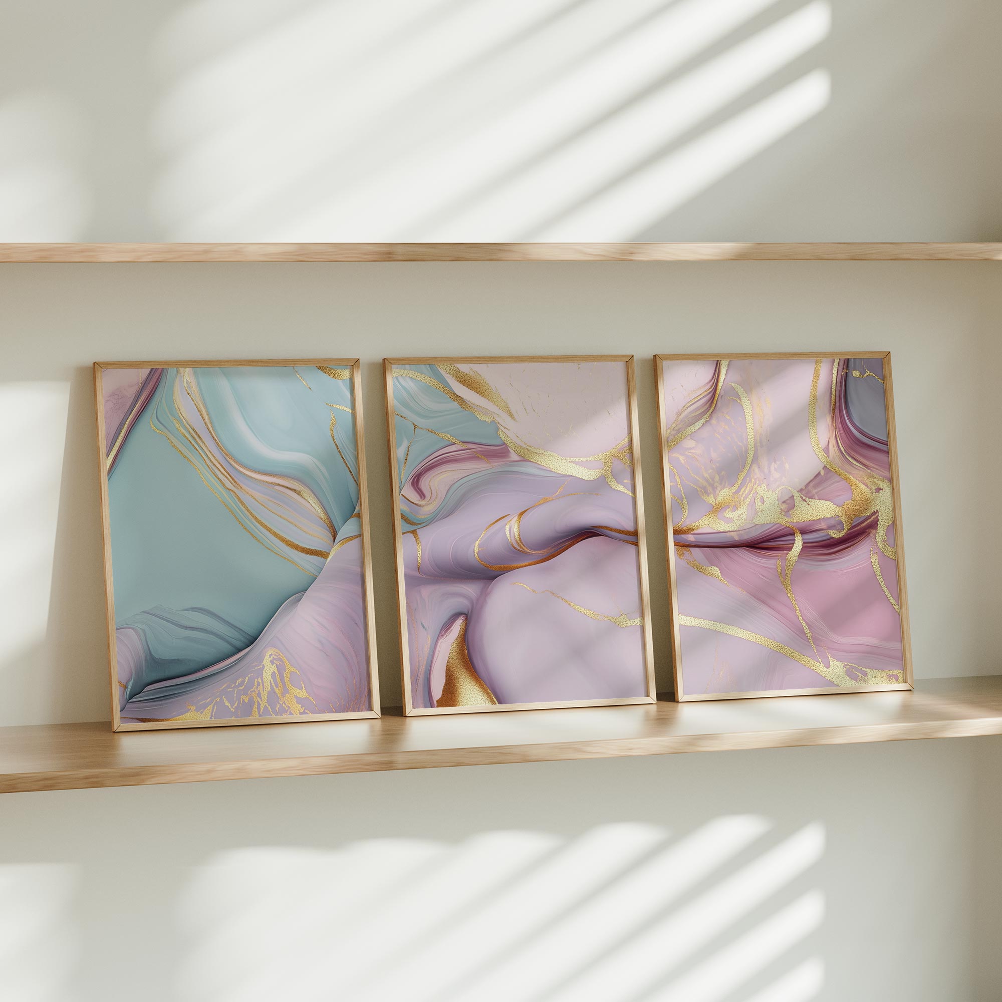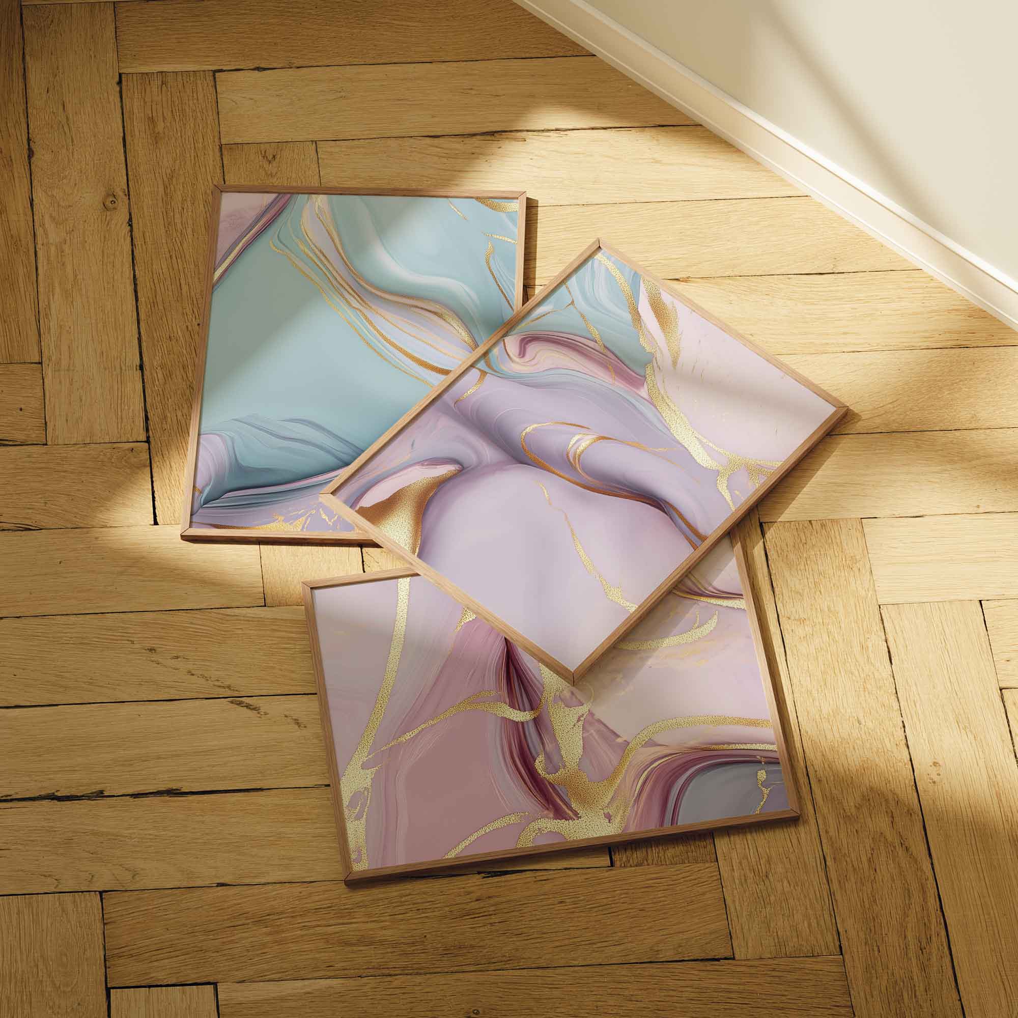 Whimsical Marble Swirls in Blauw, Roze en Goud