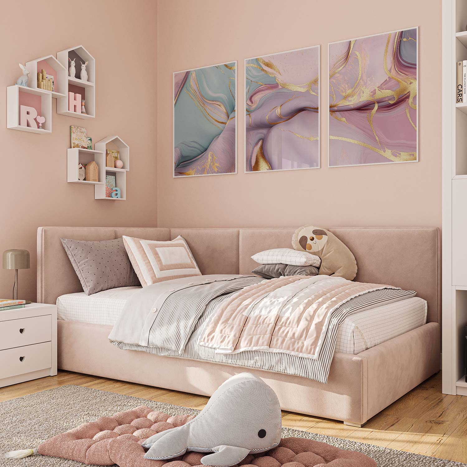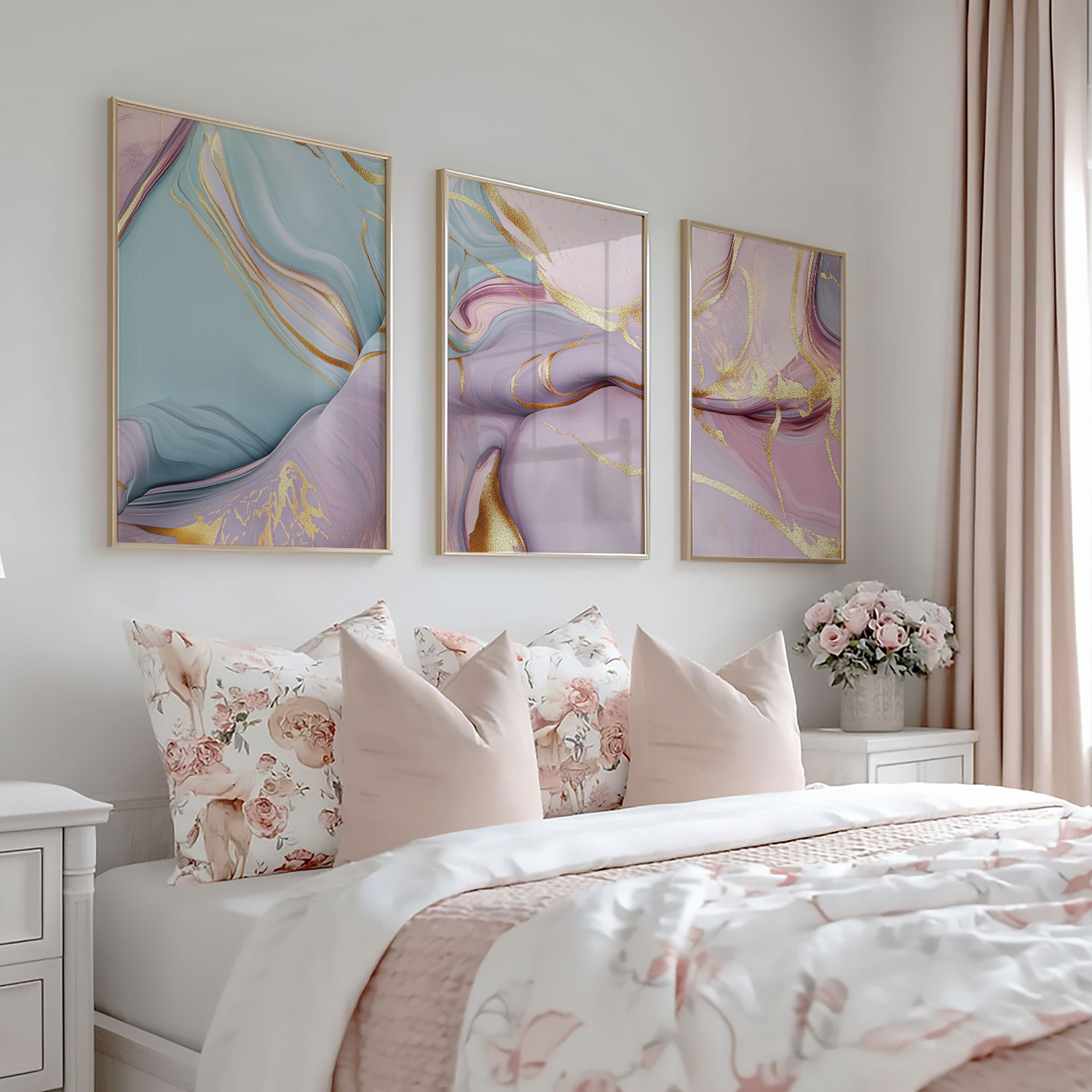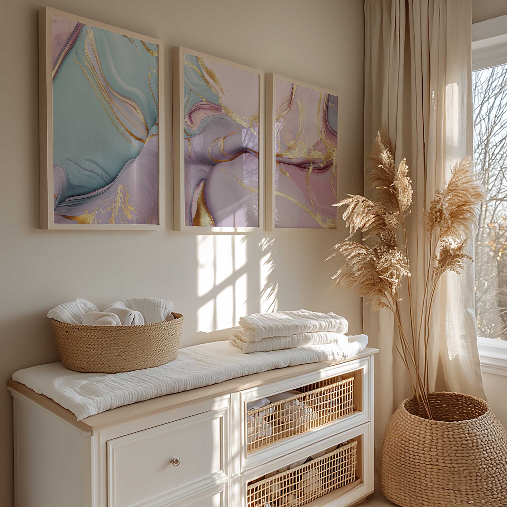 Whimsical Marble Swirls in Blauw, Roze en Goud