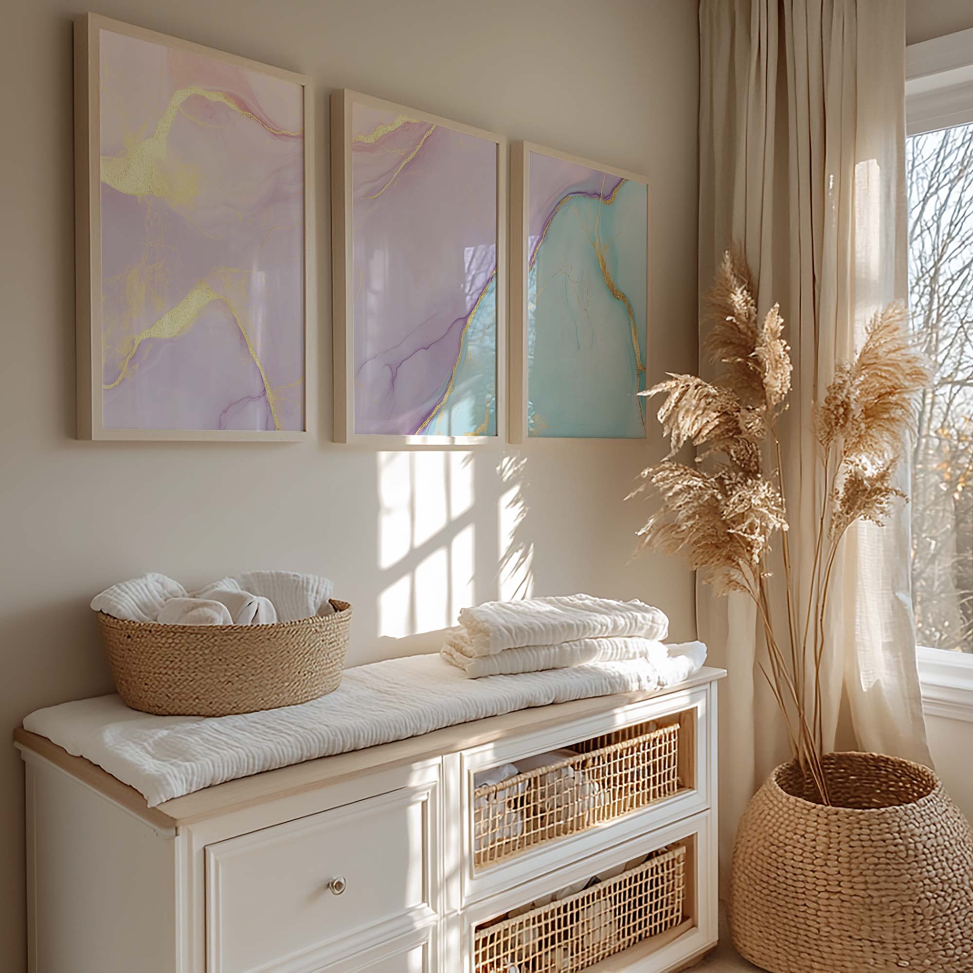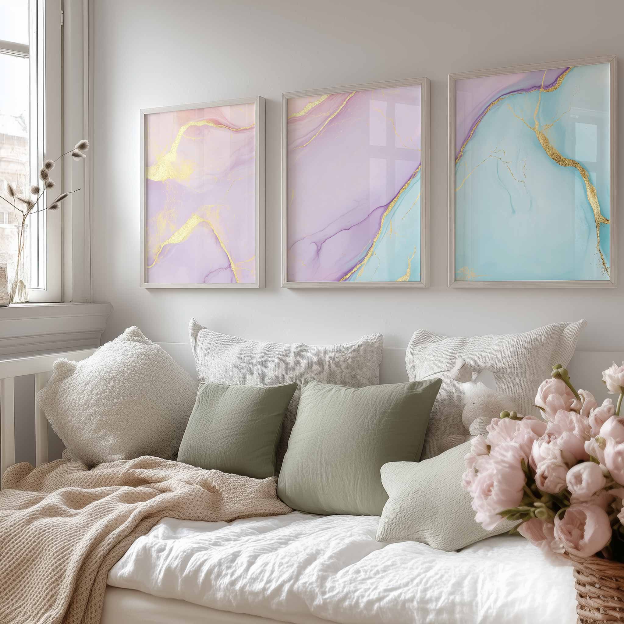 Whimsical Marble Swirls in Roze, Blauw en Goud
