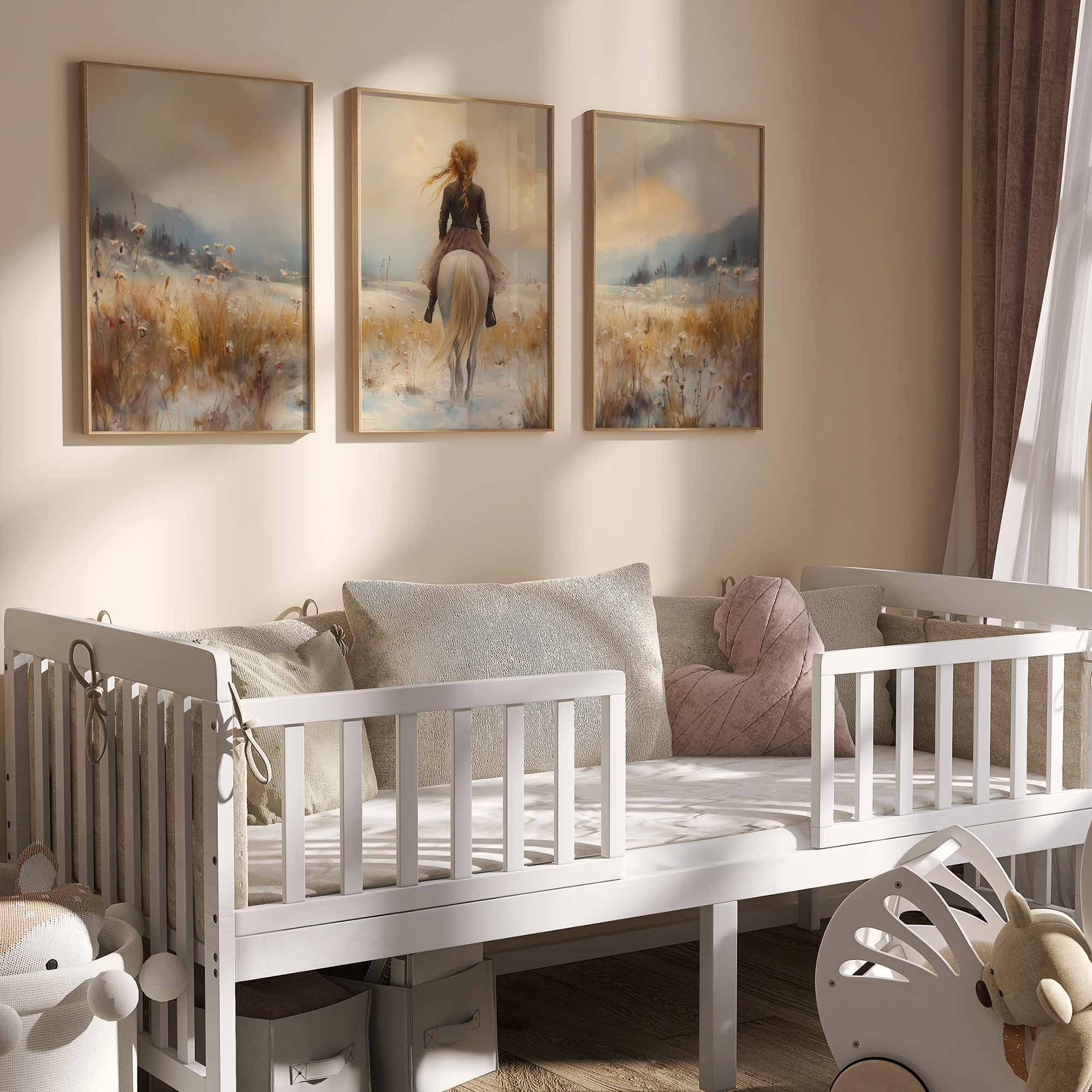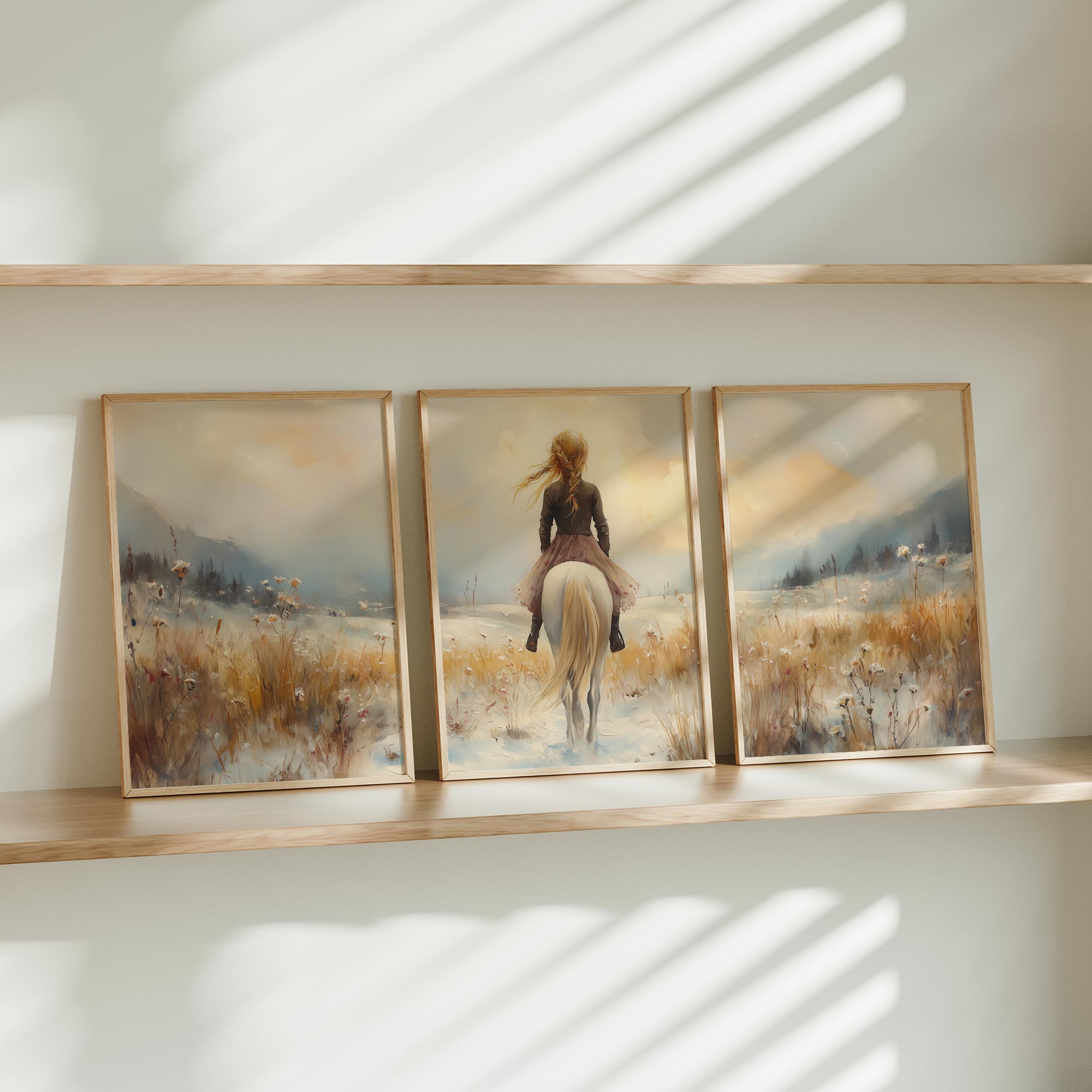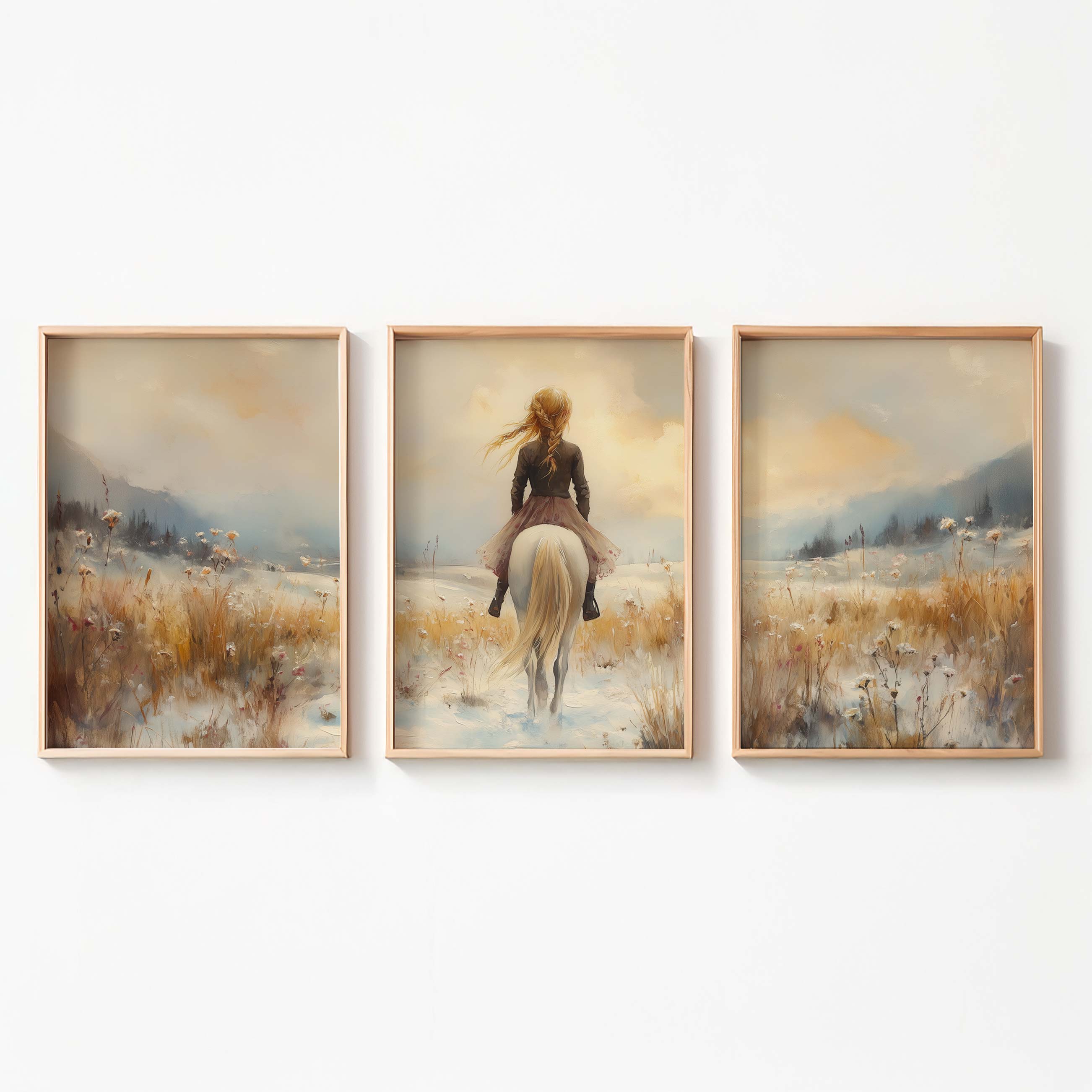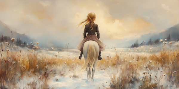 Winterfee op Witte Paard in Sneeuwlandschap