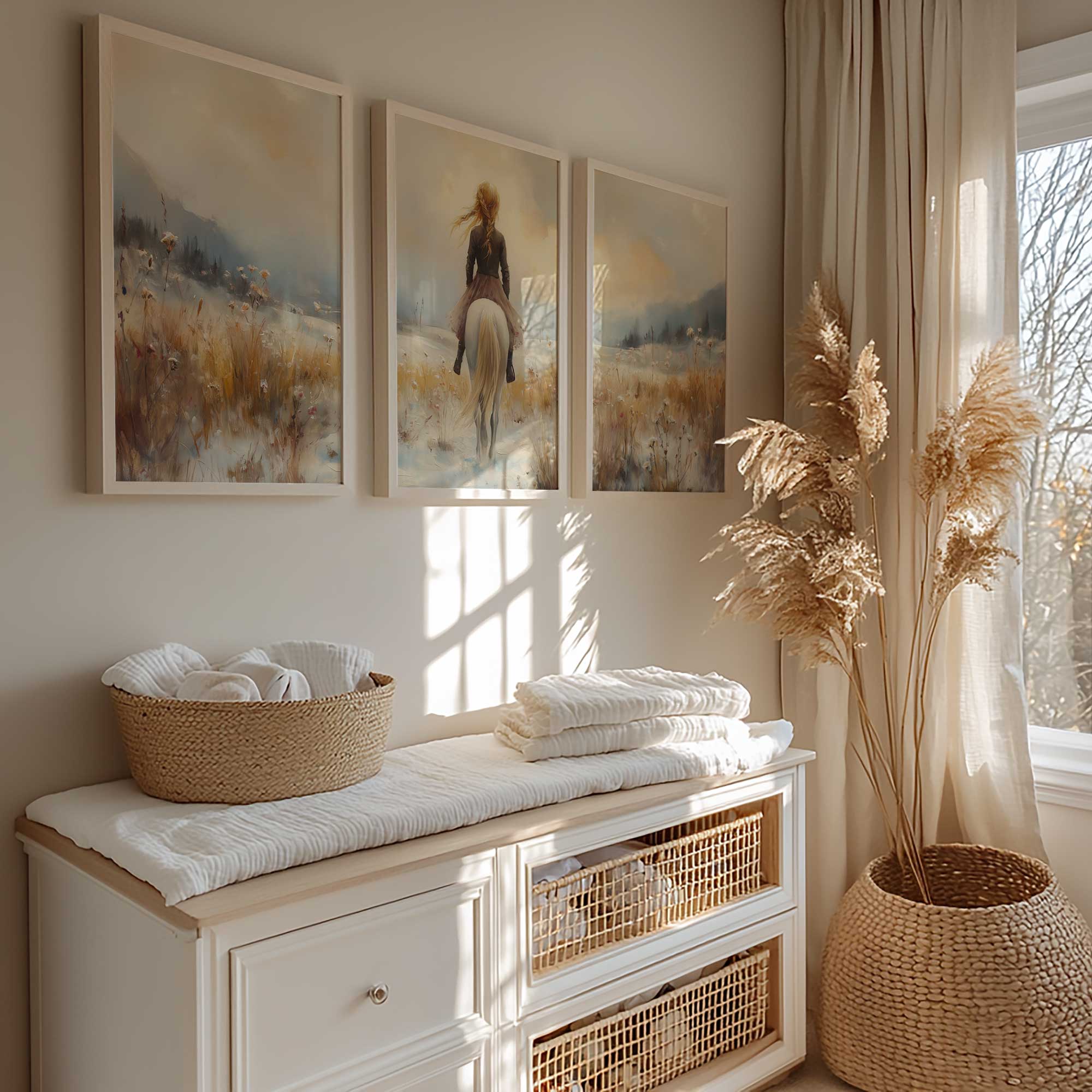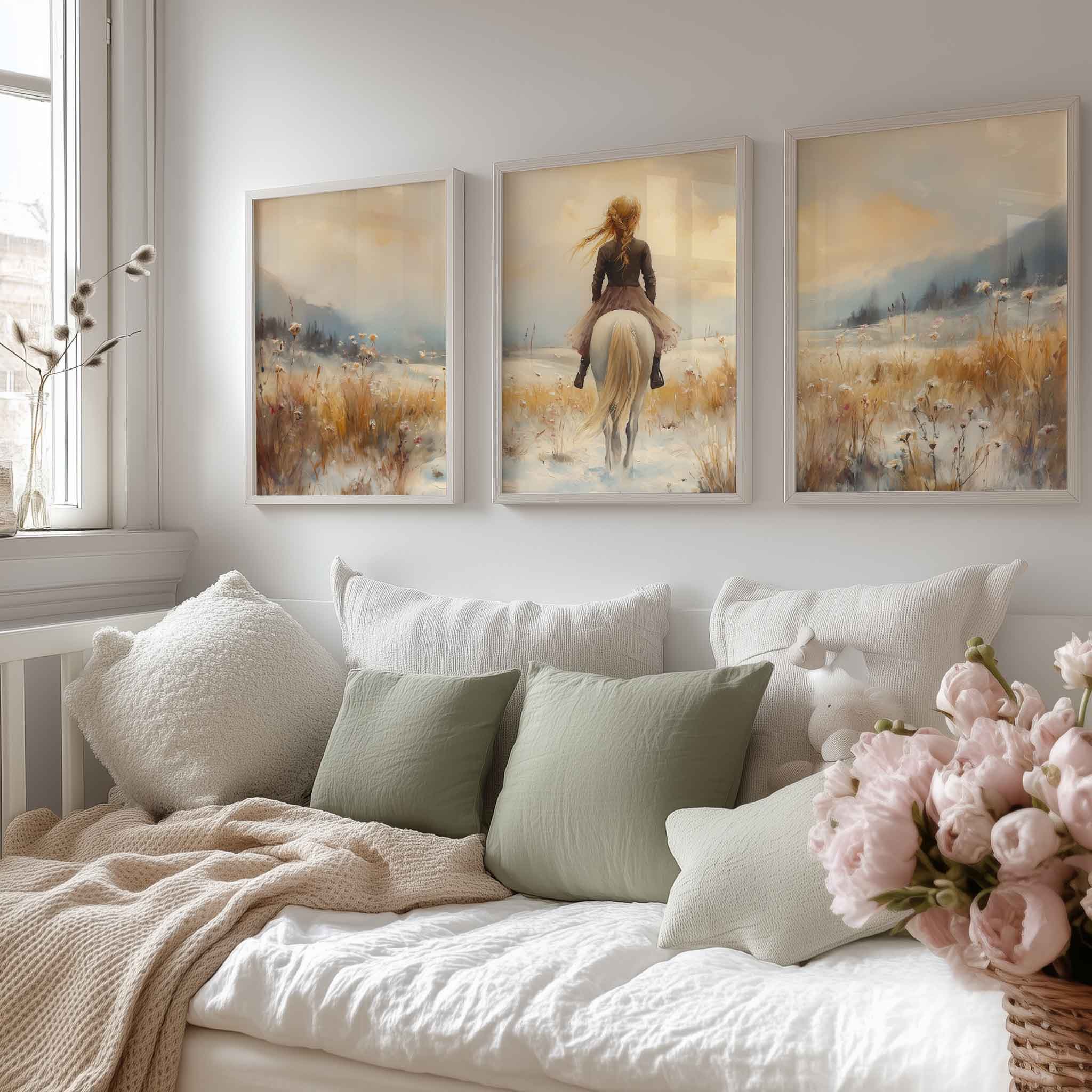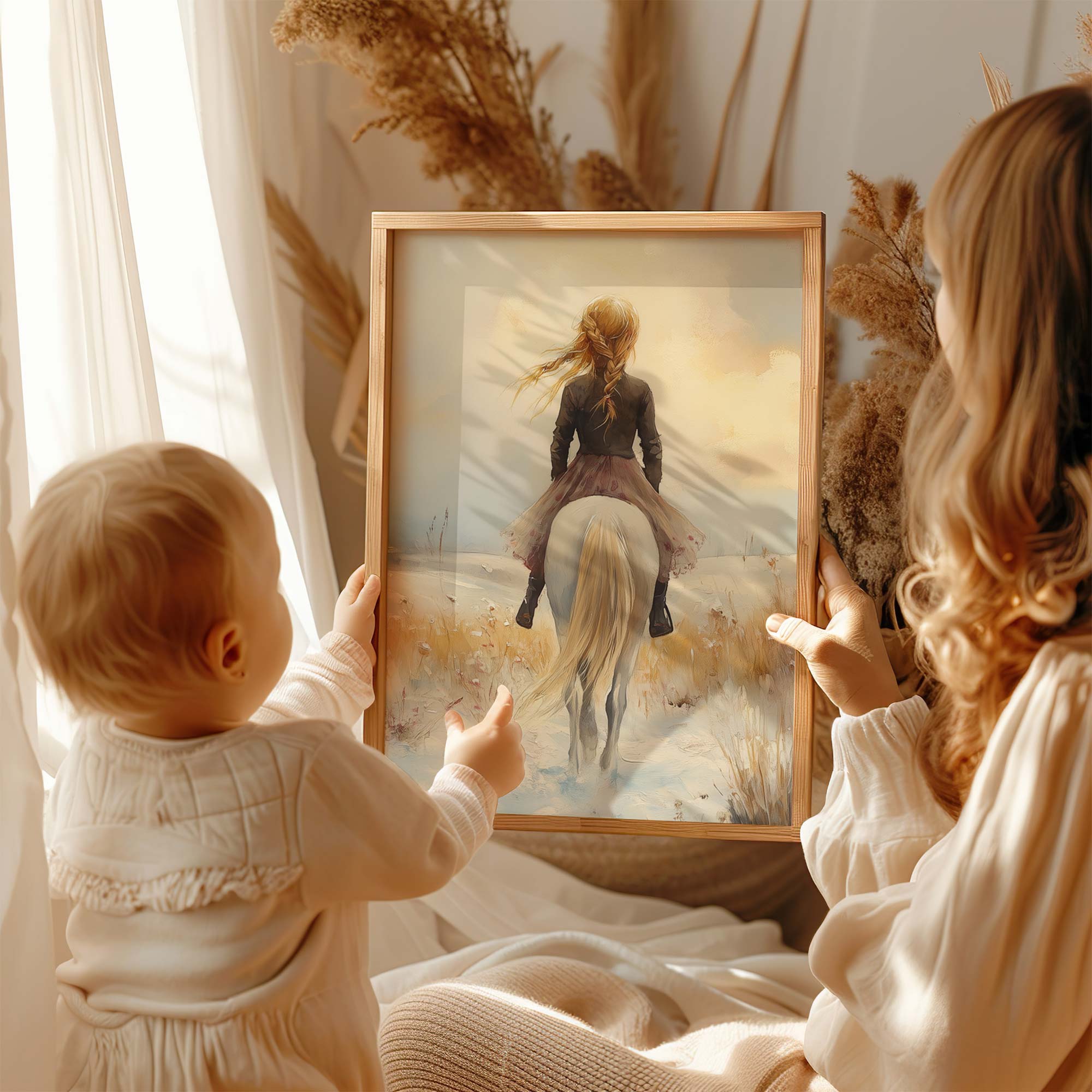 Winterfee op Witte Paard in Sneeuwlandschap