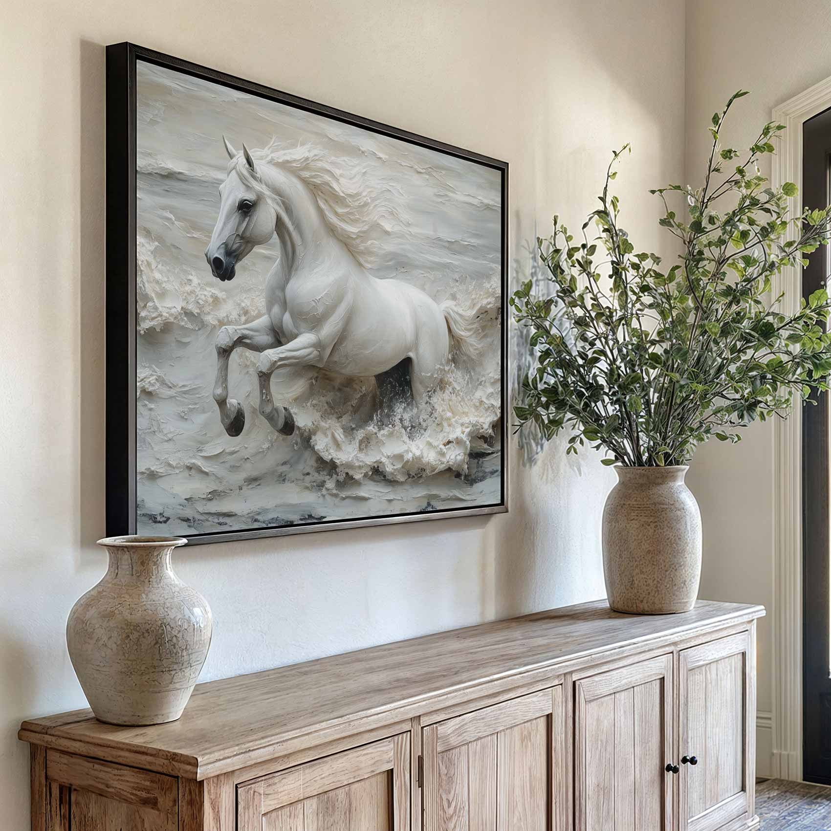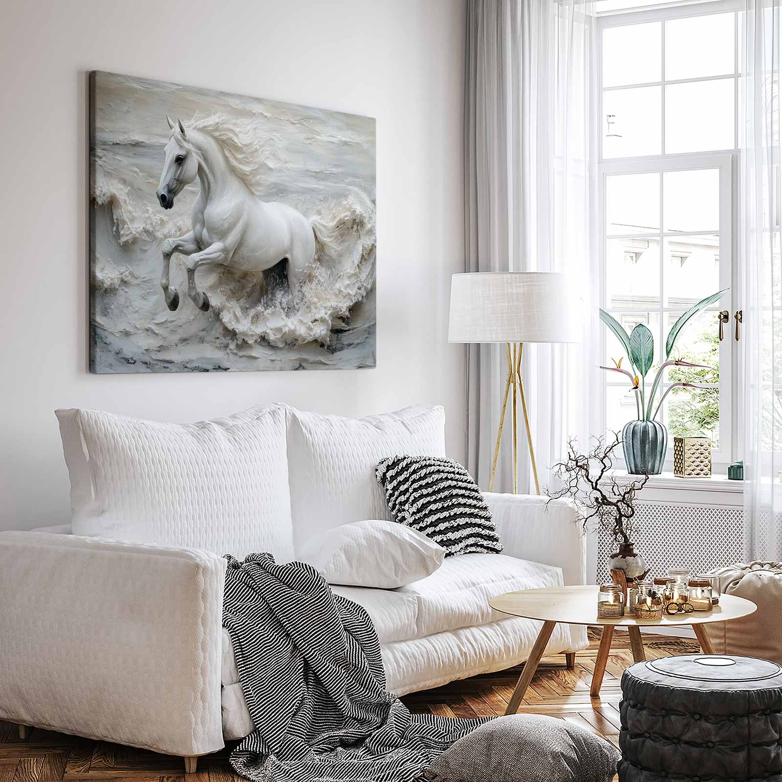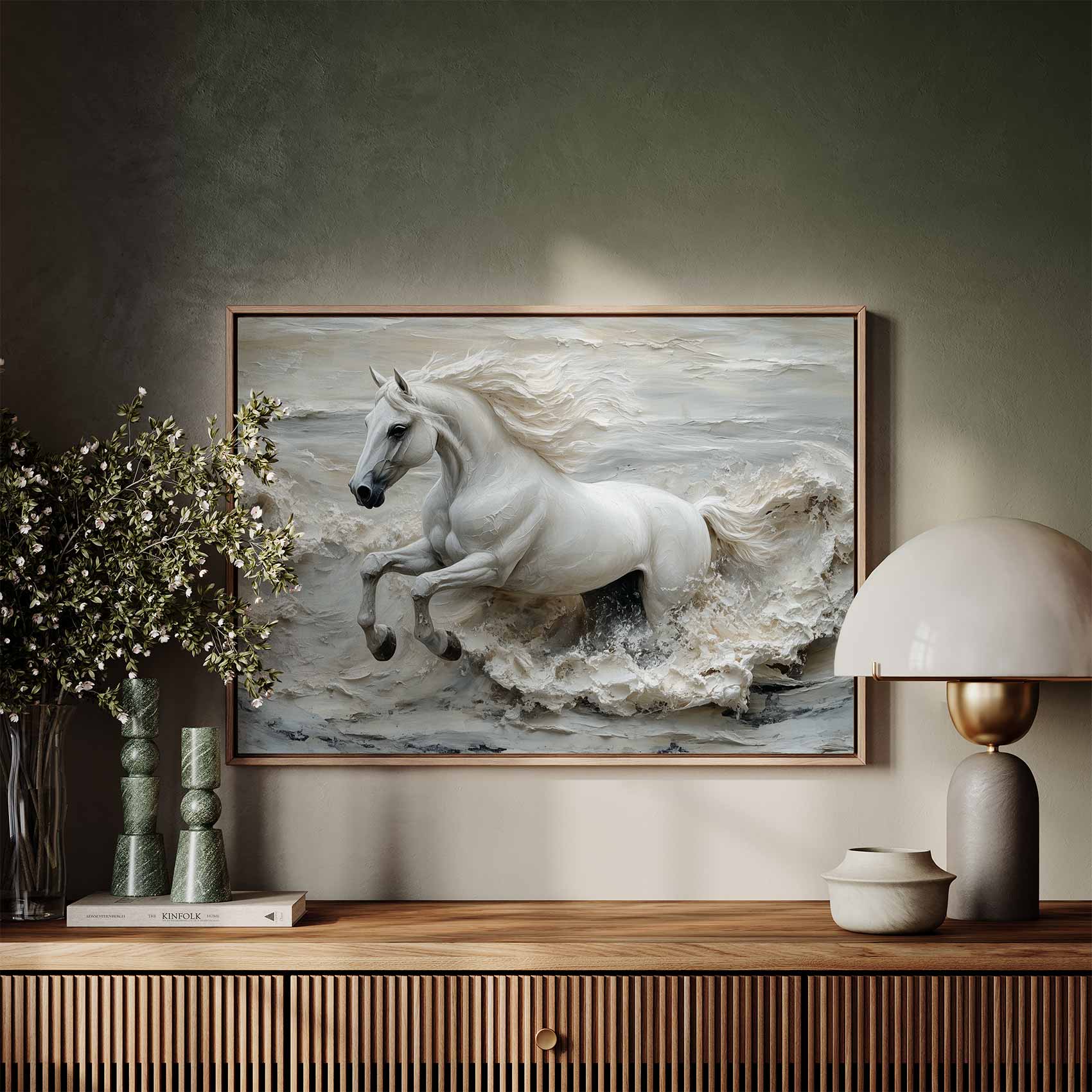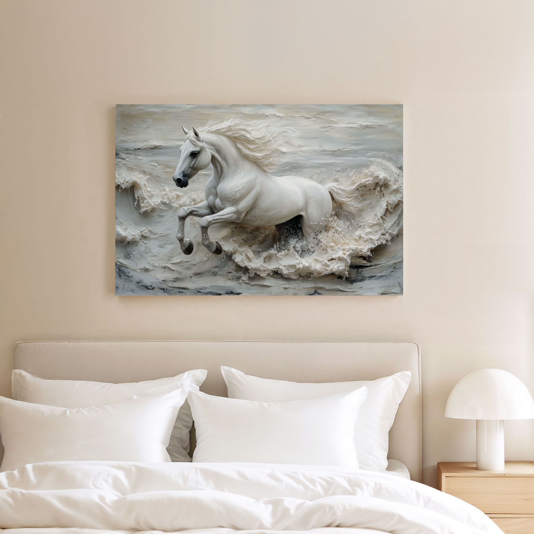 Wit galopperend paardbeeld