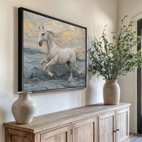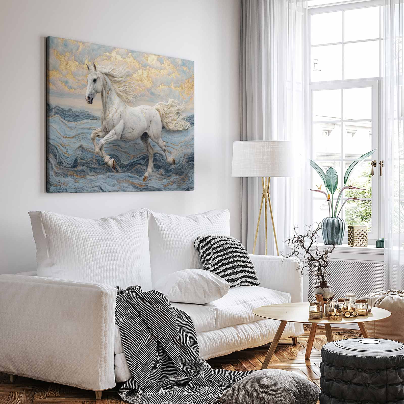 Terug naar collectie Canvas Wit paard galoppeert over water