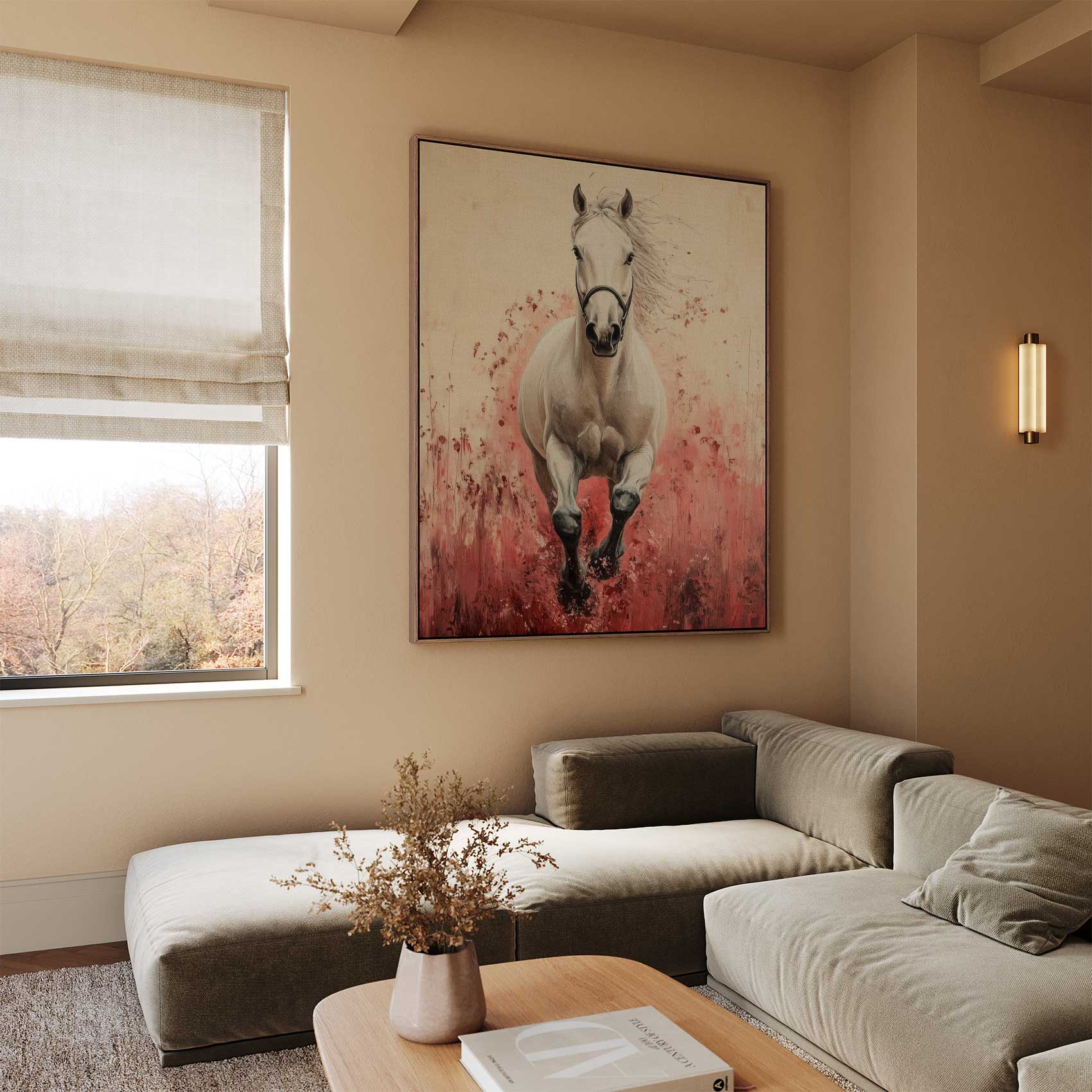 Terug naar collectie Canvas Wit paard in dynamische galop