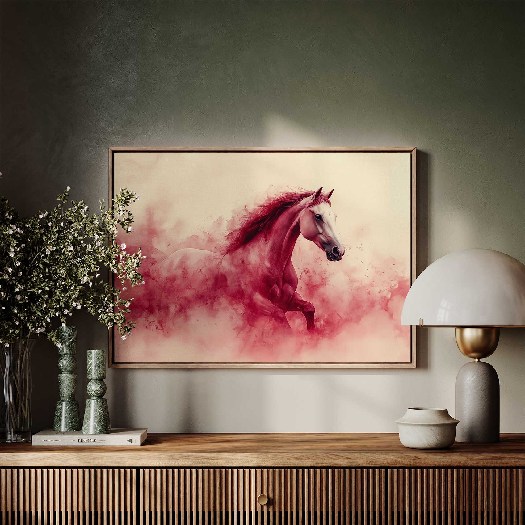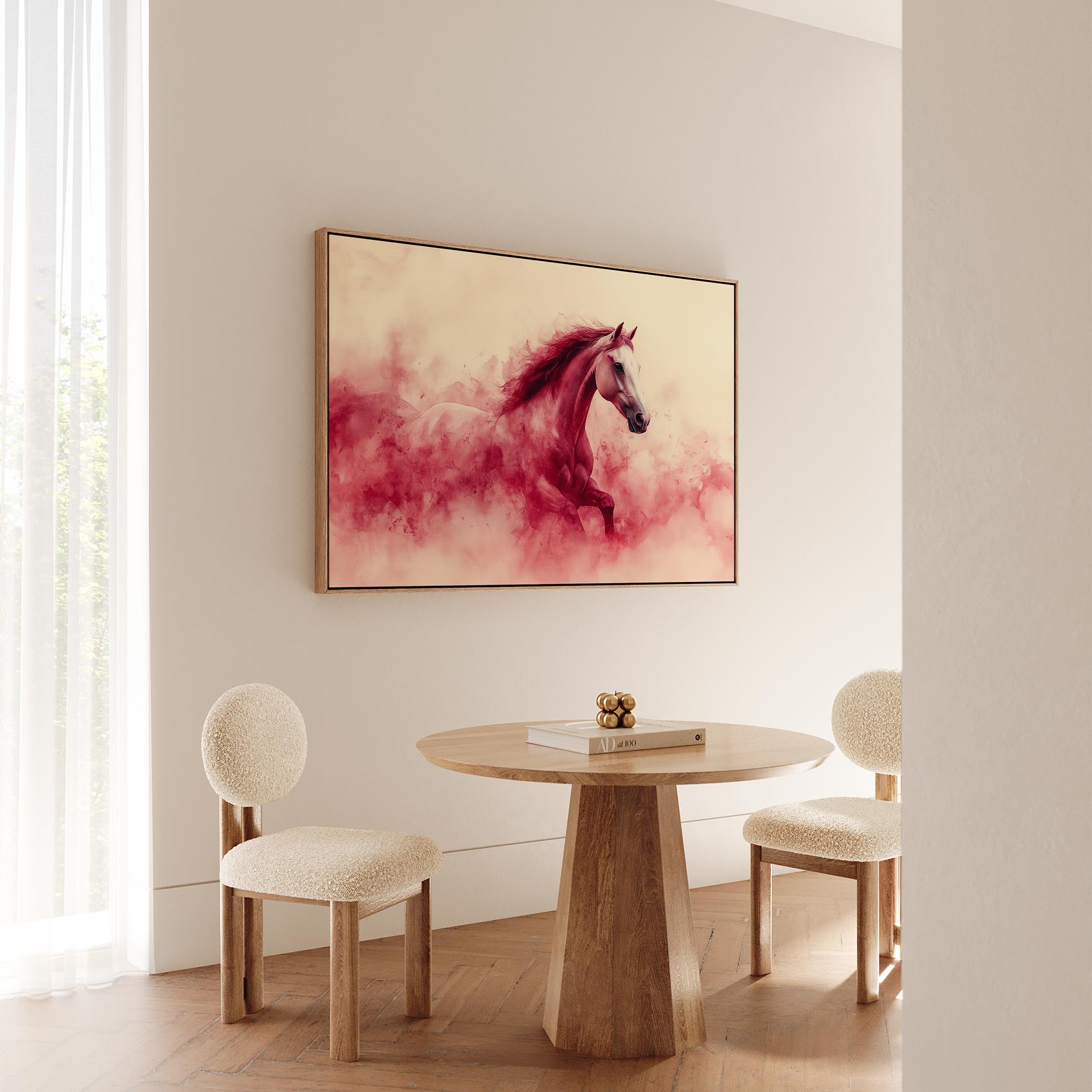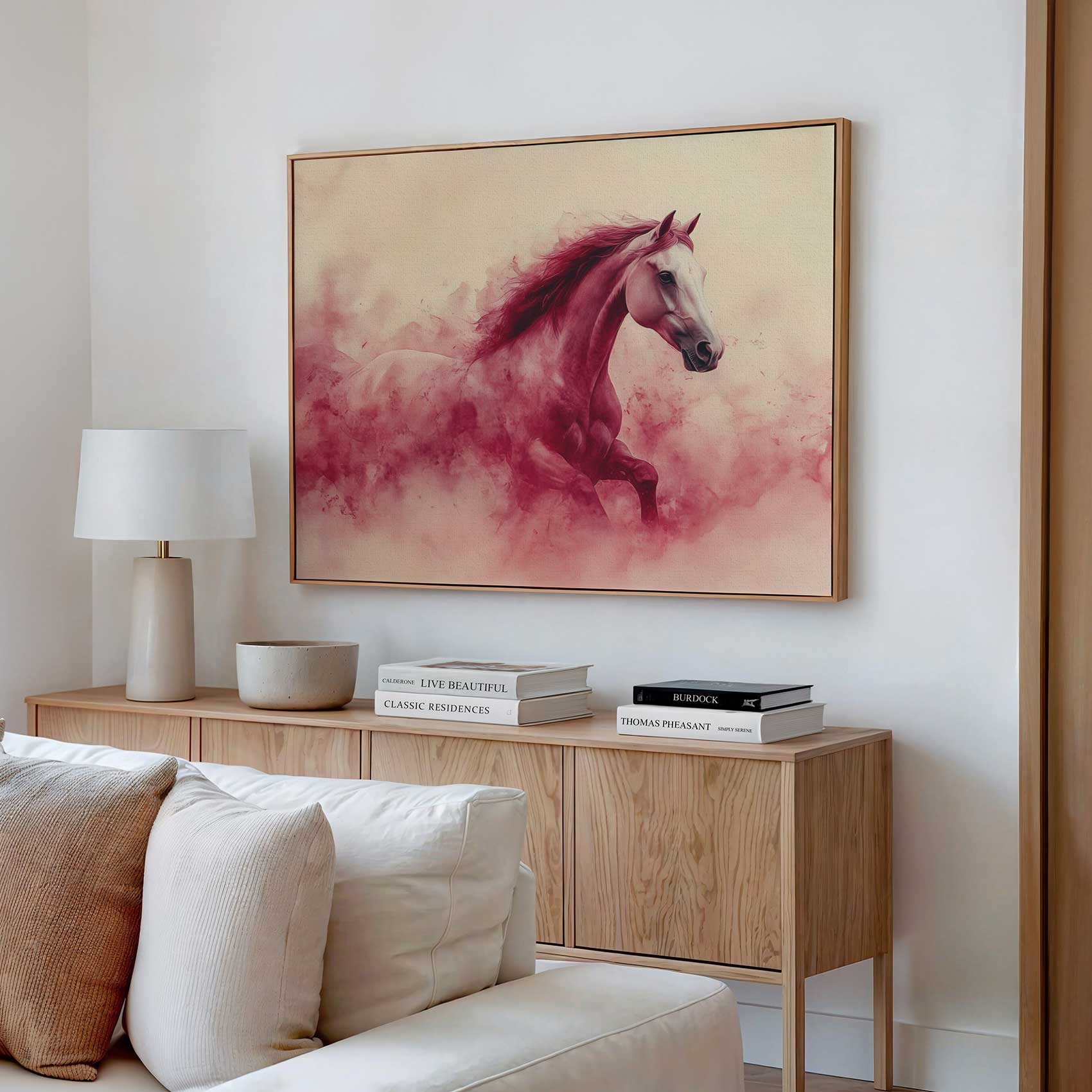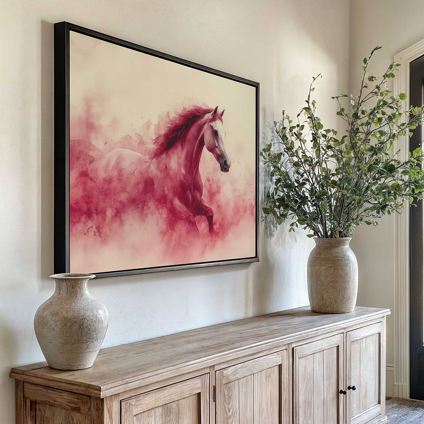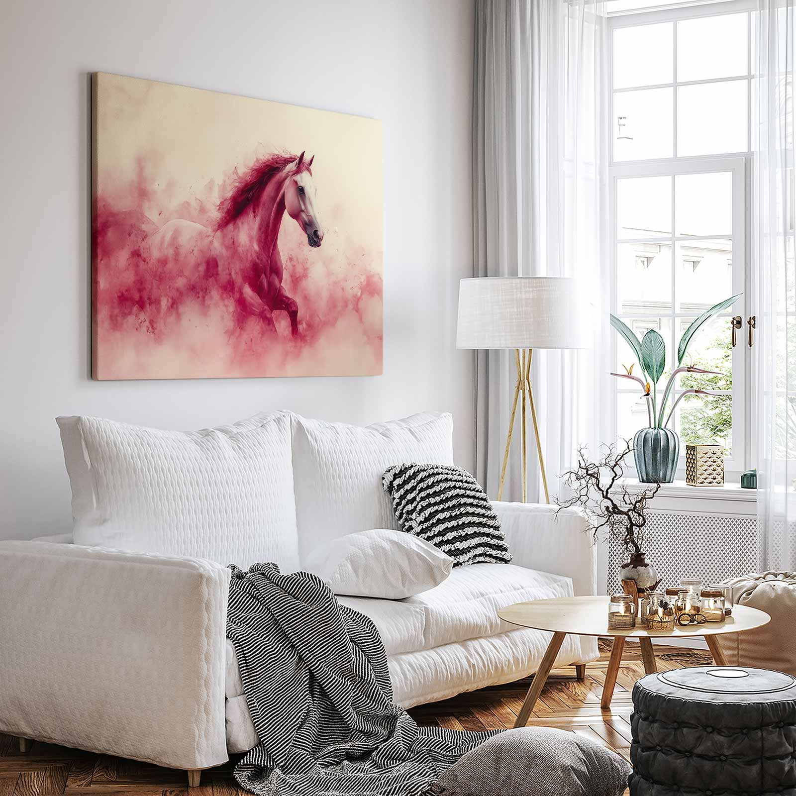 Wit paard in rode rook
