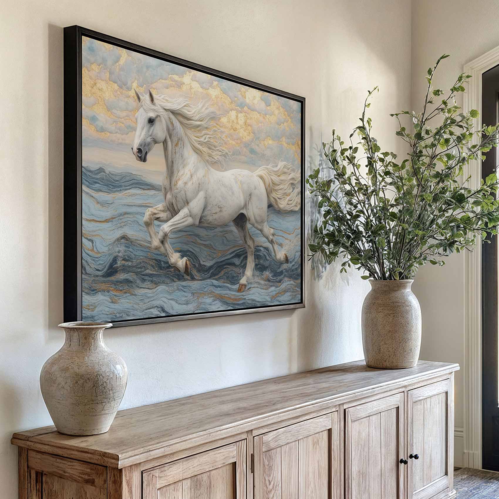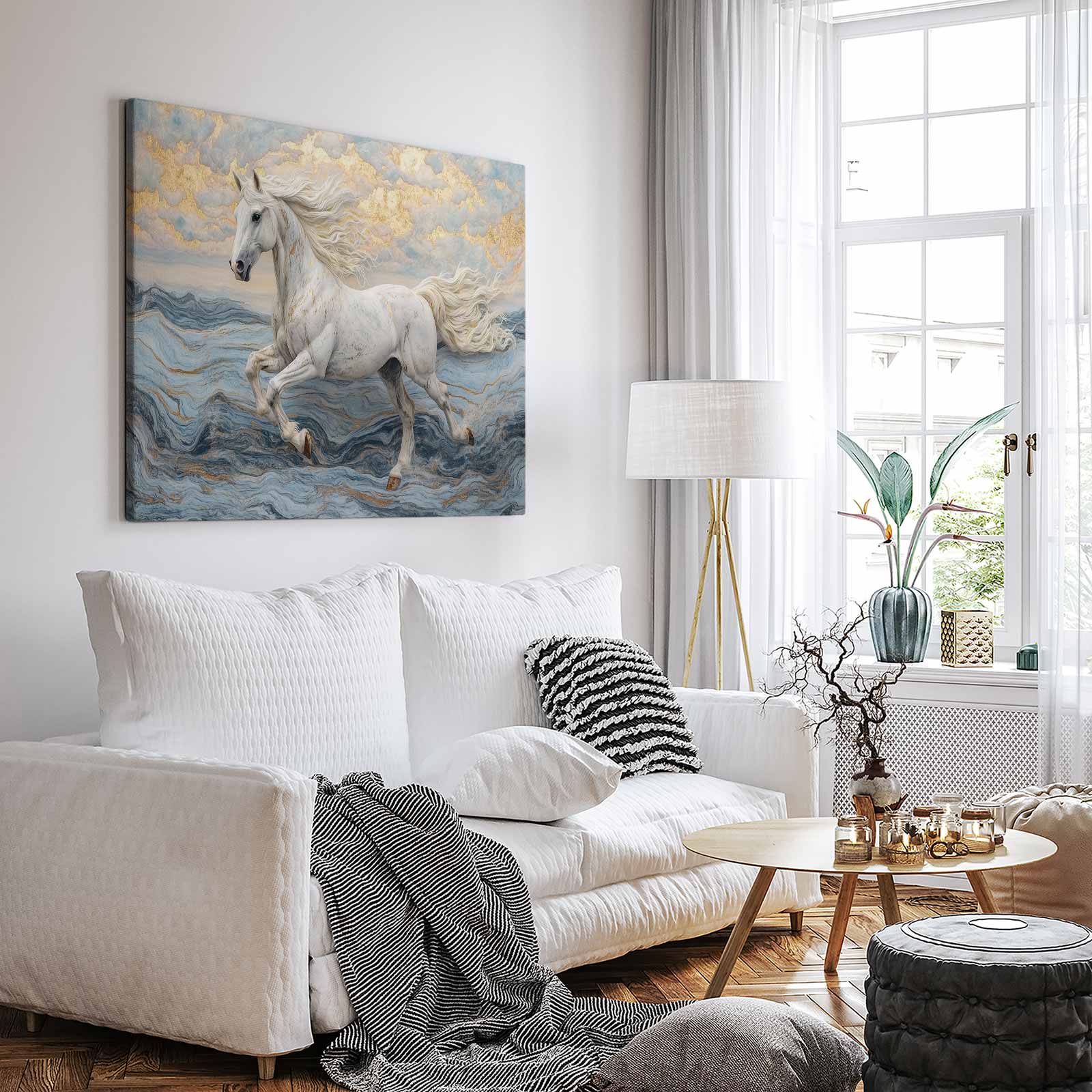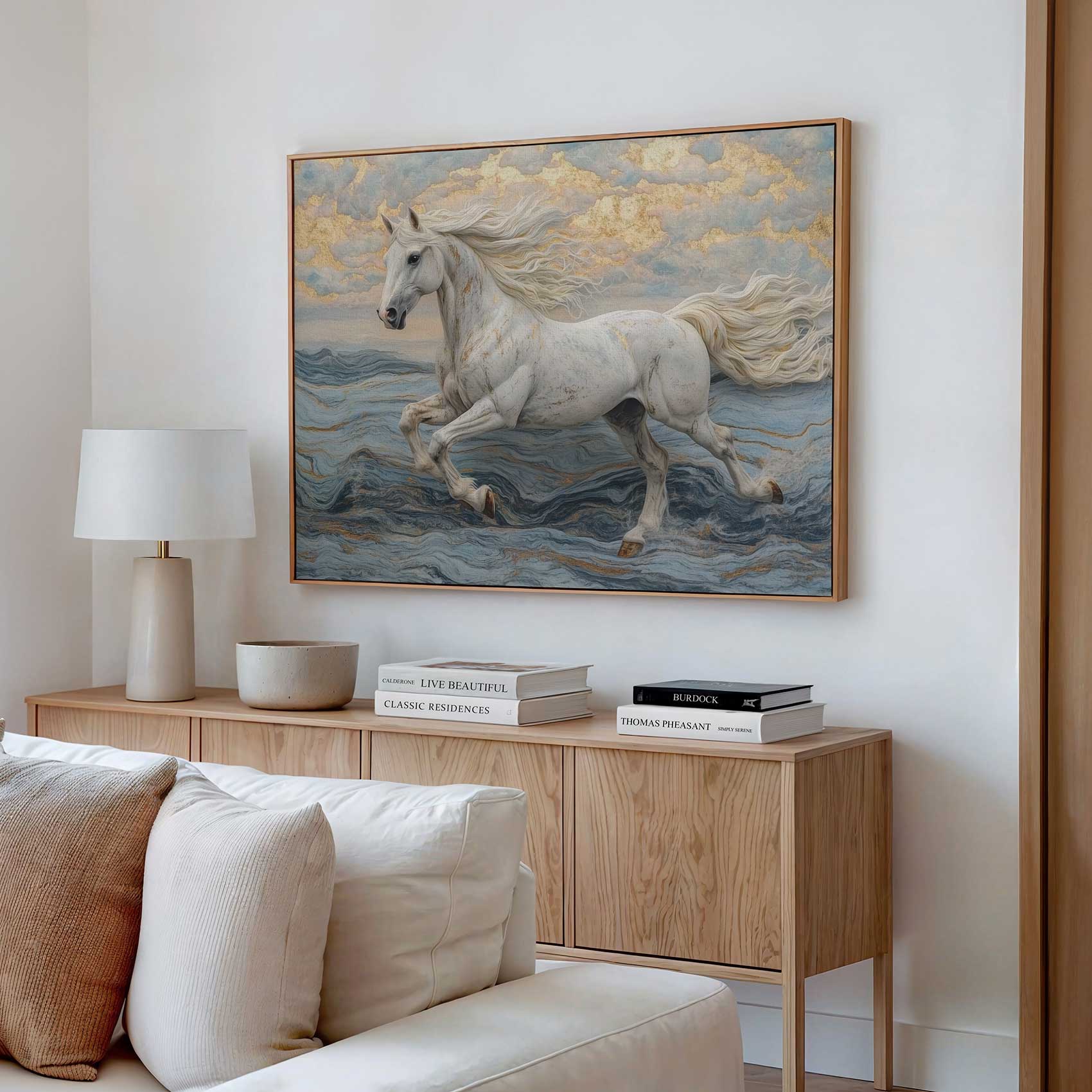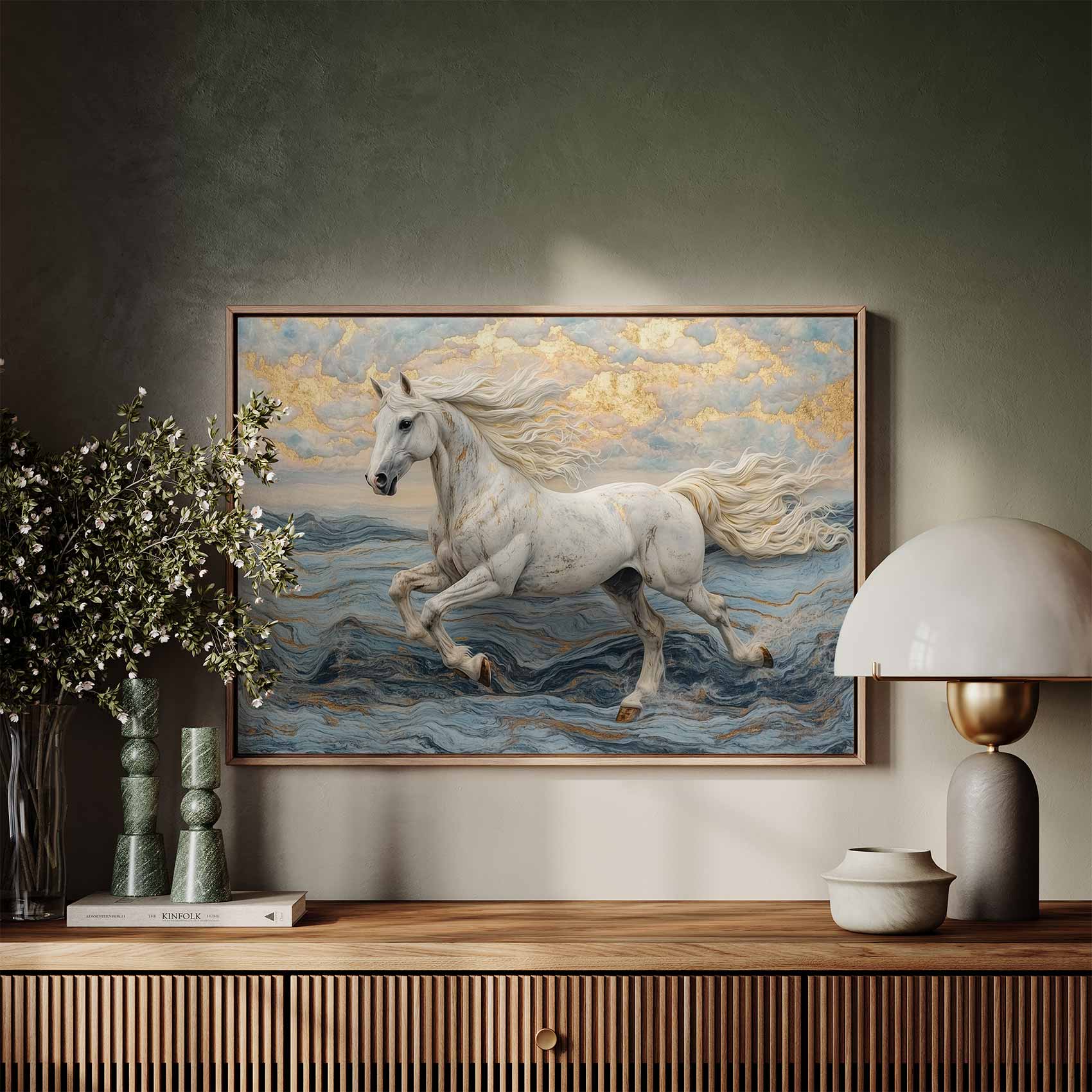 Wit paard over water