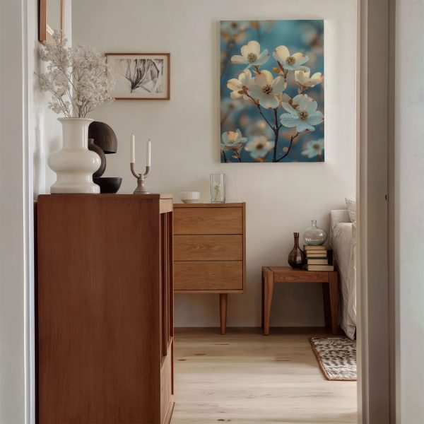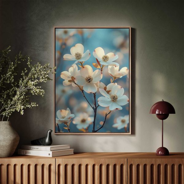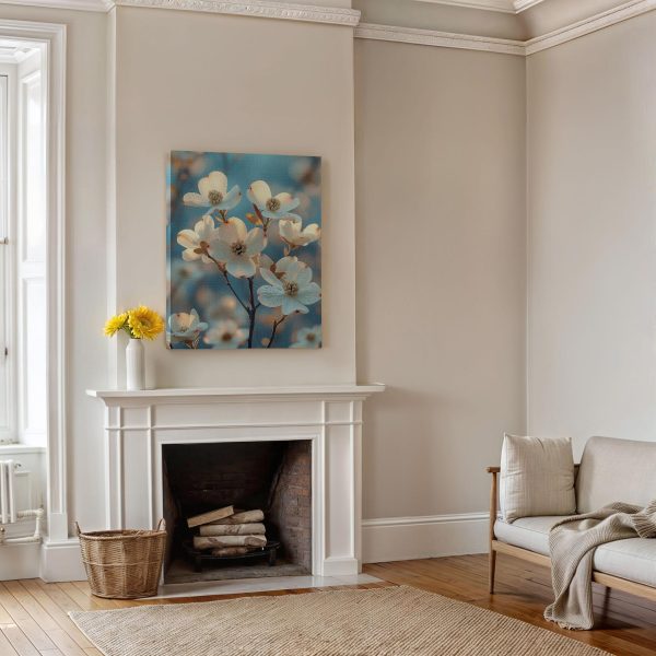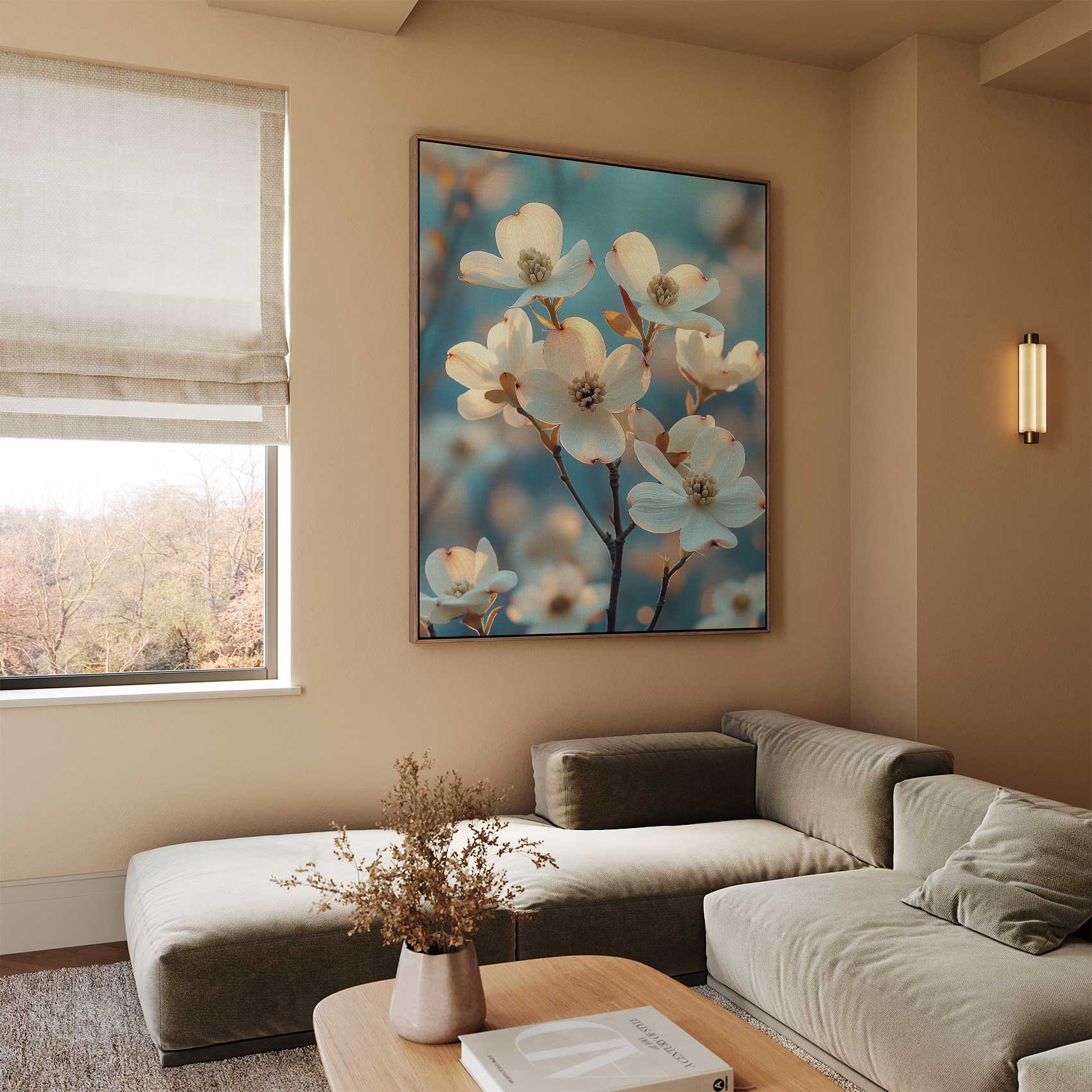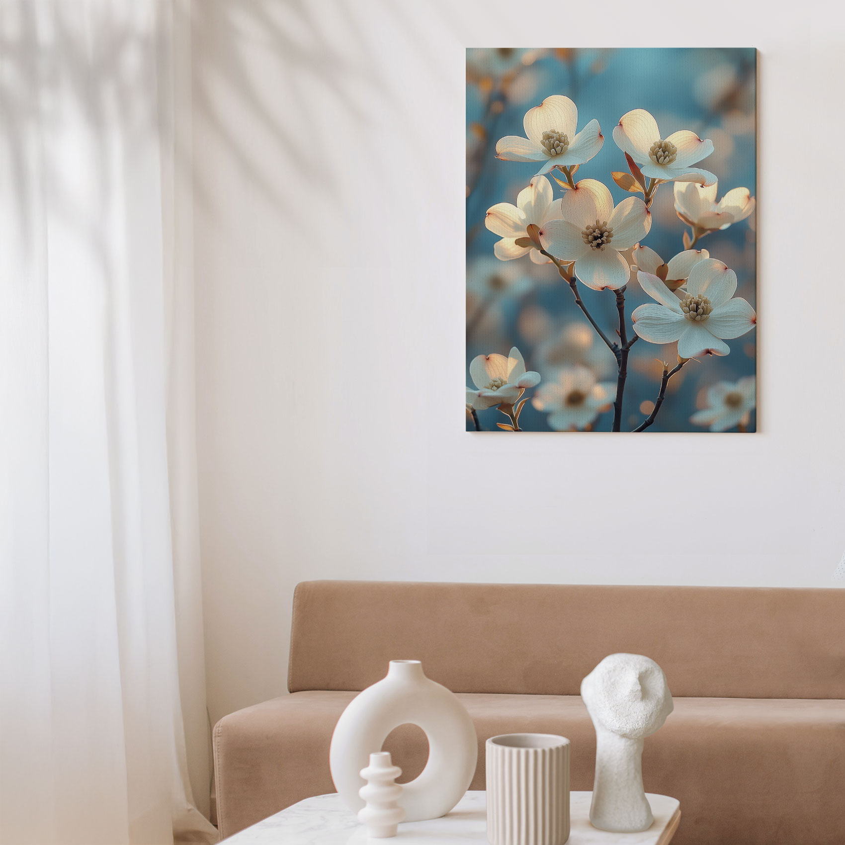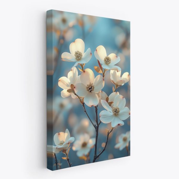 Terug naar collectie Canvas Witte kornoeljebloesem close-up
