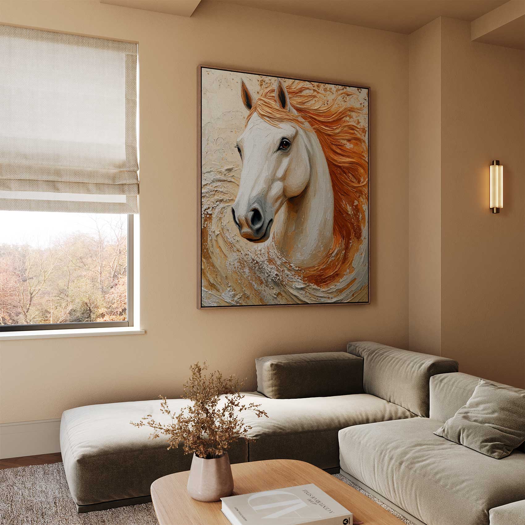 Witte paard met oranje manen