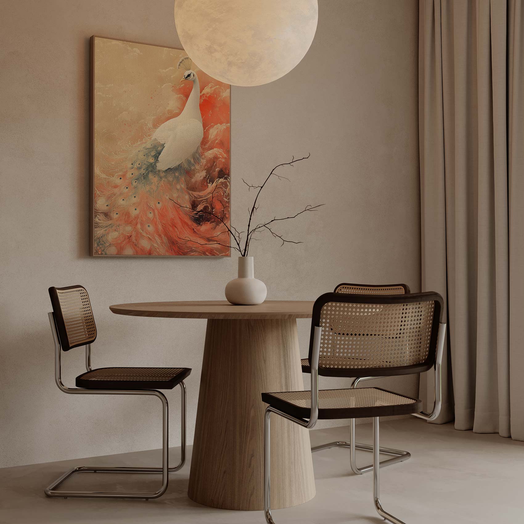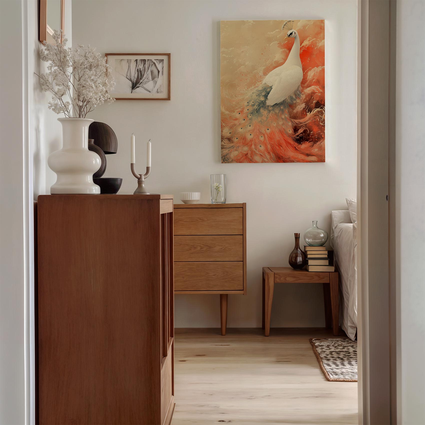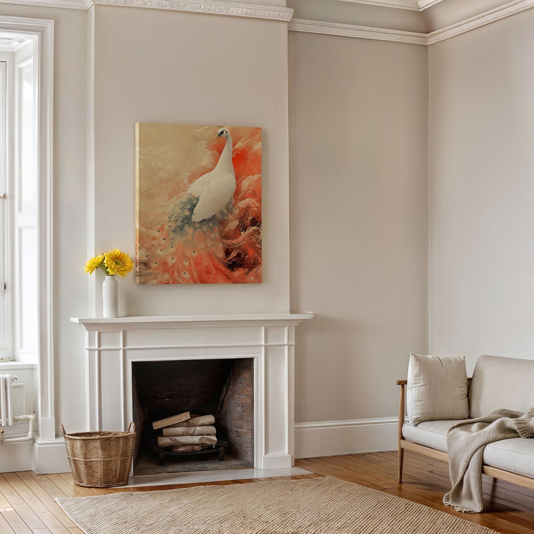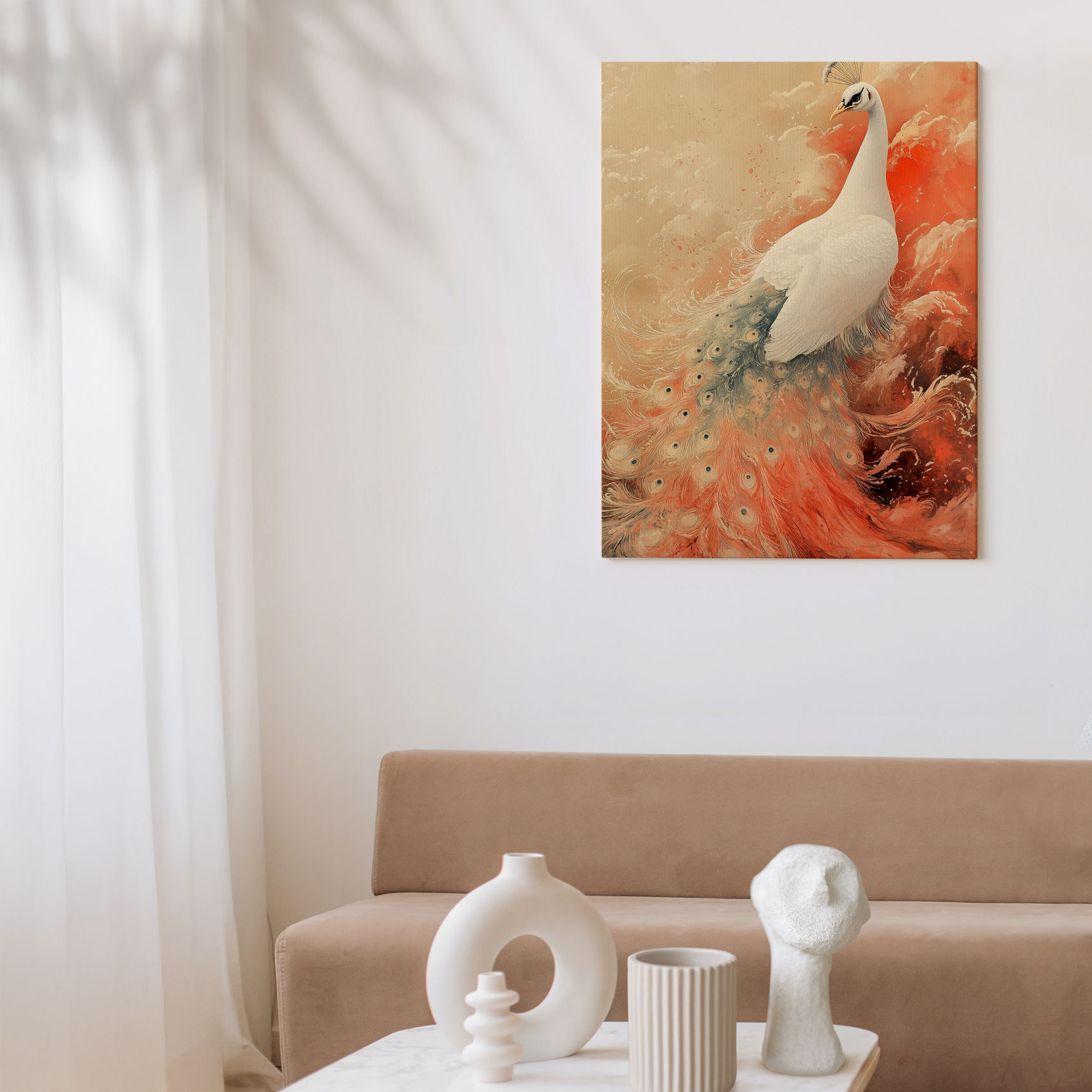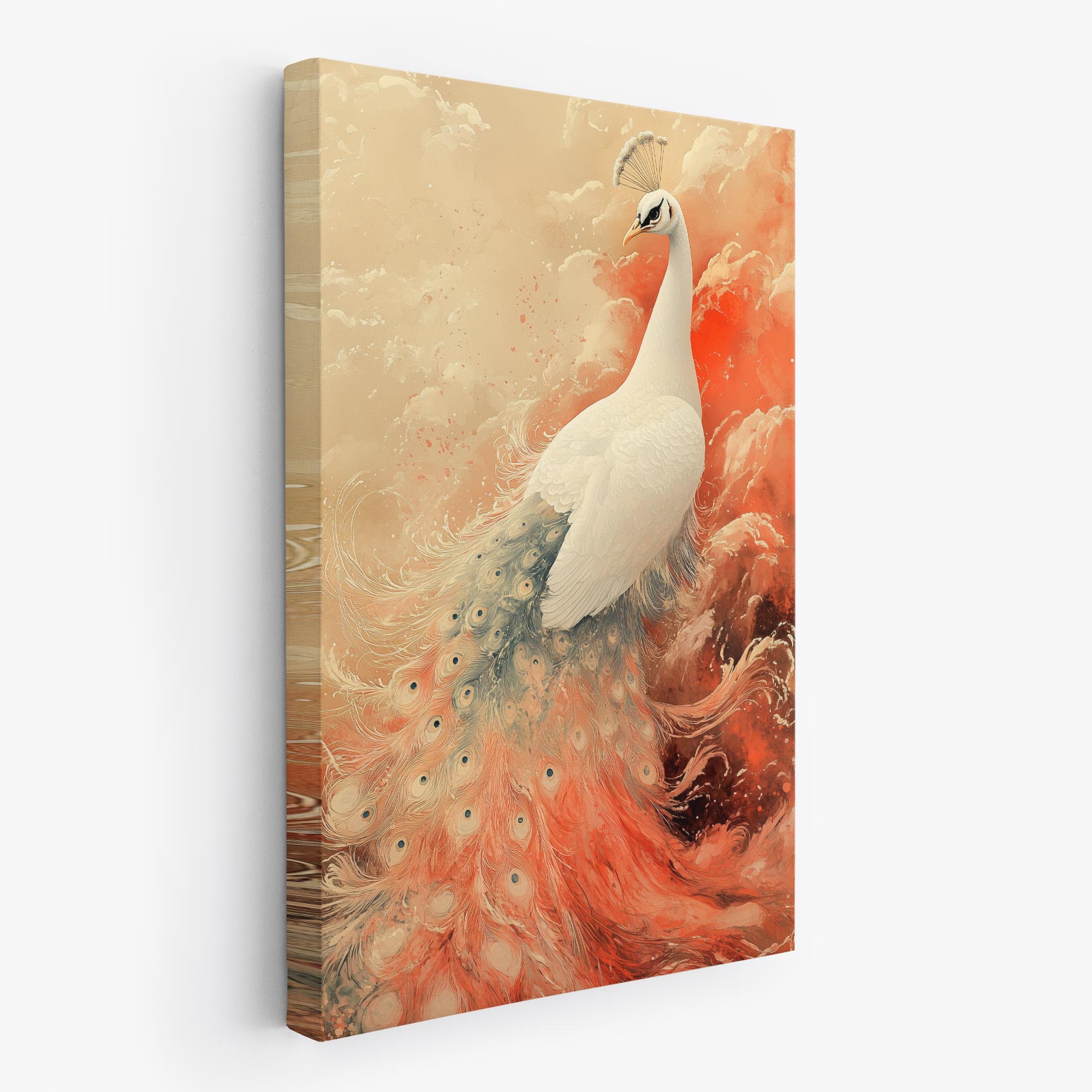 Witte Pauw in Kleurrijke Lucht