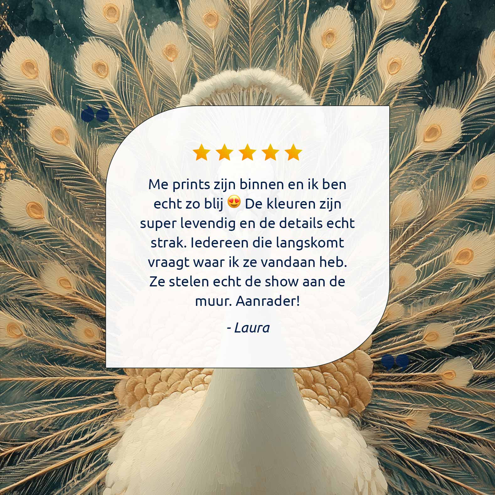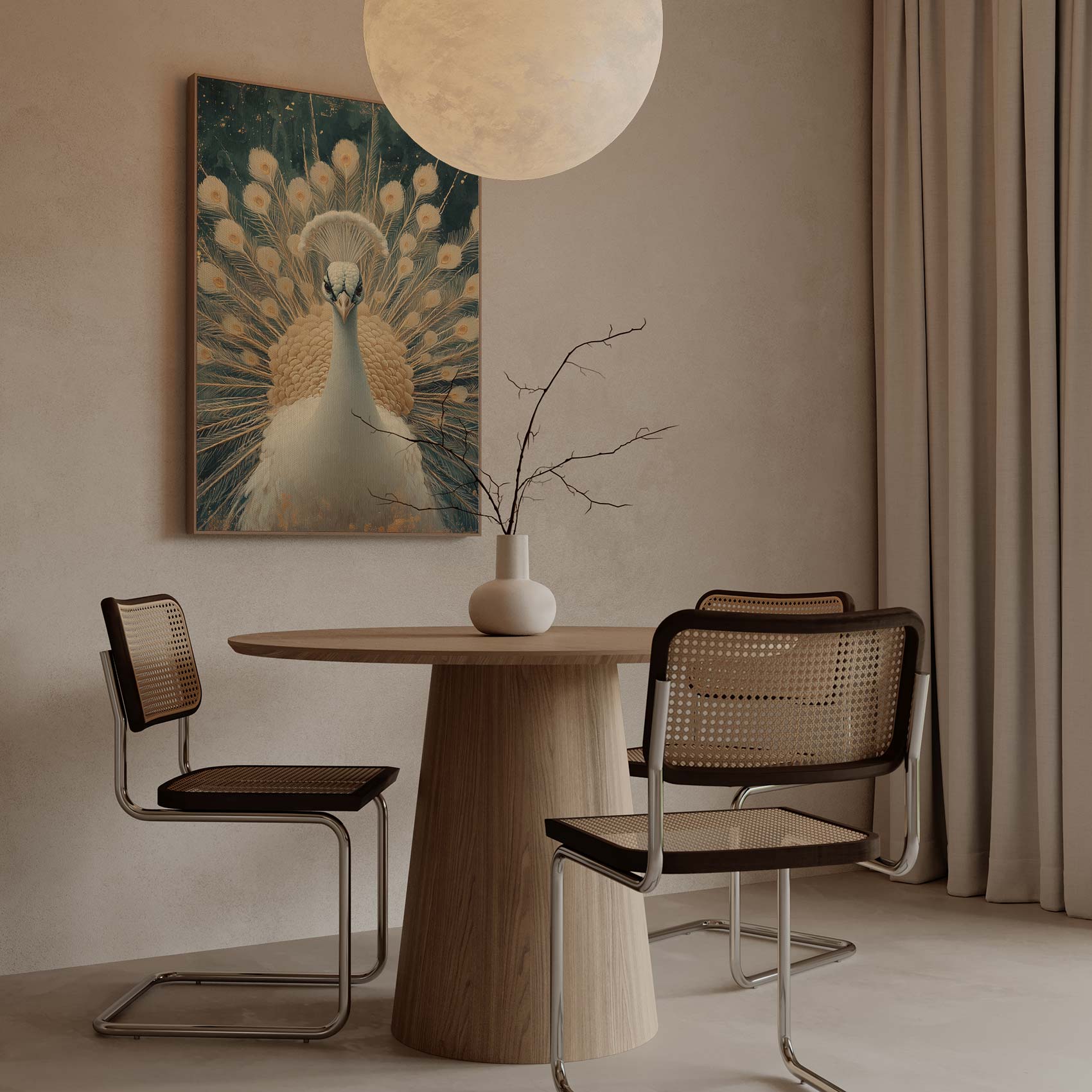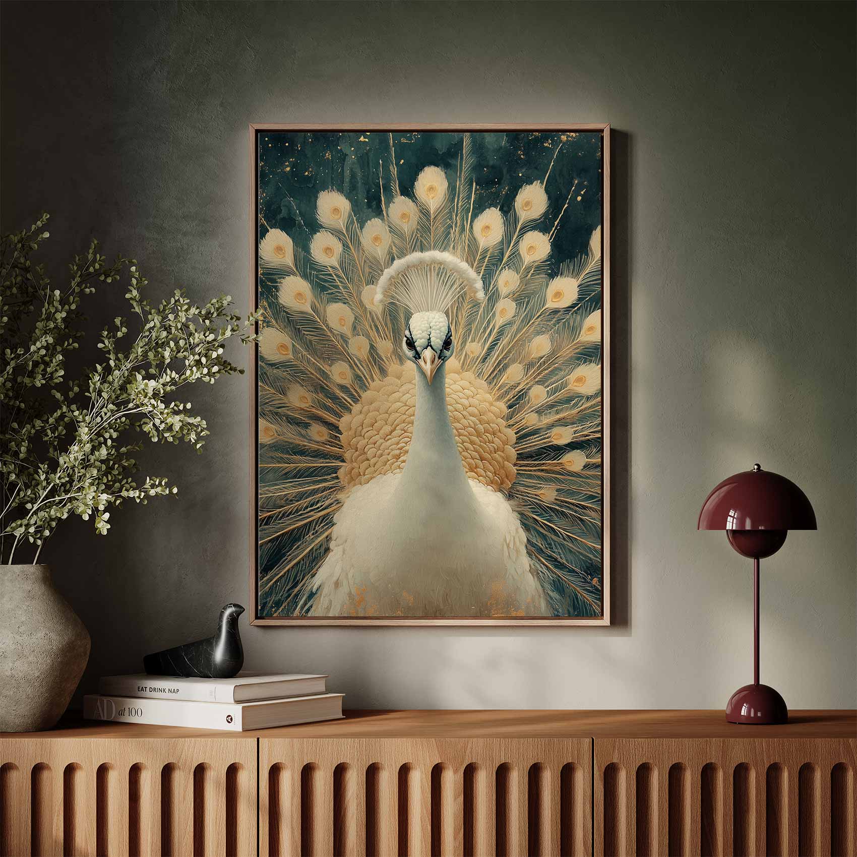Terug naar collectie Canvas Witte pauw met prachtveren
