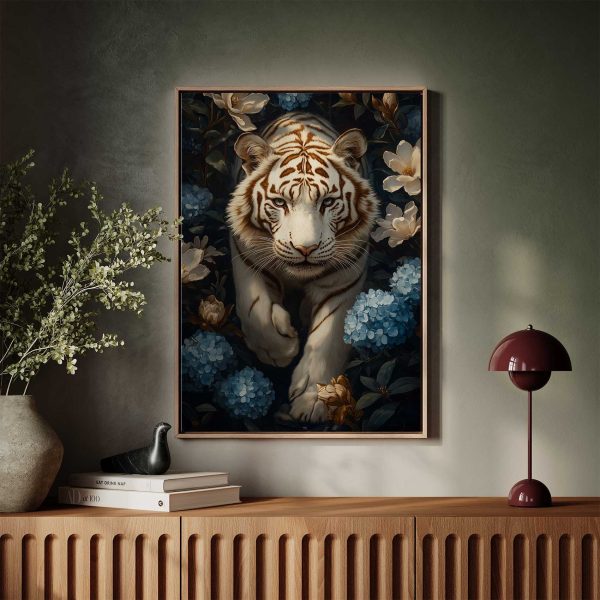 Terug naar collectie Canvas Witte Tijger in Bloemenpracht